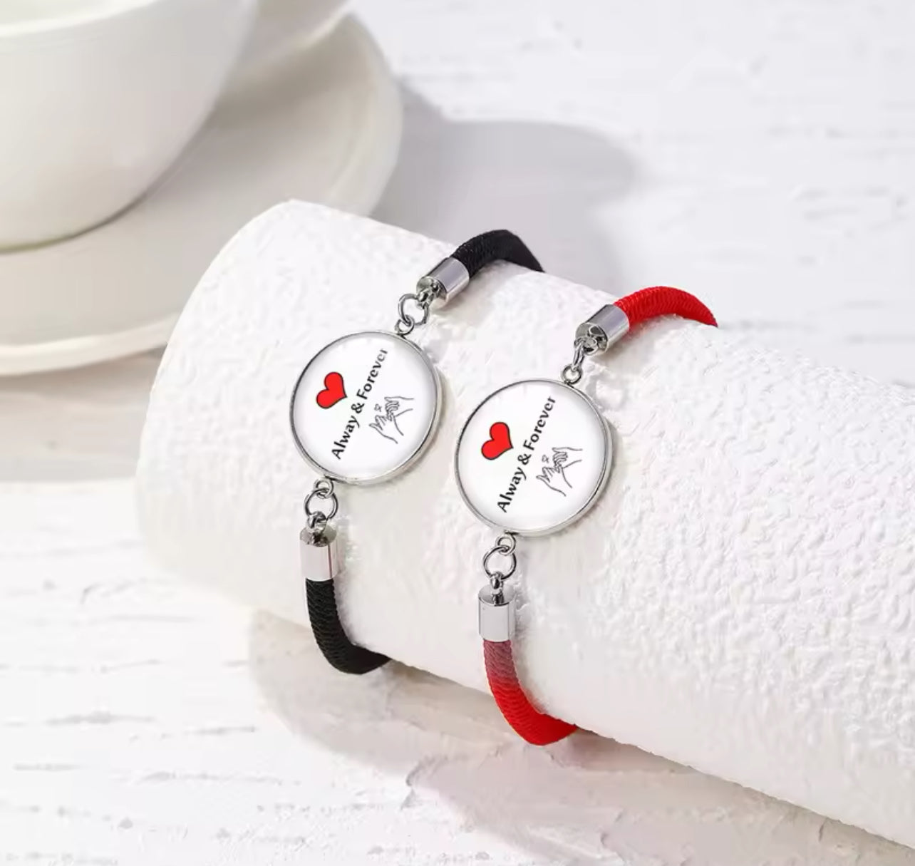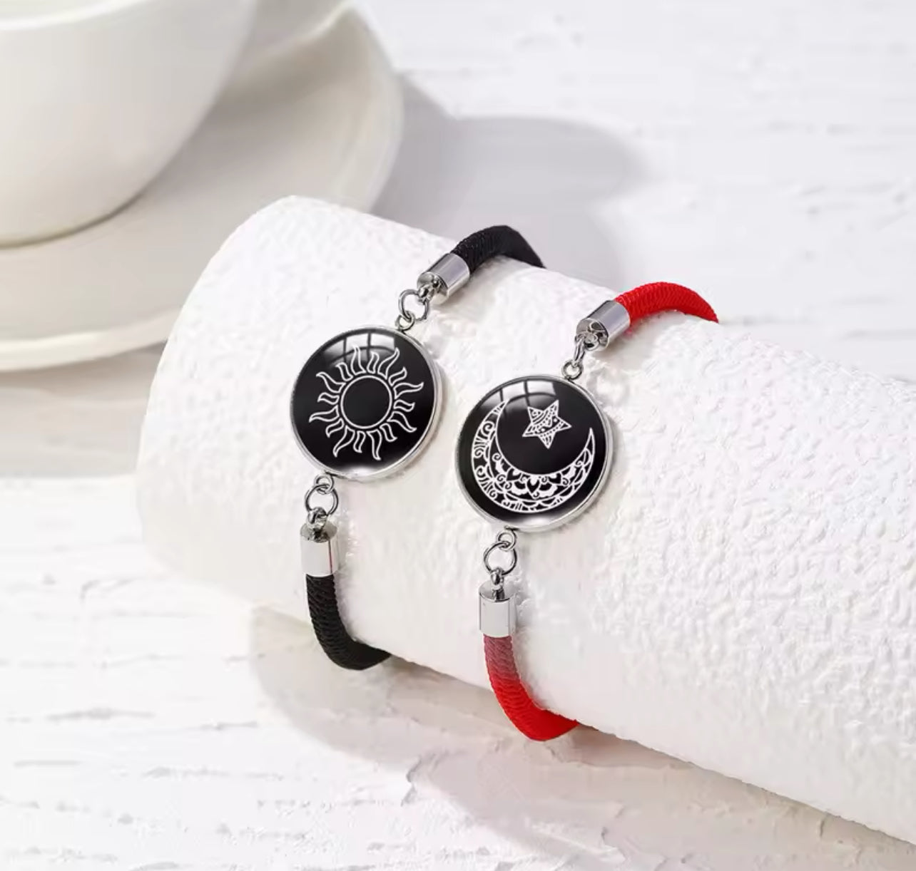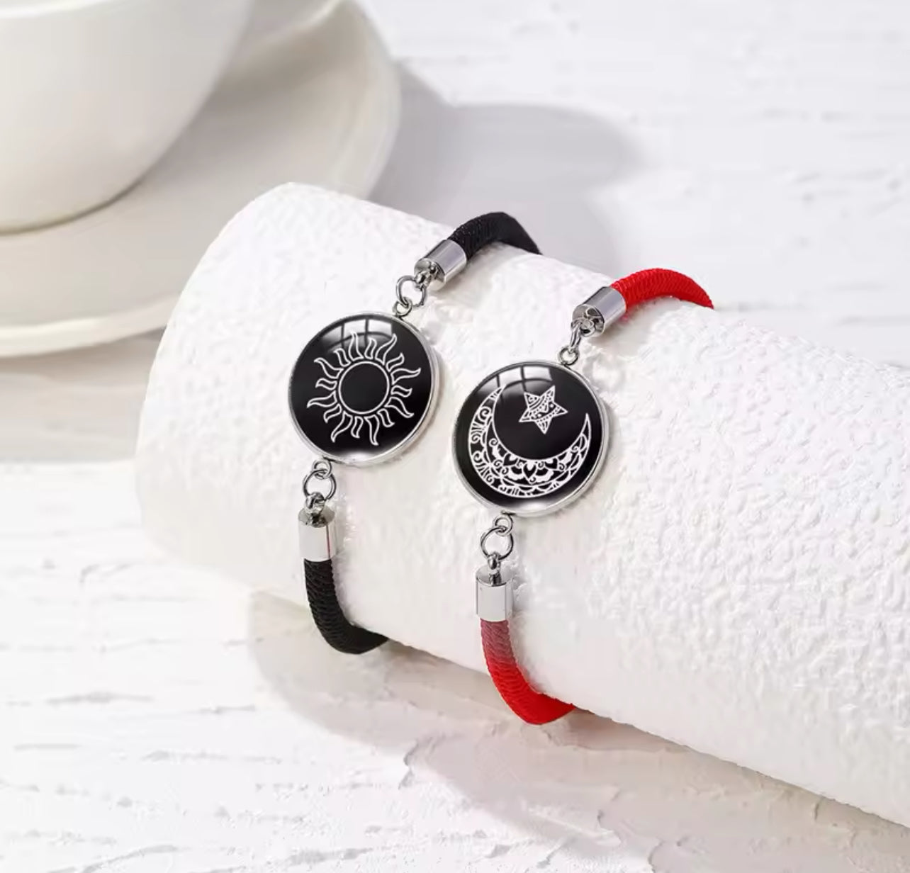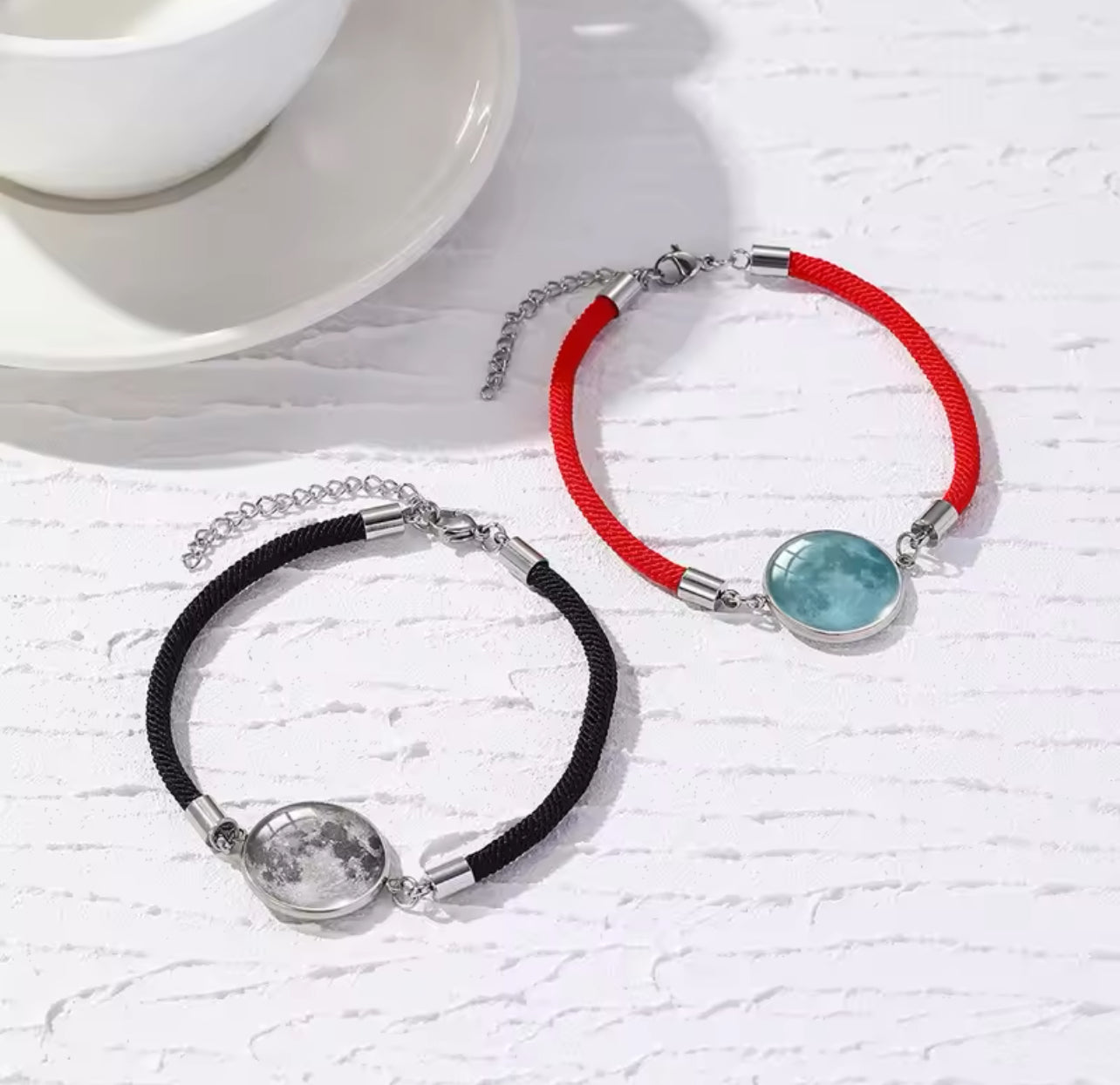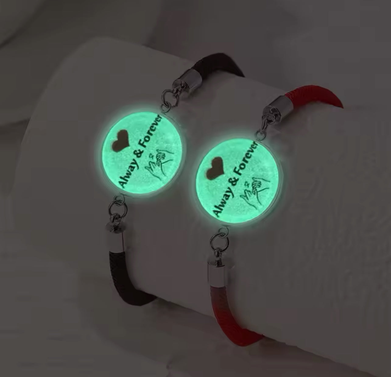 BRAZALETES DE PAREJA BRILLA EN LA OSCURIDAD CORDÓN ROJO