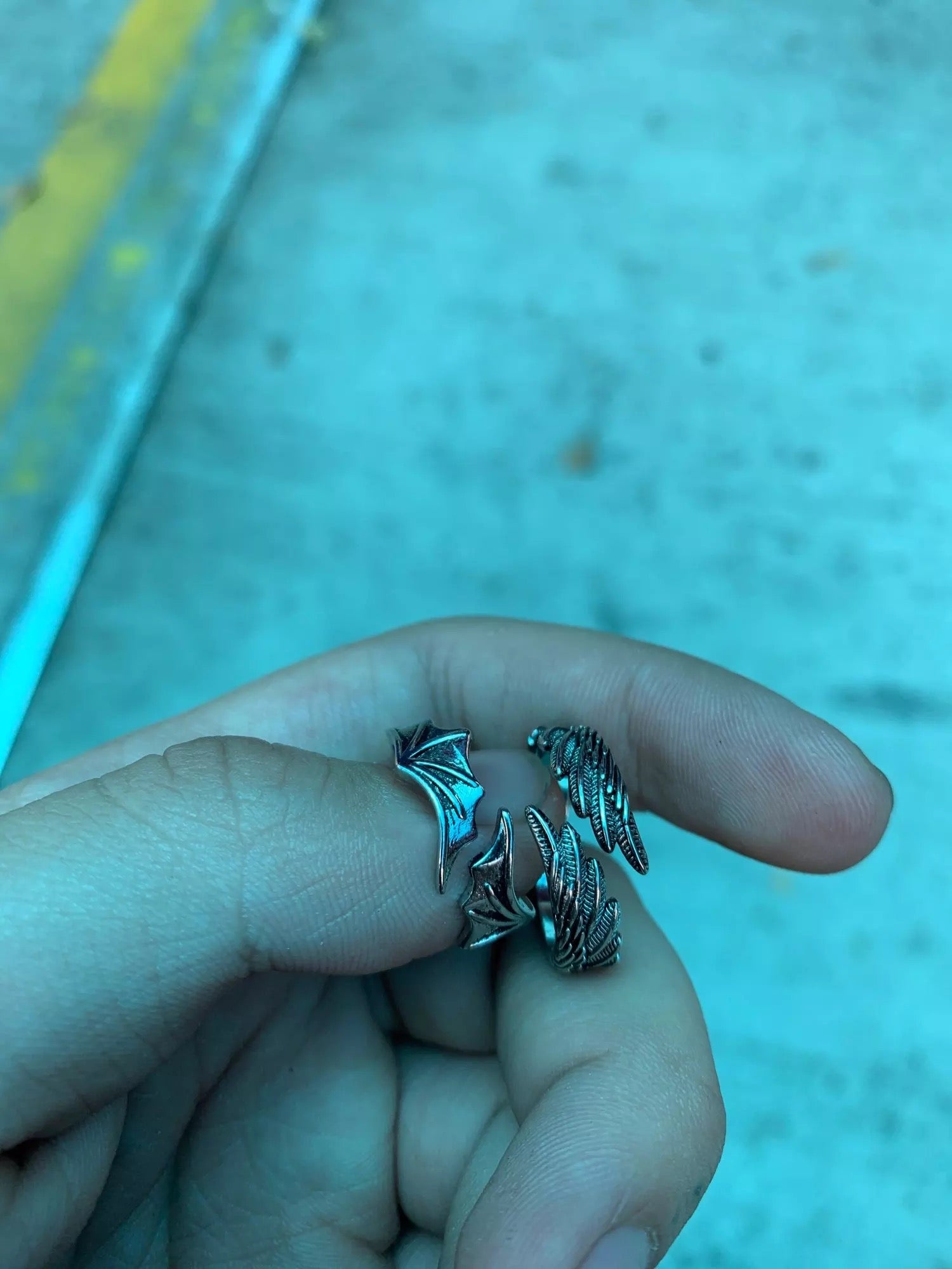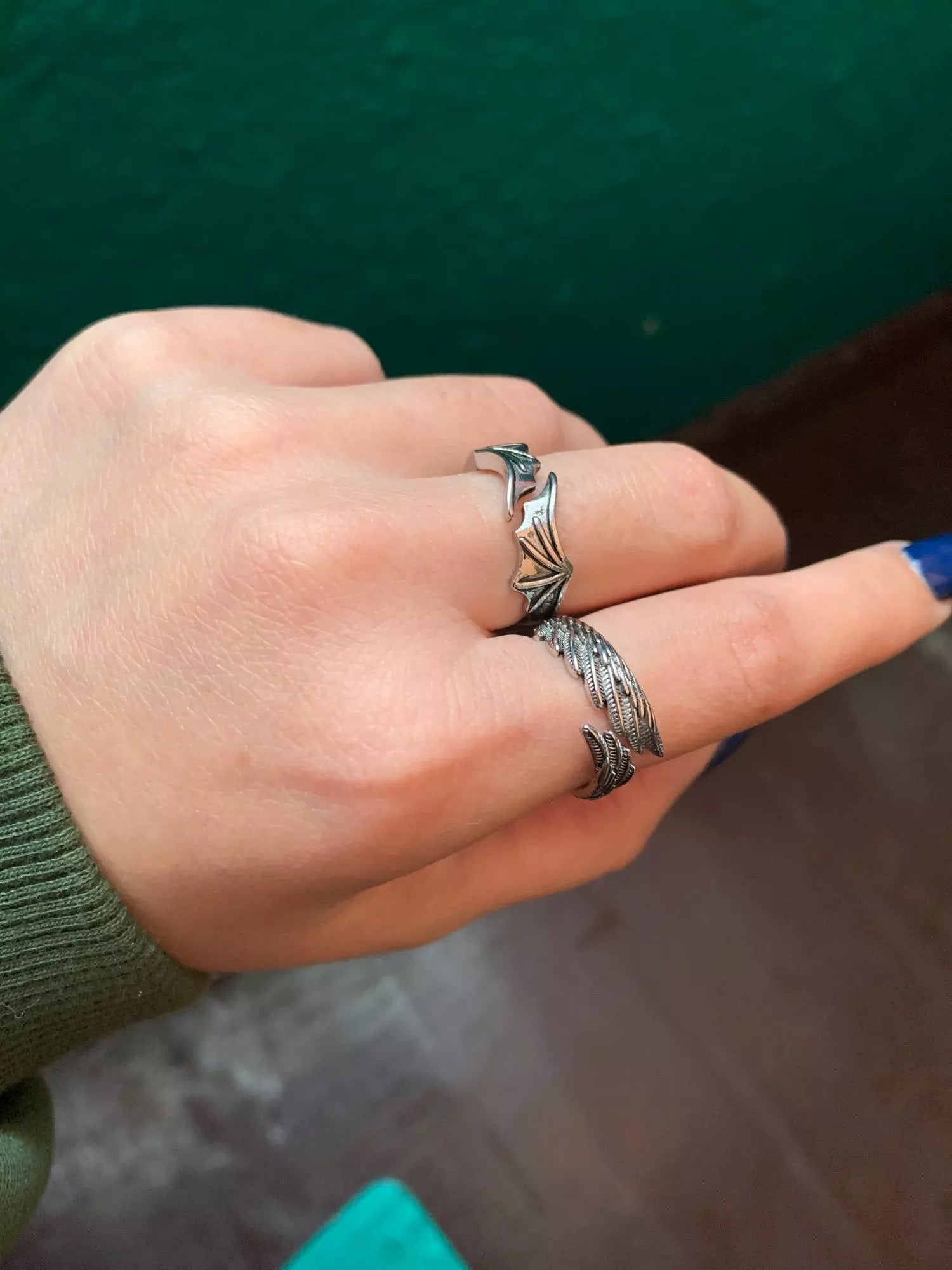 Descripción: Anillo alas de ángel oxidado de plata, fabricada de forma artesanal. Absolutamente una adición creativa a su armario de joyería.