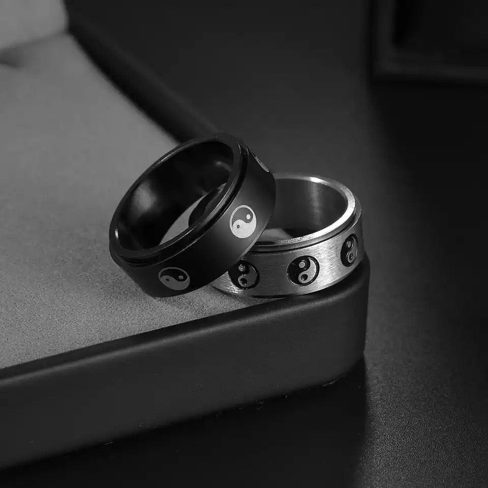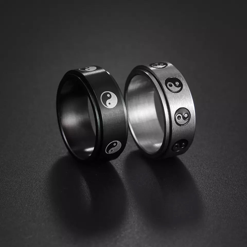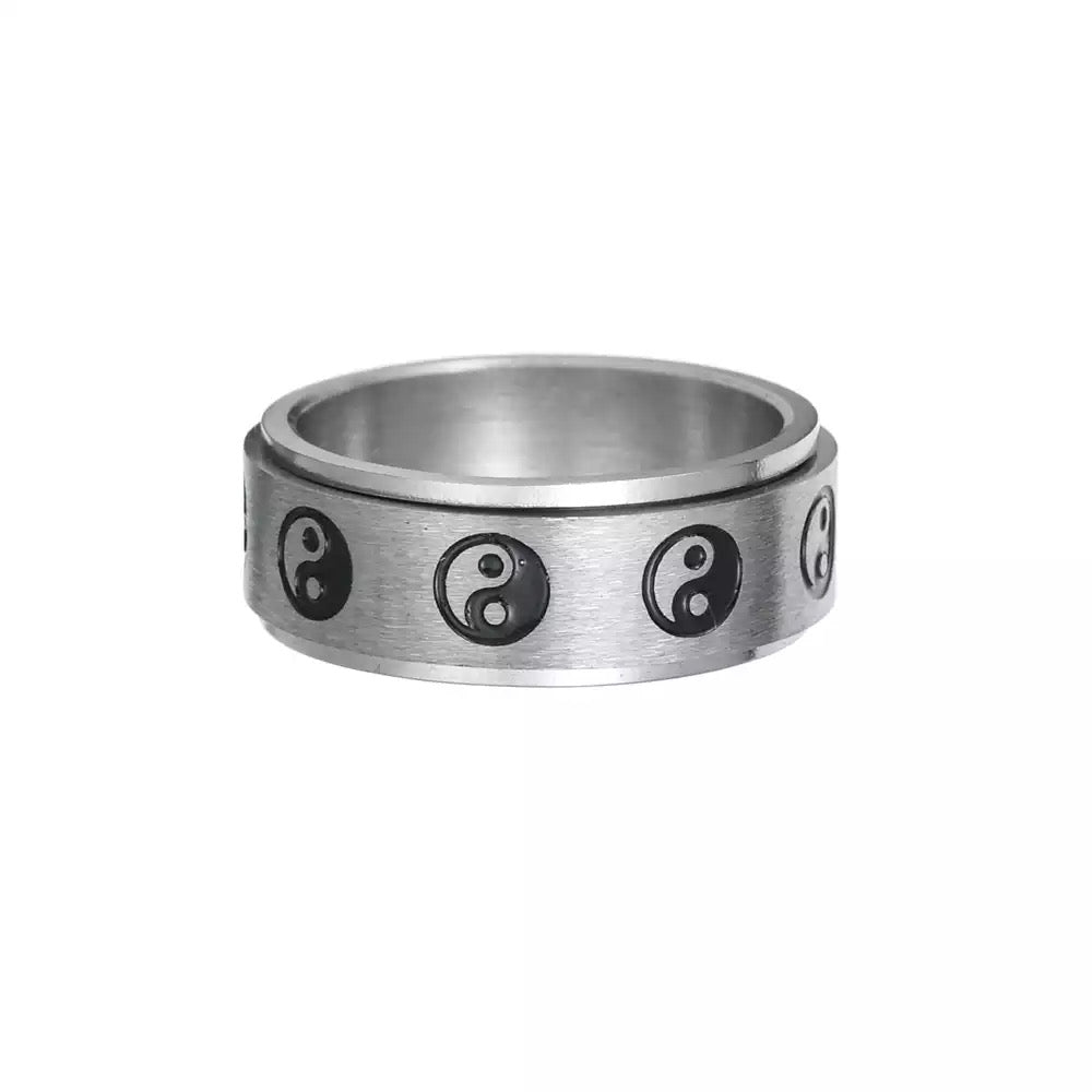 ANILLO GIRATORIO DISEÑO YIN YANG EN ACERO INOXIDABLE