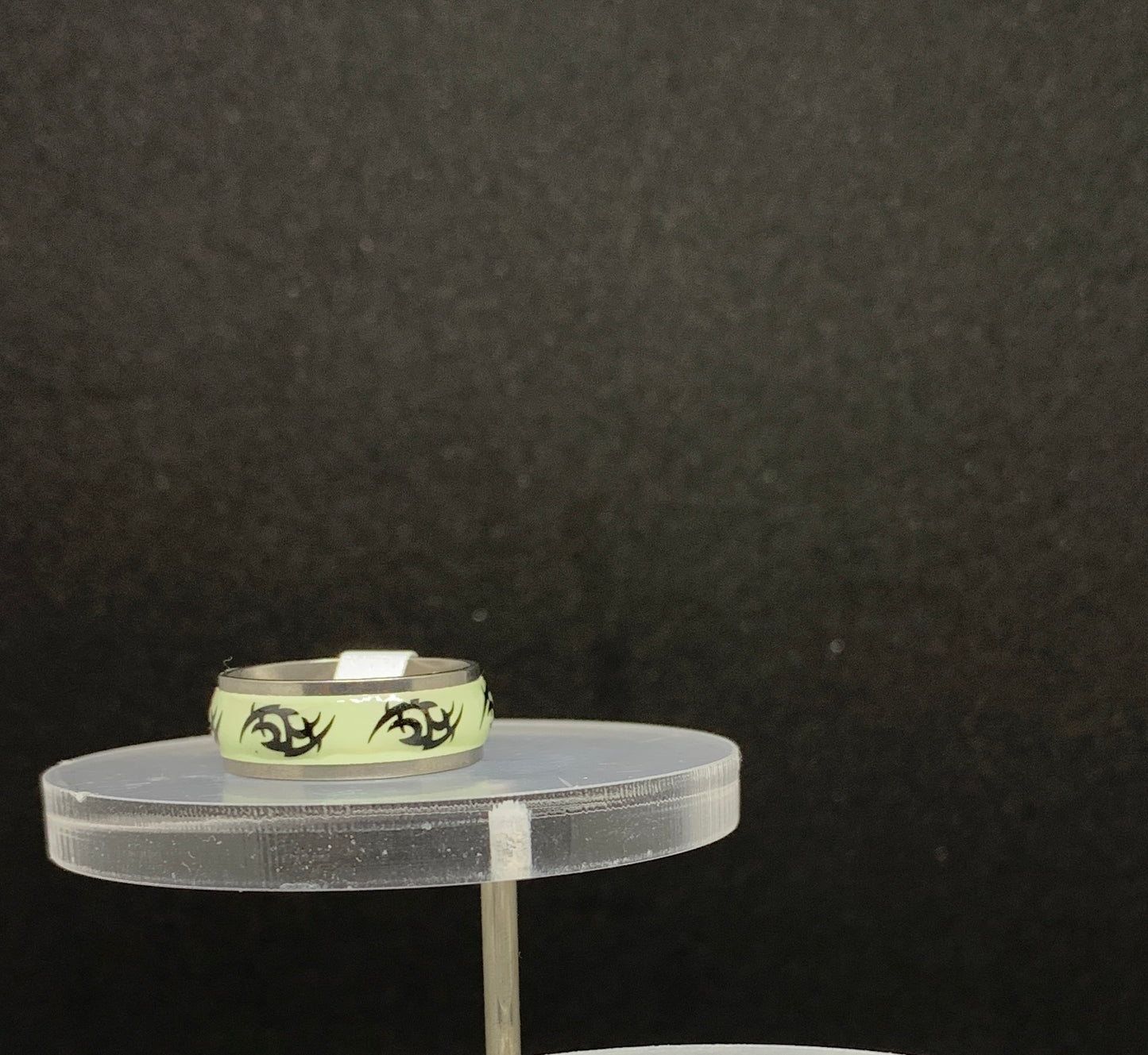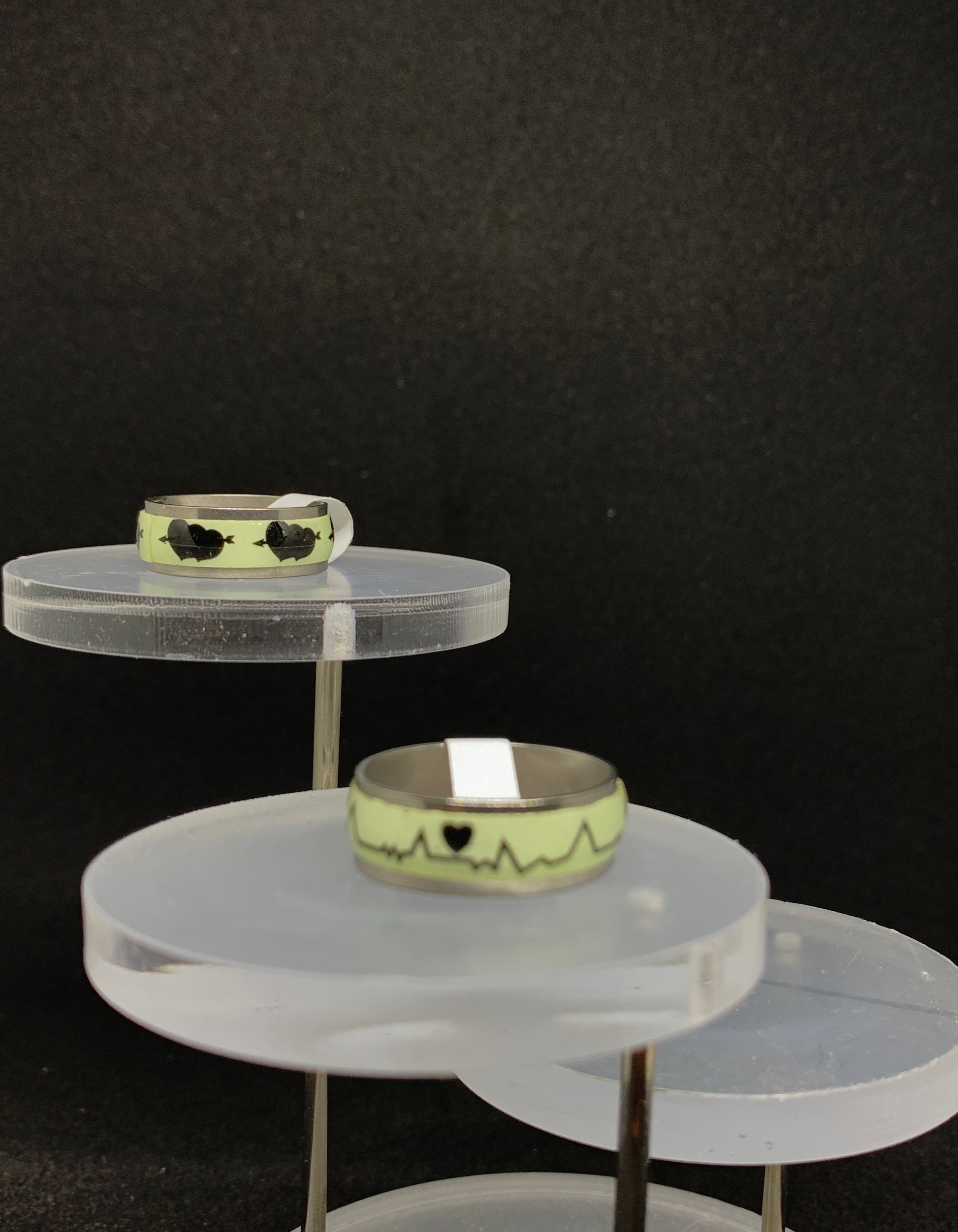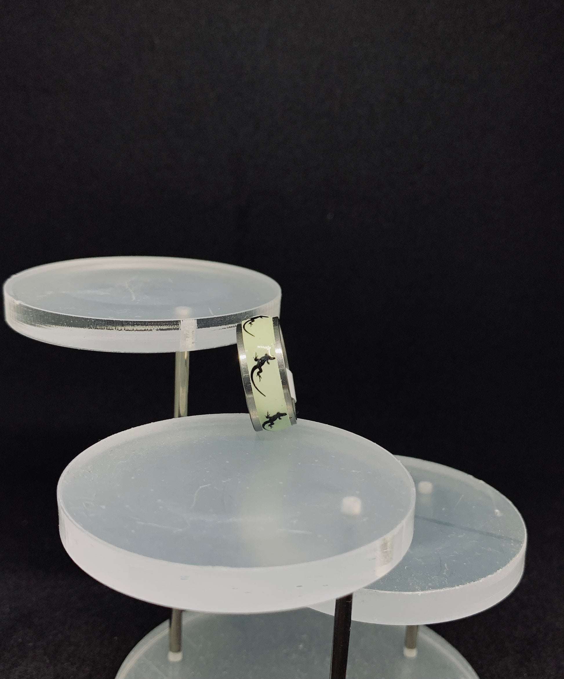 Estos Anillos brillan después de haberse recargado absorbiendo una fuente de luz, sea la luz del sol o un foco . Para comprobar este efecto fluorescente puede dejar el collar expuesto a la luz del sol en una ventana durante un par de horas o luz de foco durante minutos y luego observarlo en una habitación oscura.