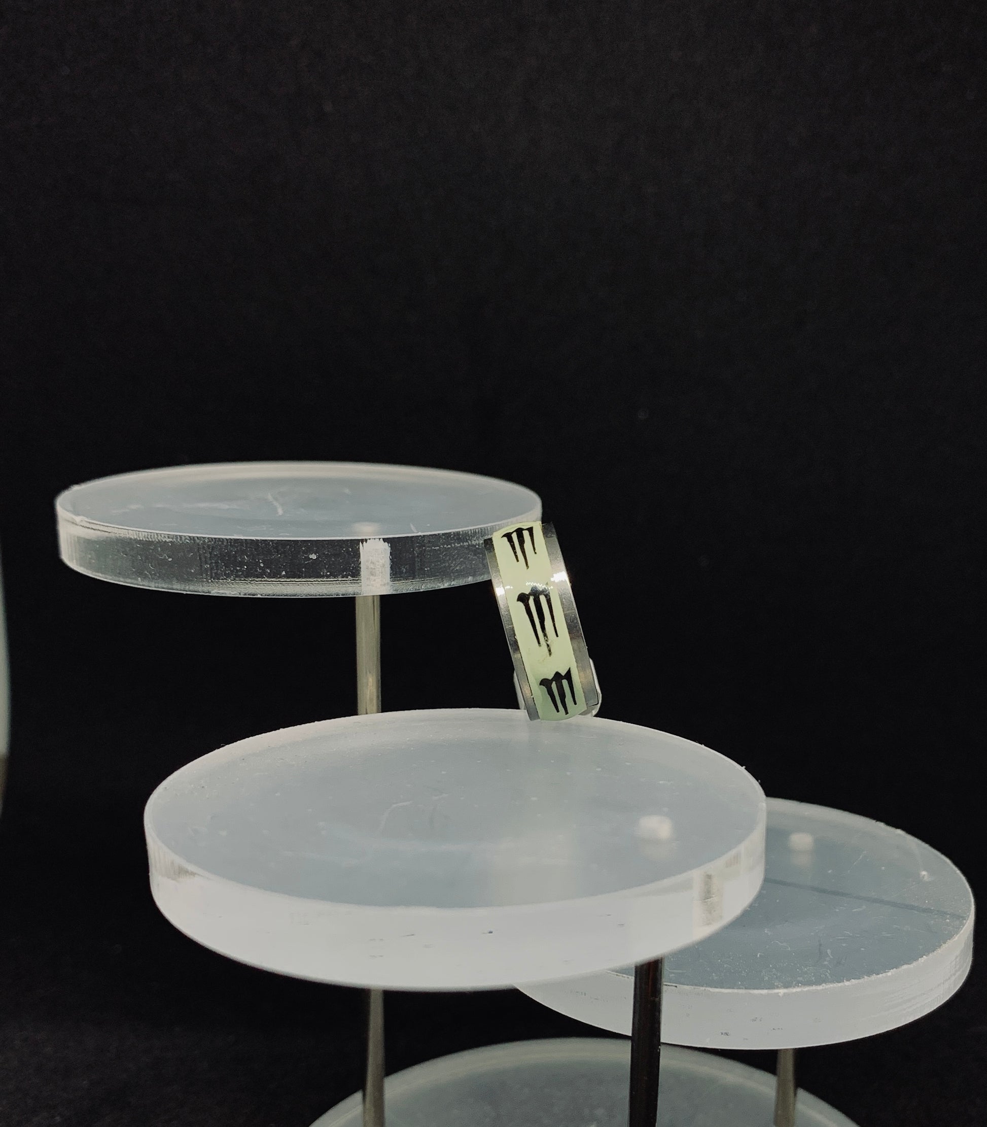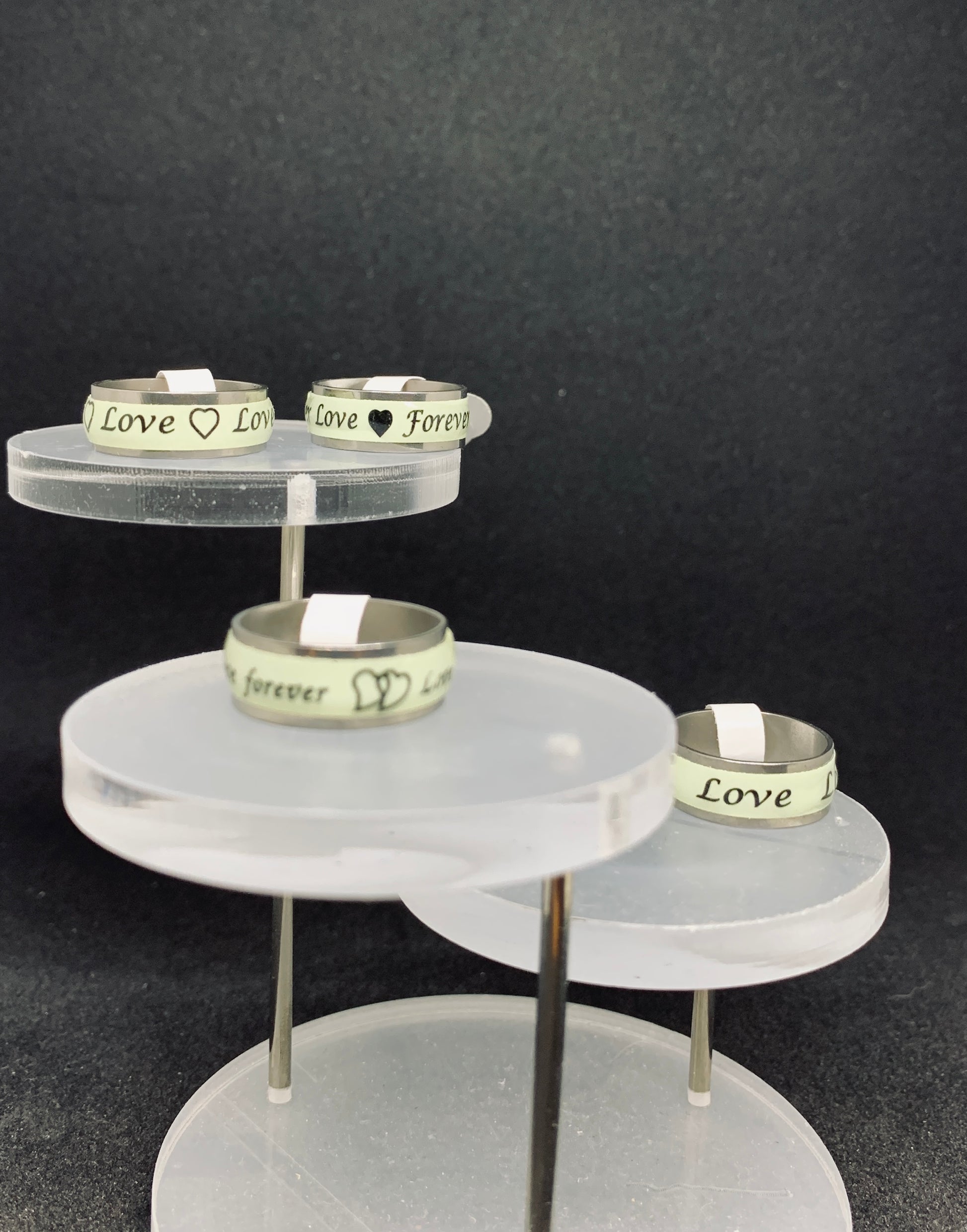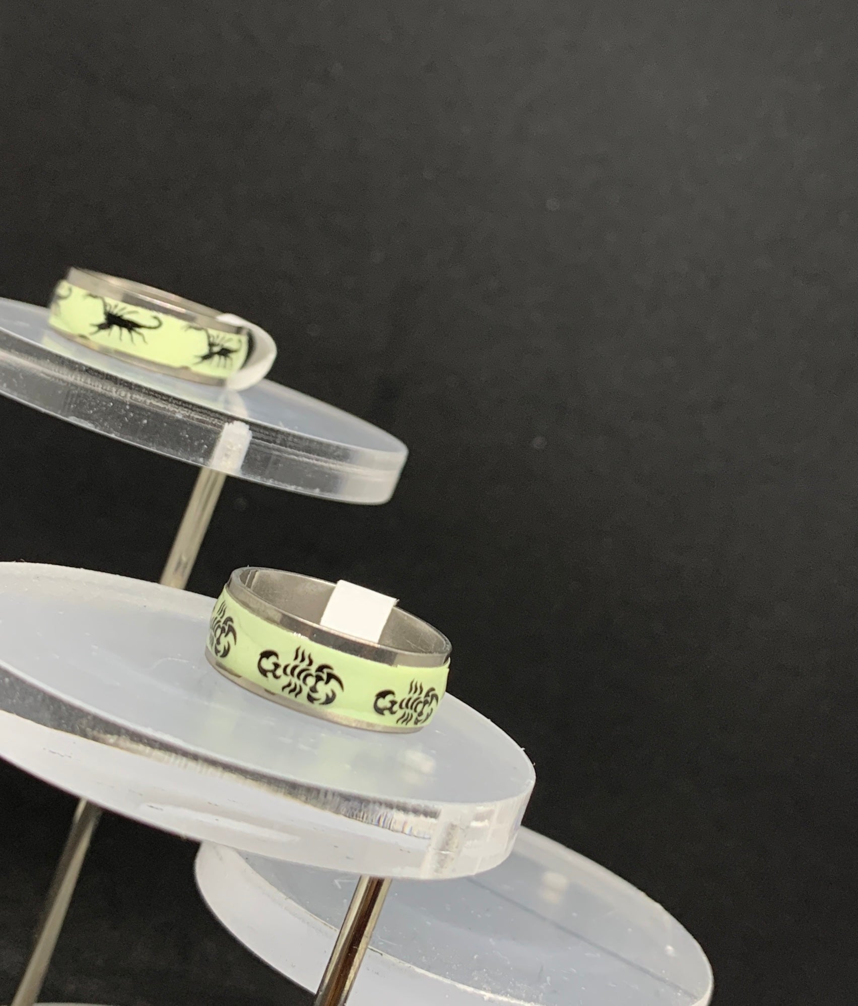 Estos Anillos brillan después de haberse recargado absorbiendo una fuente de luz, sea la luz del sol o un foco . Para comprobar este efecto fluorescente puede dejar el collar expuesto a la luz del sol en una ventana durante un par de horas o luz de foco durante minutos y luego observarlo en una habitación oscura.