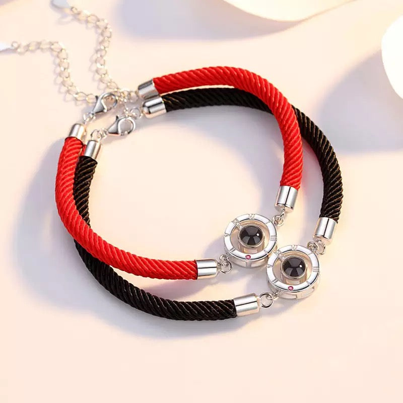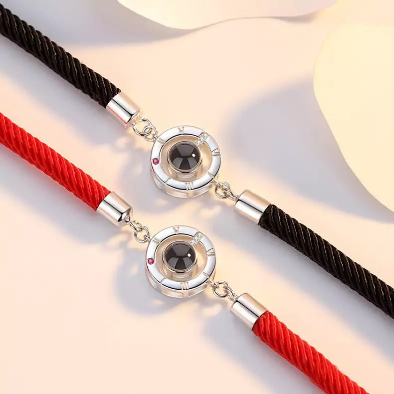 Descripción: Brazalete que proyecta la palabra «Te Amo» en 100 idiomas grabados a través de nano microcarving.