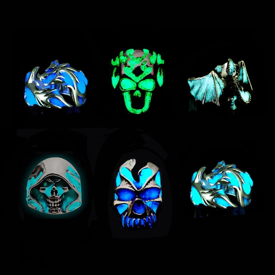 ANILLOS PUNK GÓTICO BRILLAN EN LA OSCURIDAD