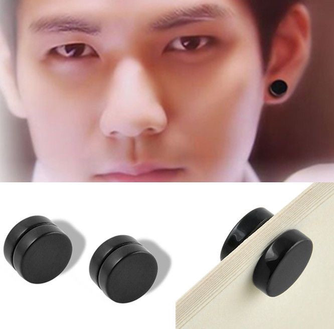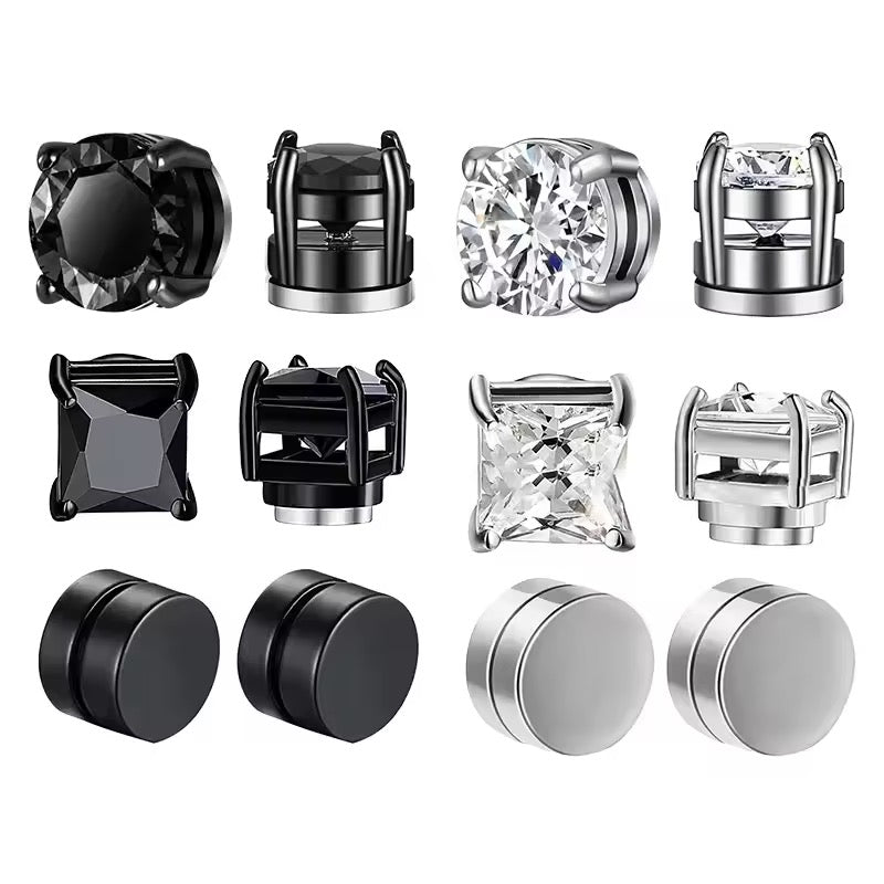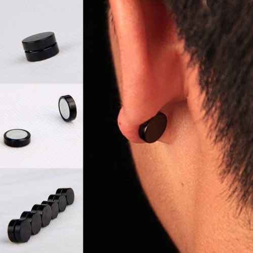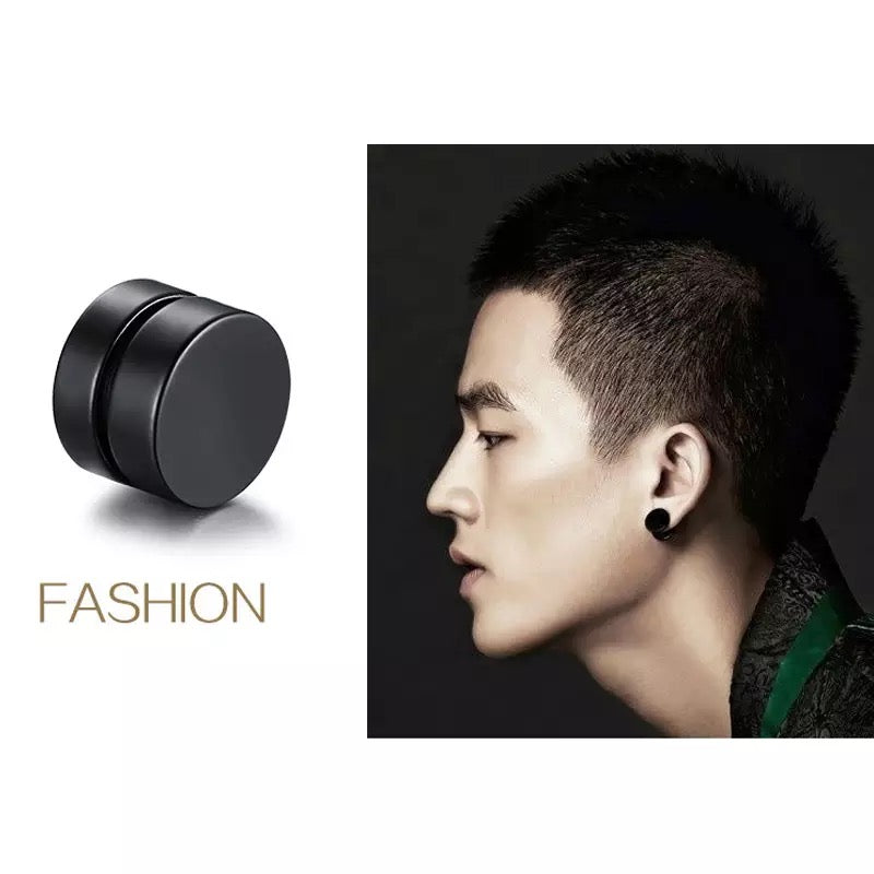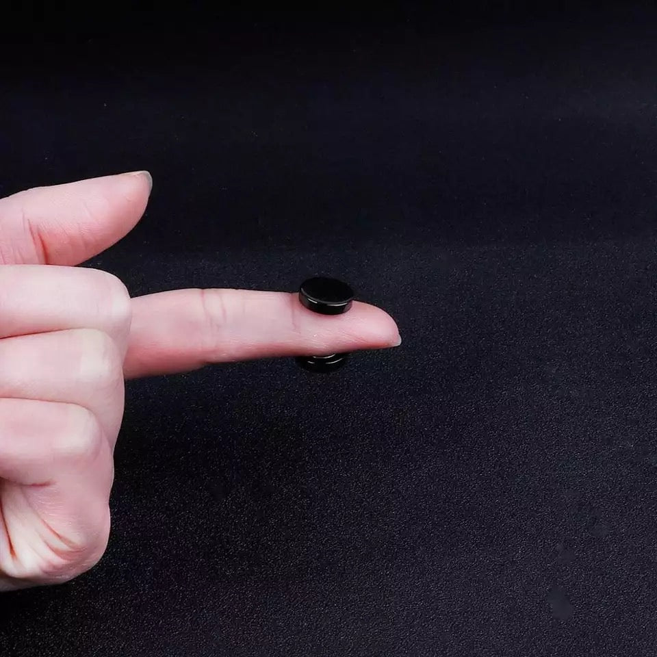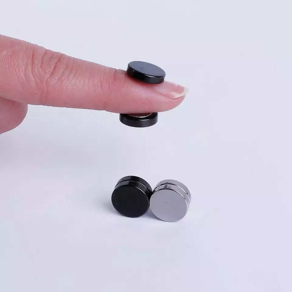 •Aretes de iman •Magnéticos • Negro & Plateado • 6 mm • Acero Inoxidable