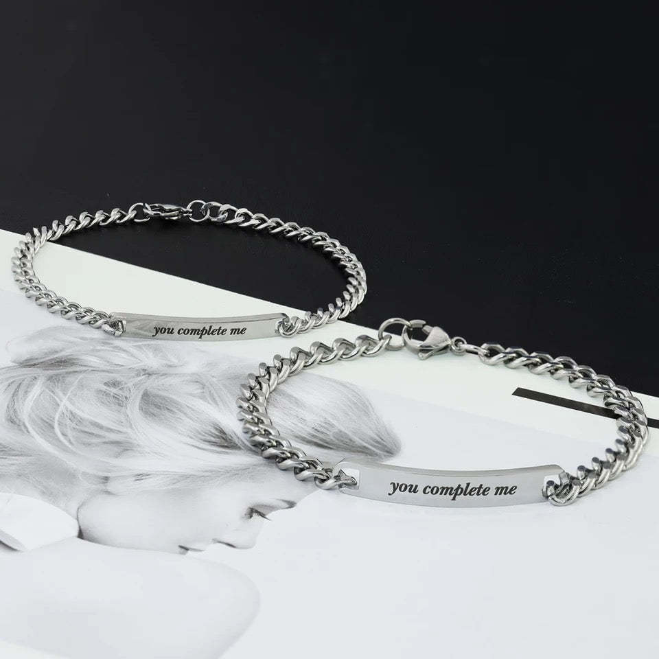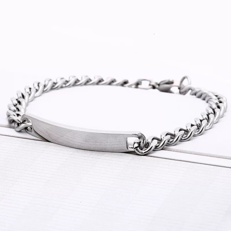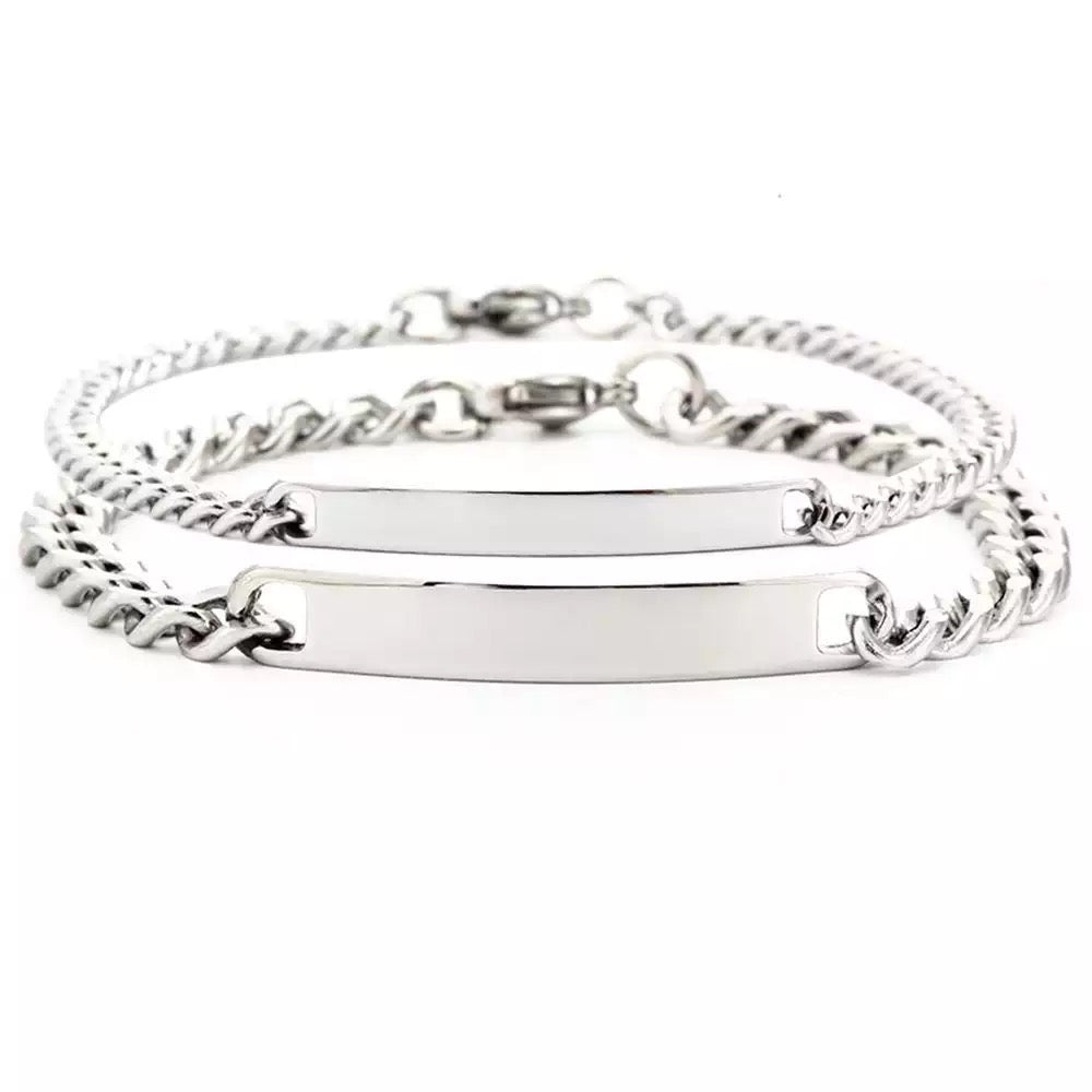 BRAZALETES ACERO INOXIDABLE PLACA PERSONALIZADAS MINIMALISTAS PAREJA