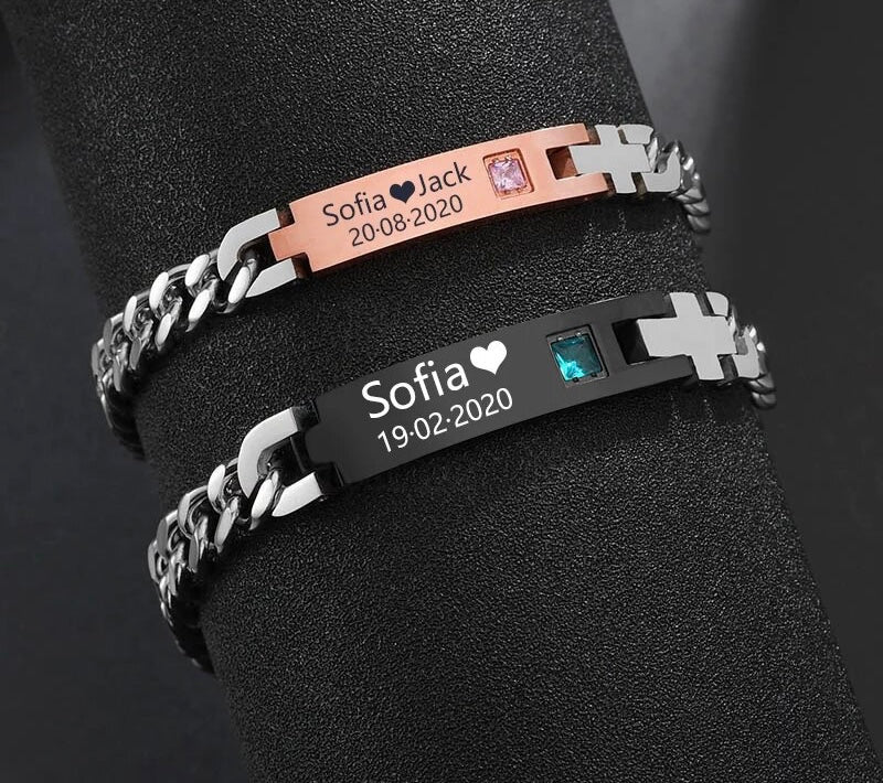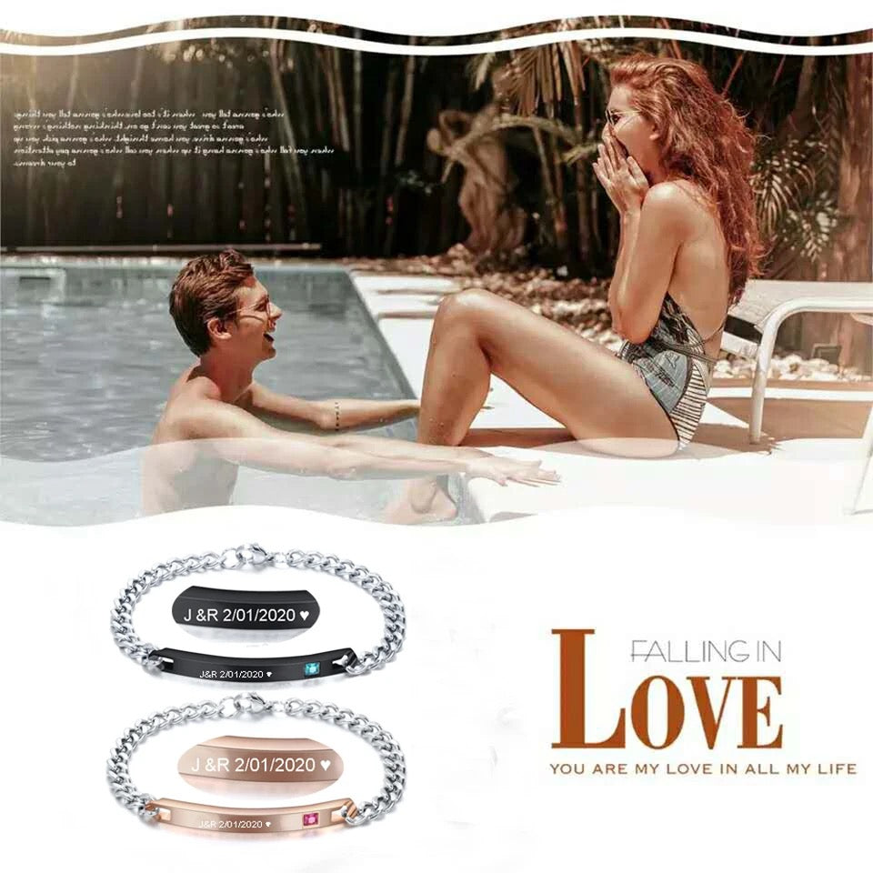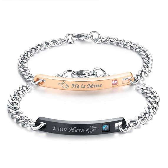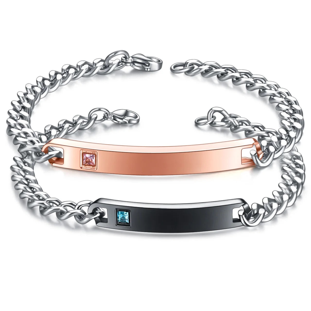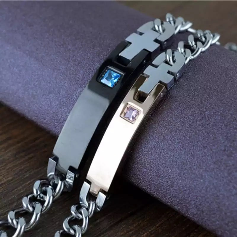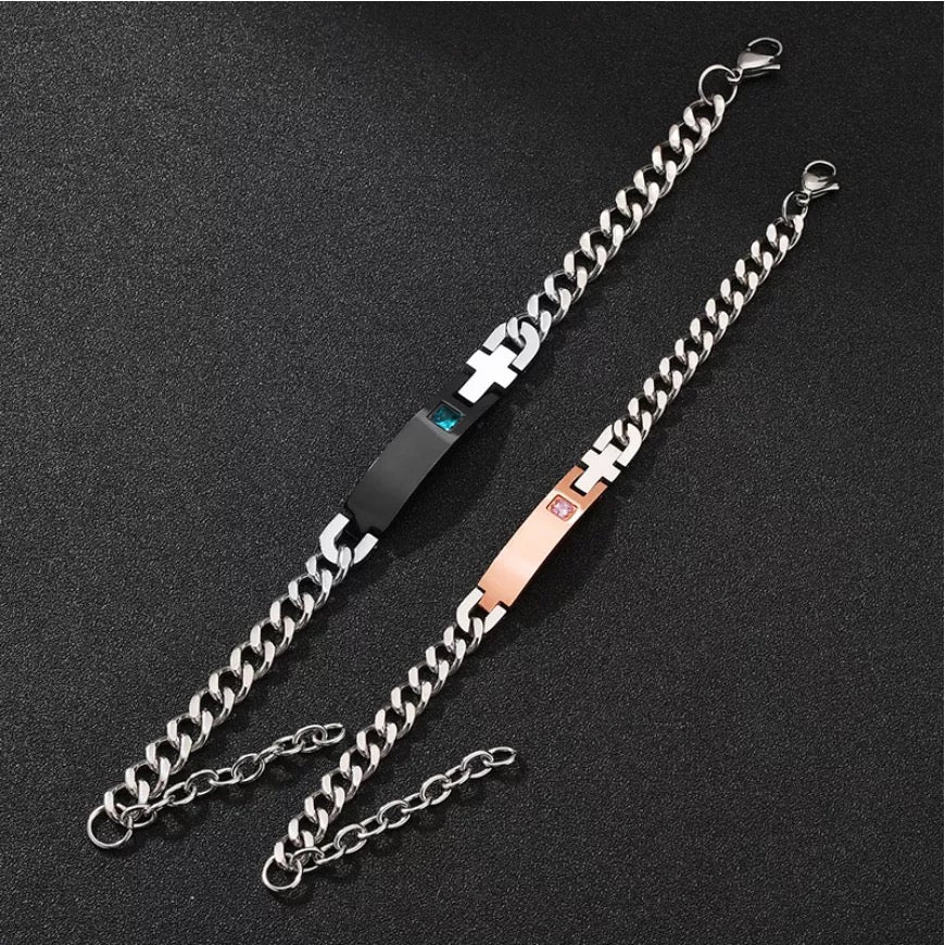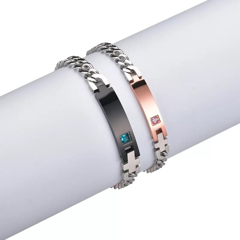 BRAZALETES EN PAREJA PERSONALIZABLE CIRCONIA CÚBICA