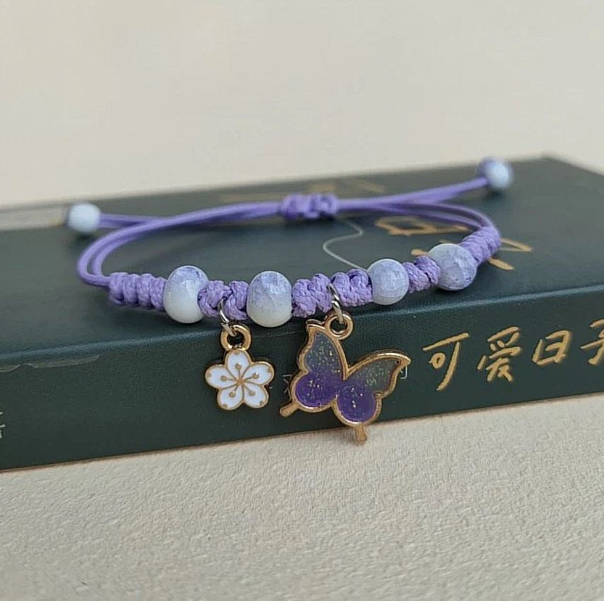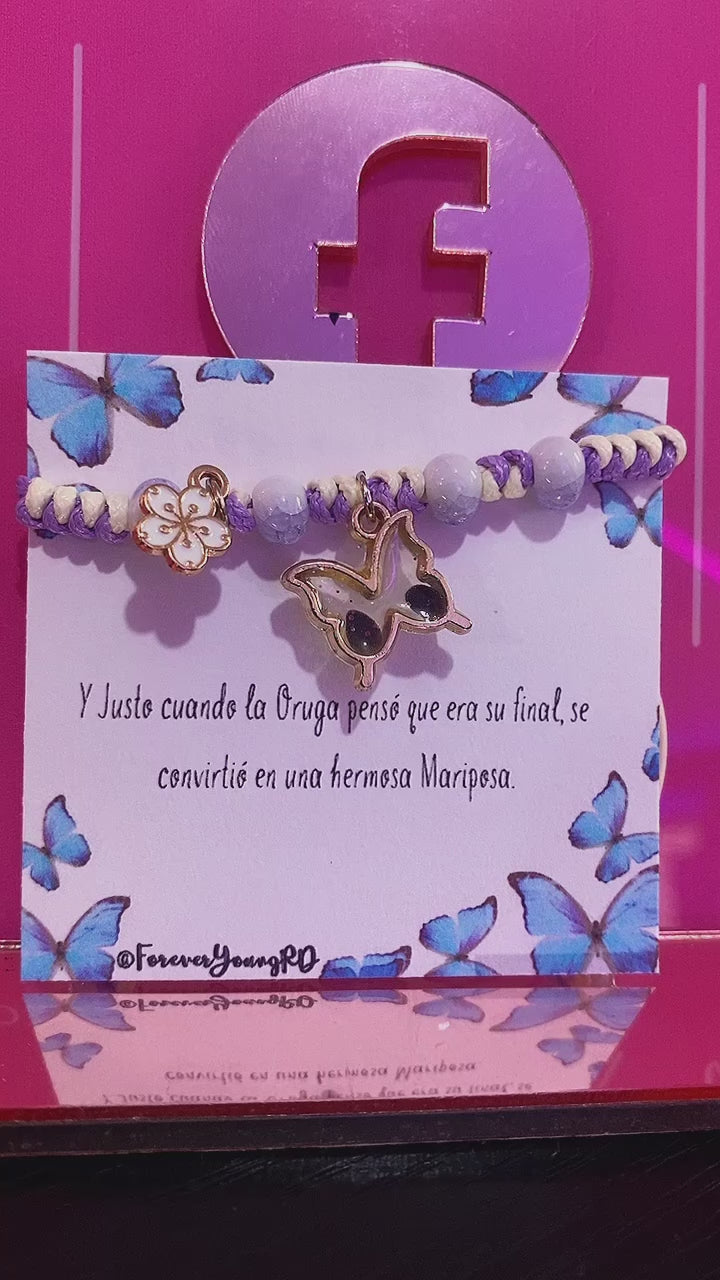 BRAZALETE RESINA MARIPOSA Y FLOR HECHAS A MANO ARTESANAL