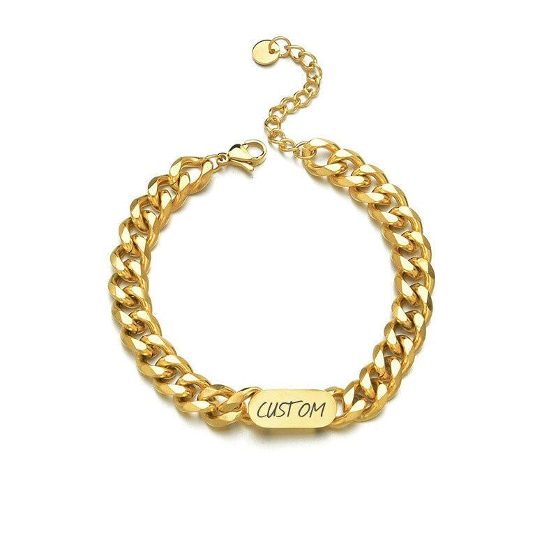 BRAZALETE ESTILO CUBANA ACERO INOXIDABLE PERSONALIZABLE PLATEADOS