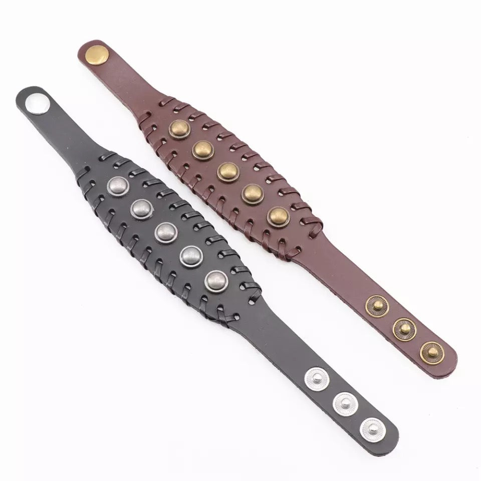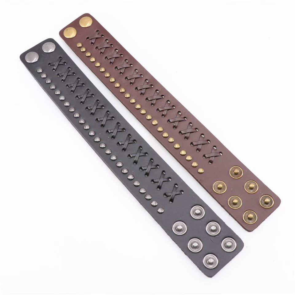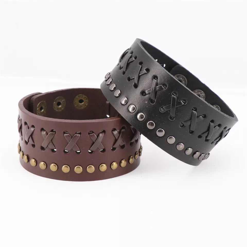 Descripción: Este brazalete ancho está hecho de una excelente calidad de cuero genuino liso.