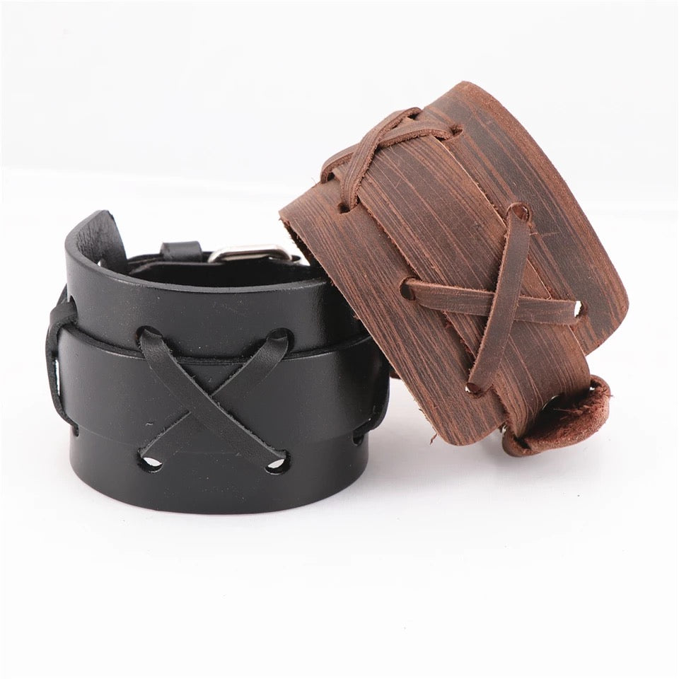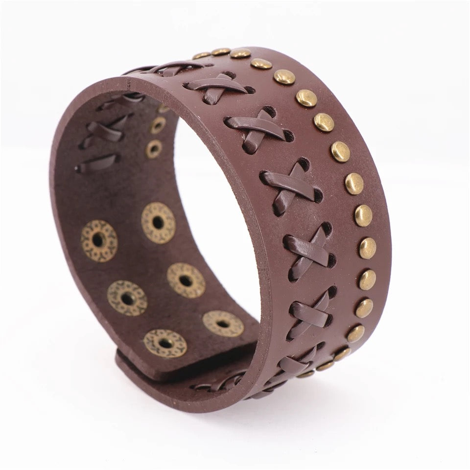 BRAZALETE ANCHO CUERO GENUINO 100%