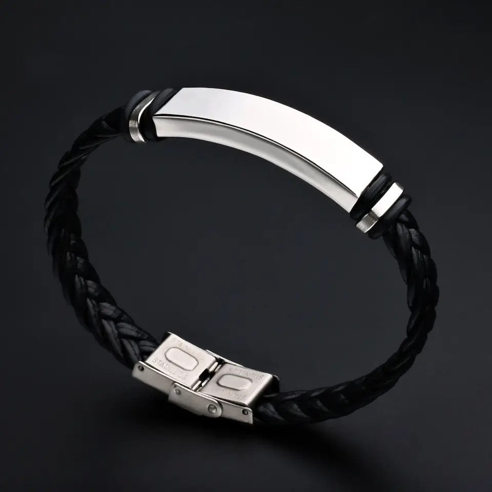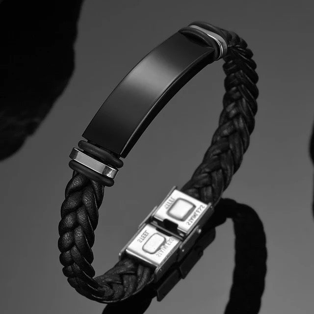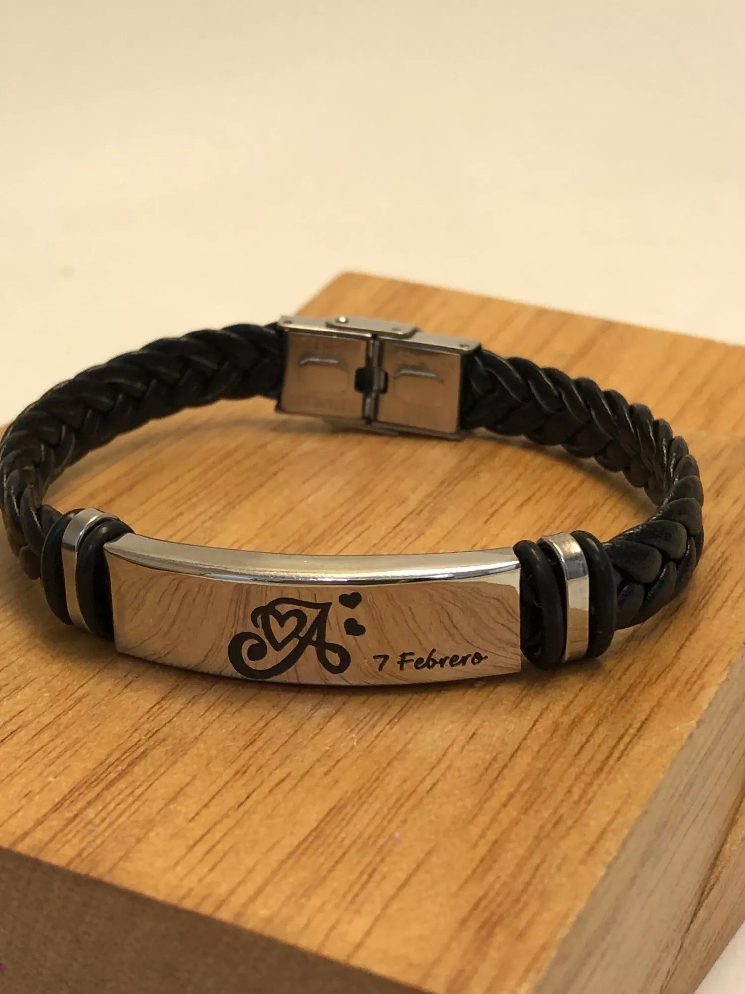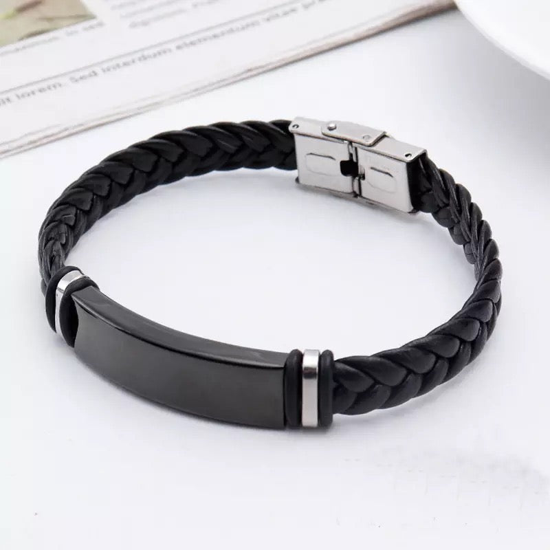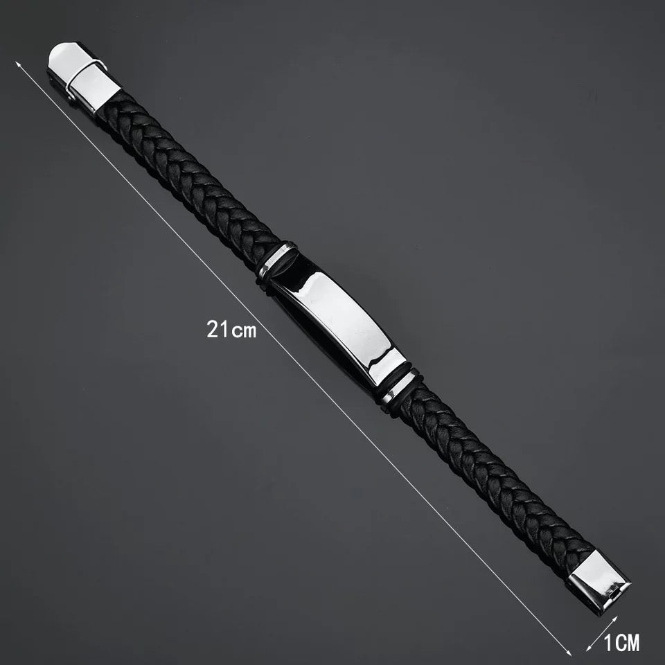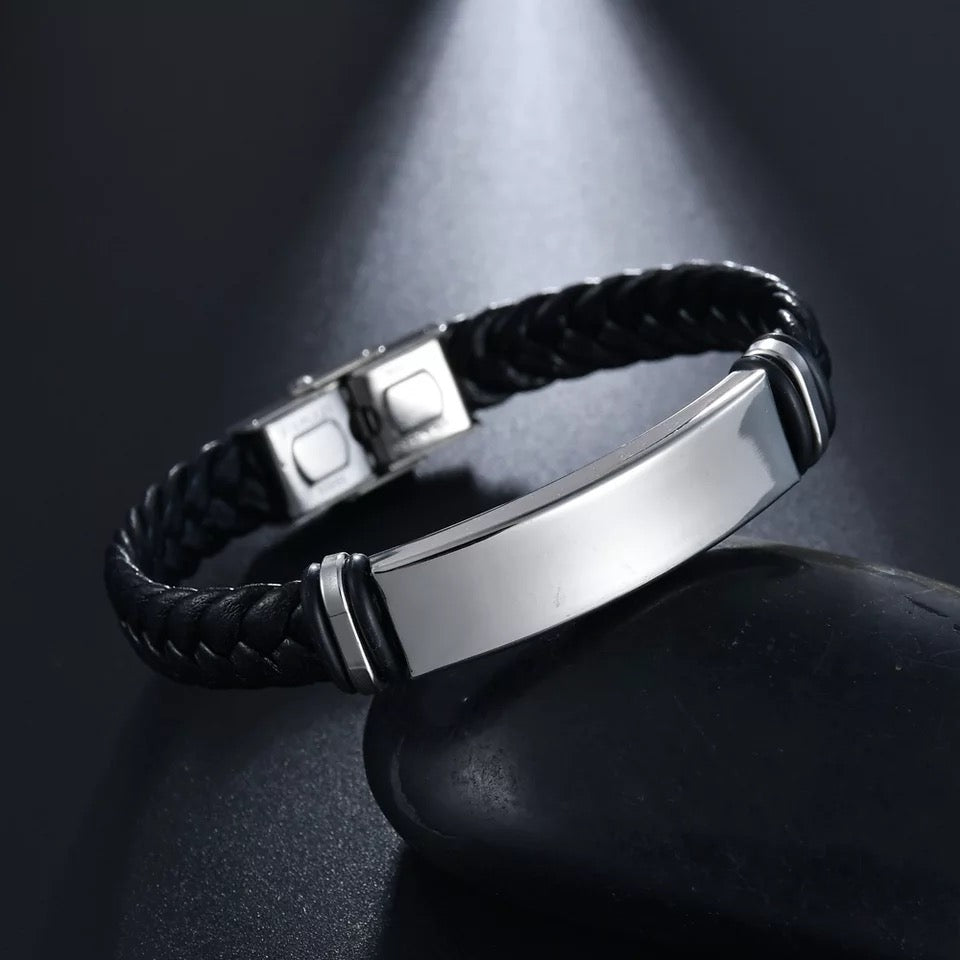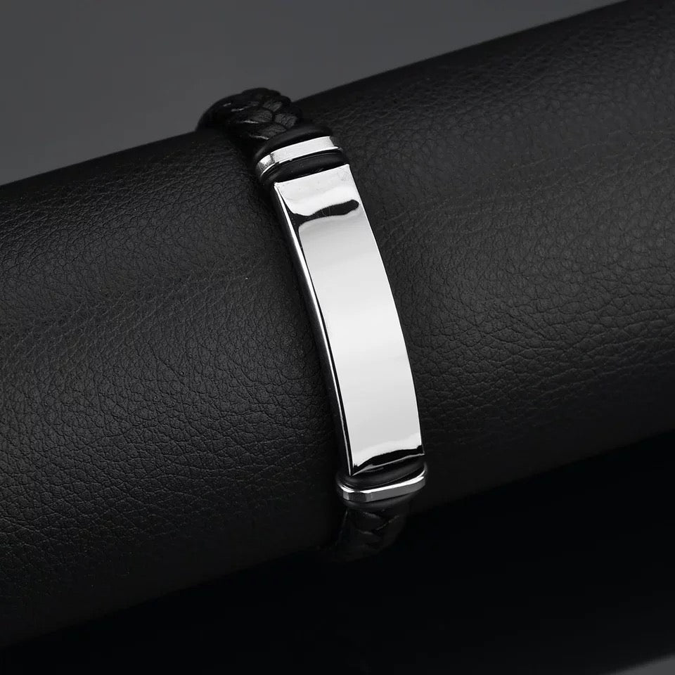 BRAZALETE LEATHER TRENZADO PLACA DE ACERO LAMINADO