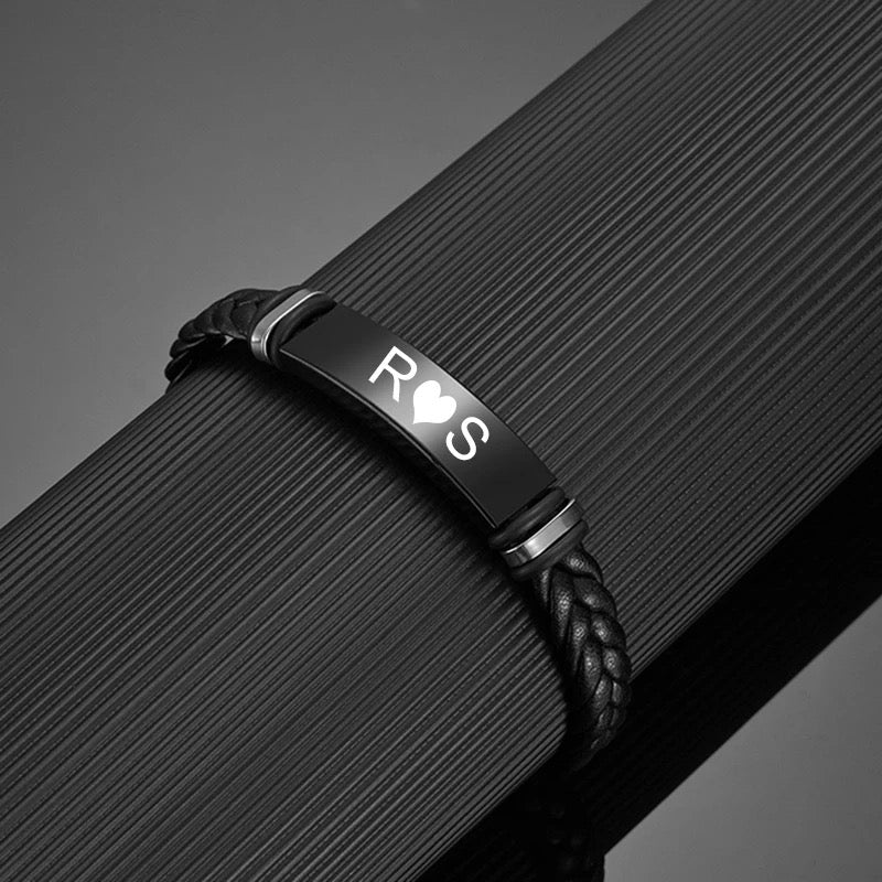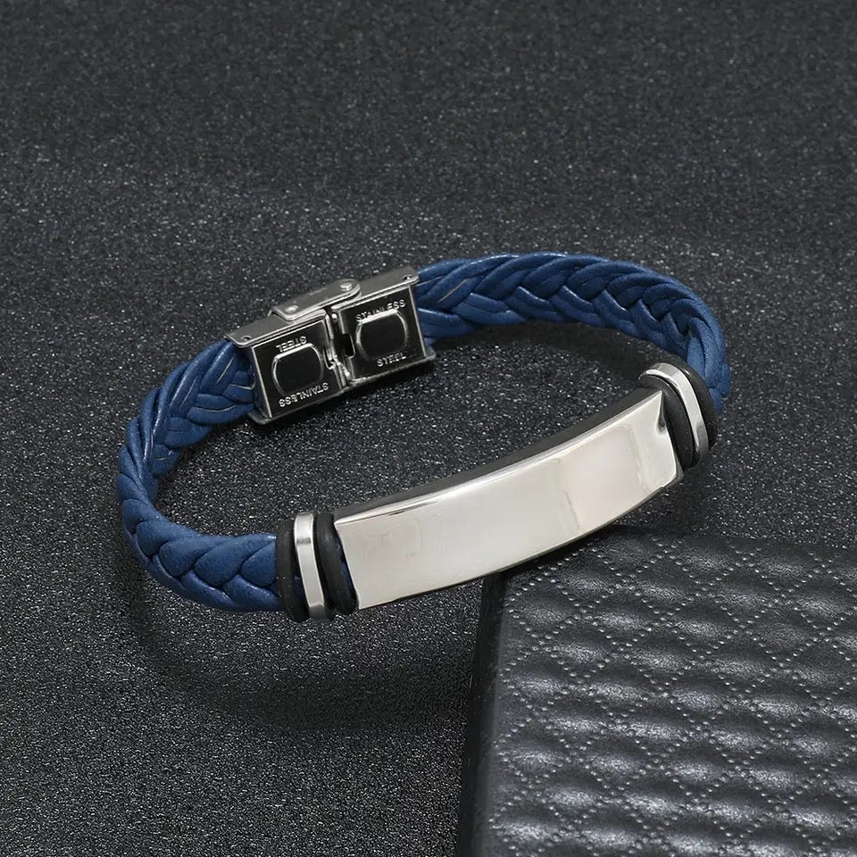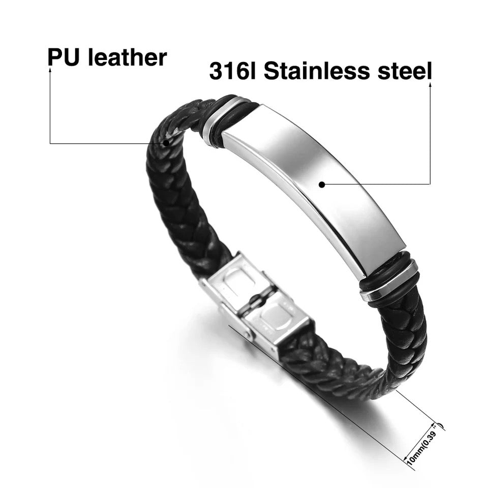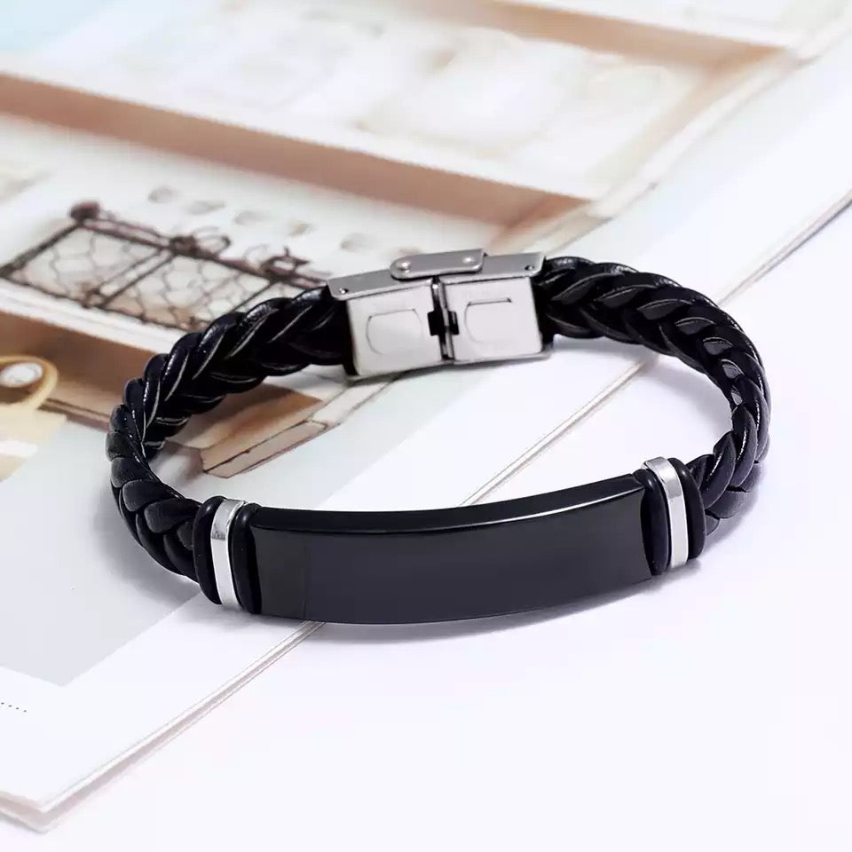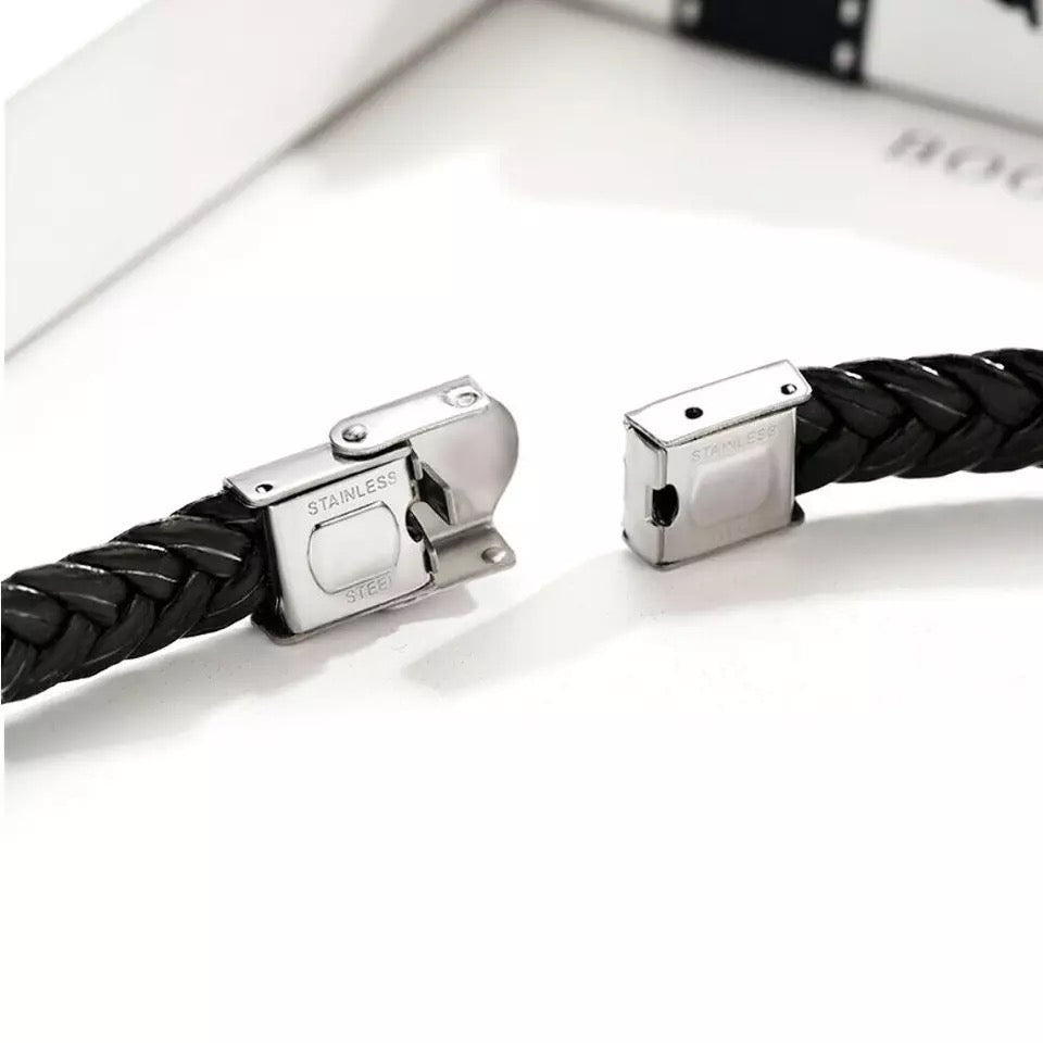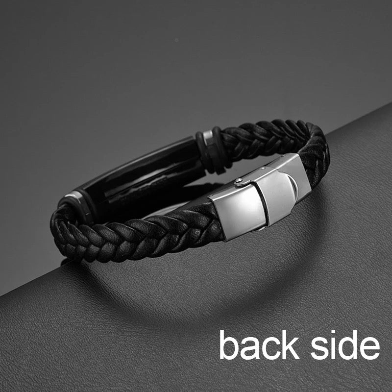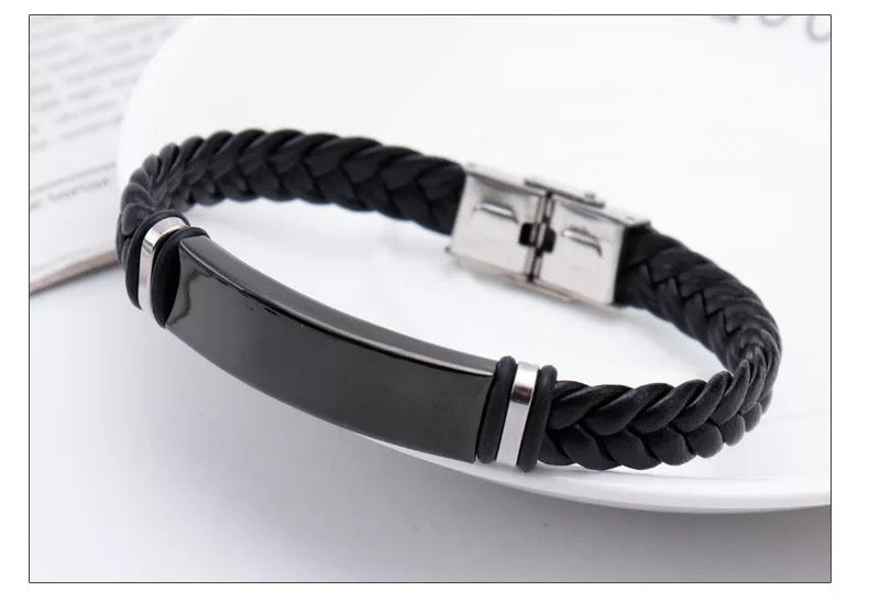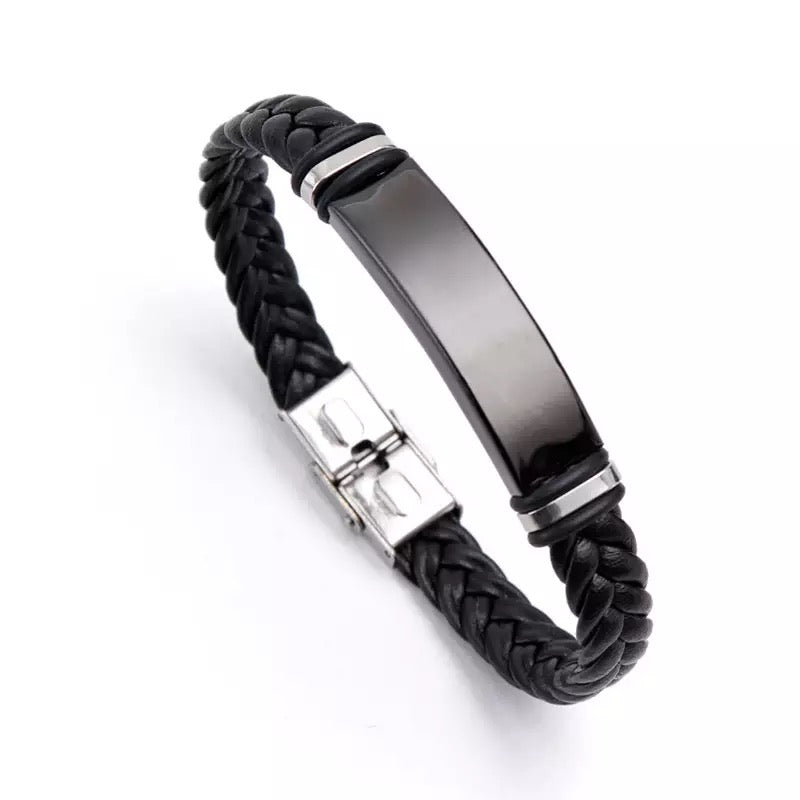 BRAZALETE LEATHER TRENZADO PLACA DE ACERO LAMINADO