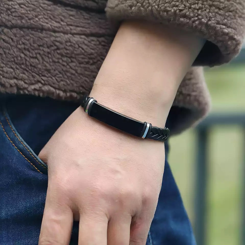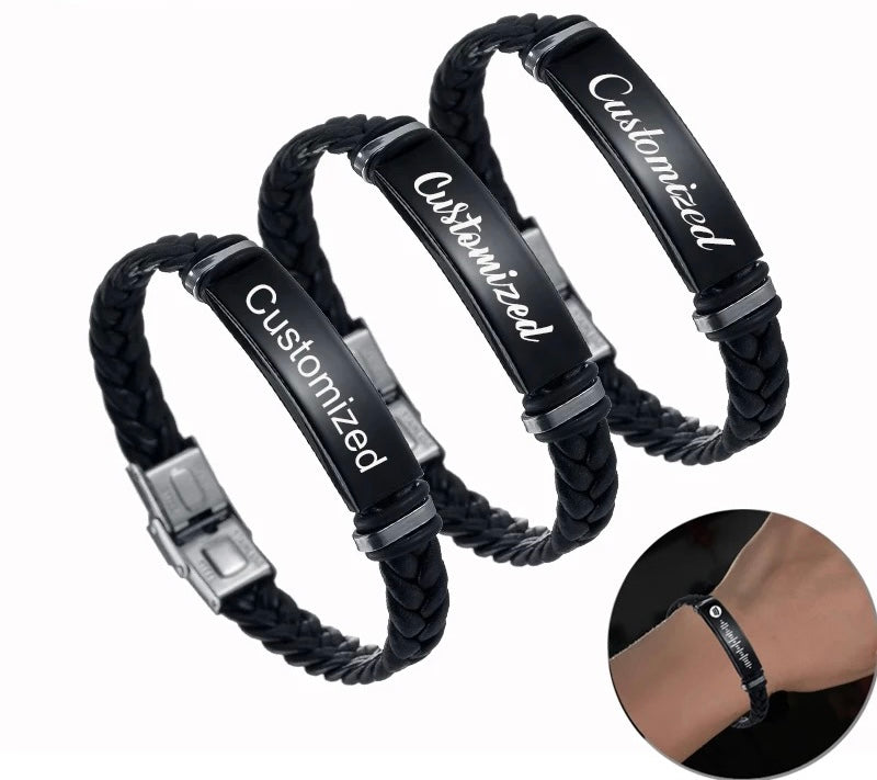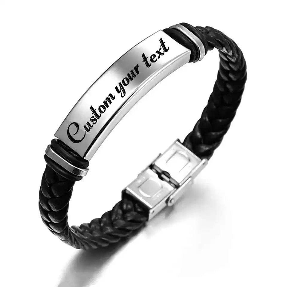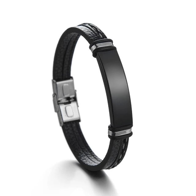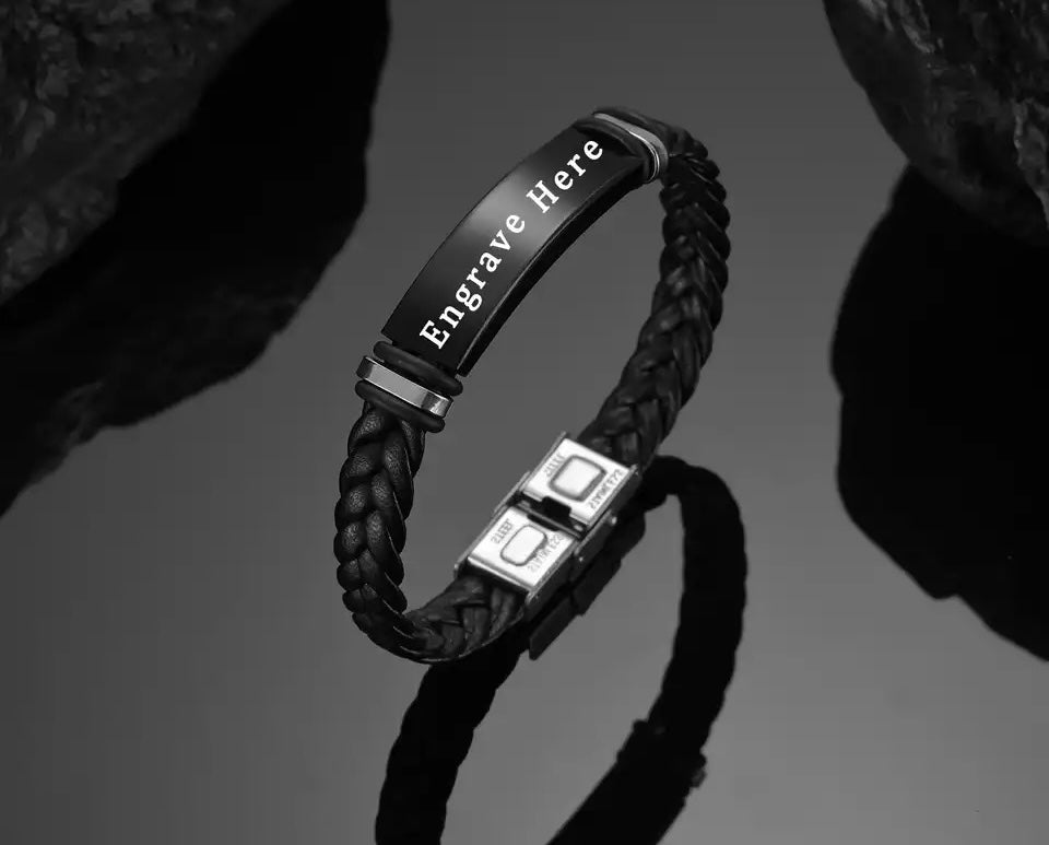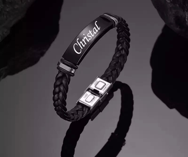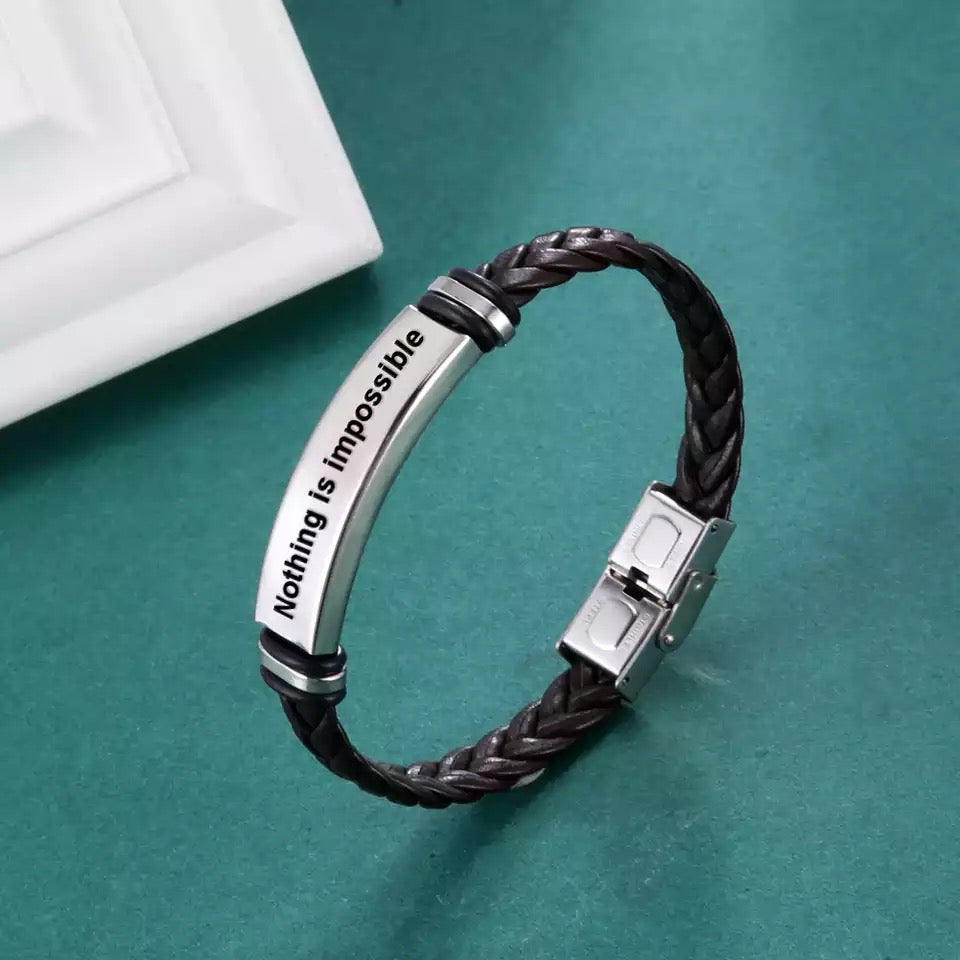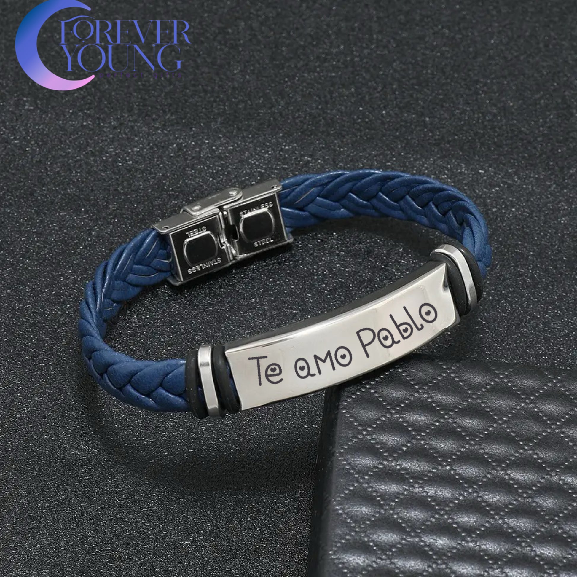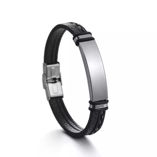 BRAZALETE LEATHER TRENZADO PLACA DE ACERO LAMINADO