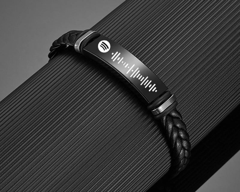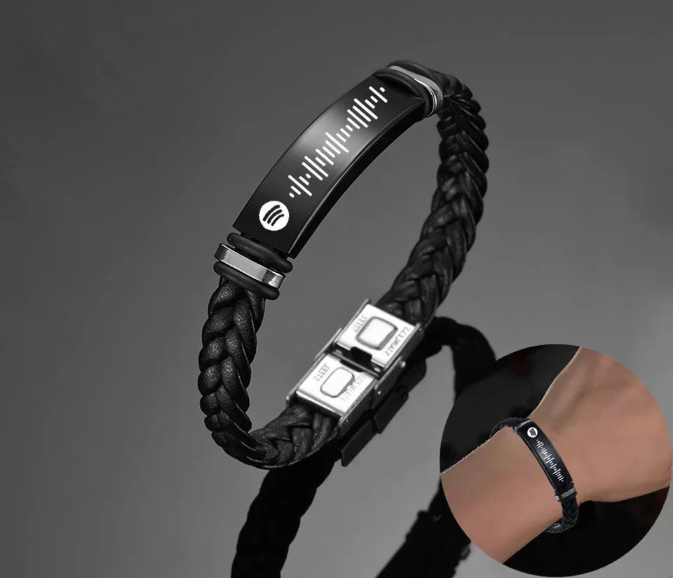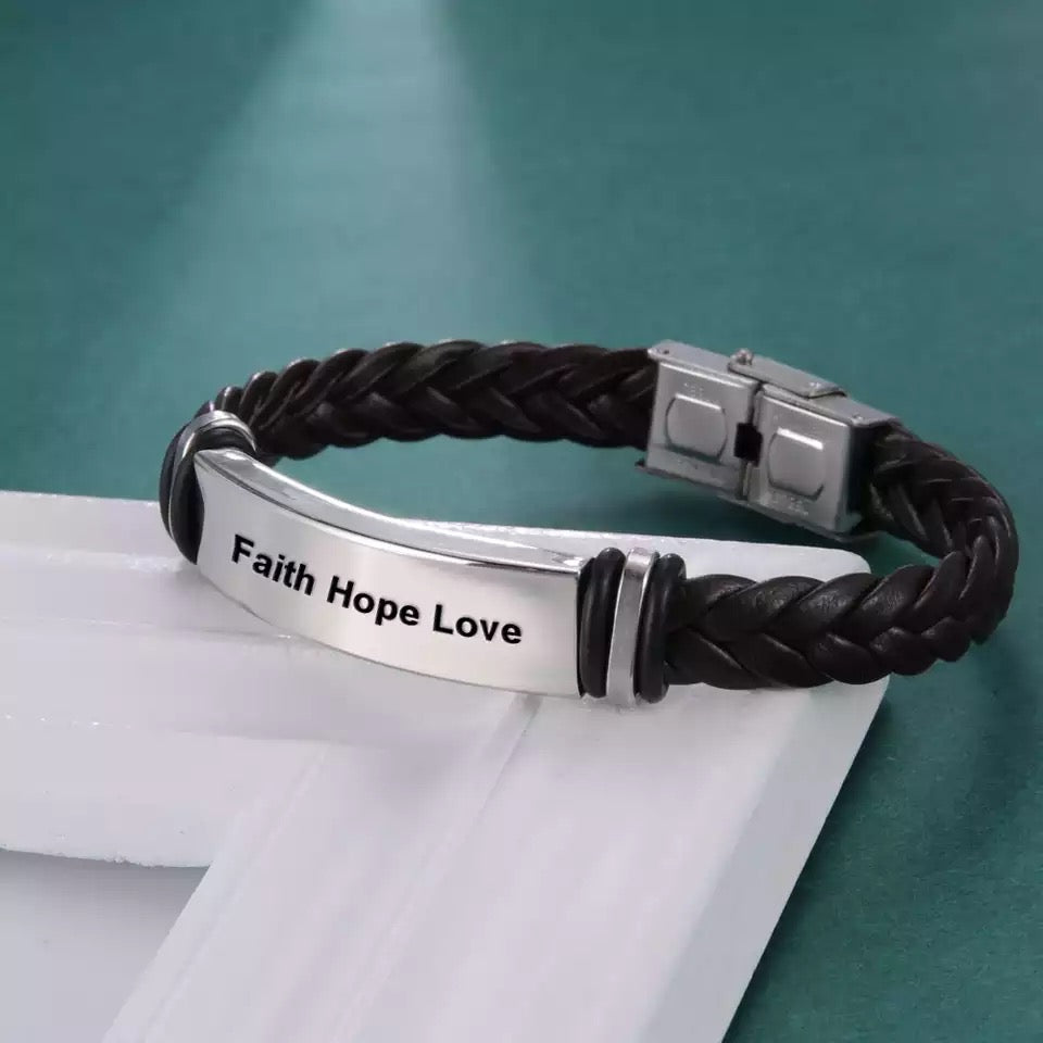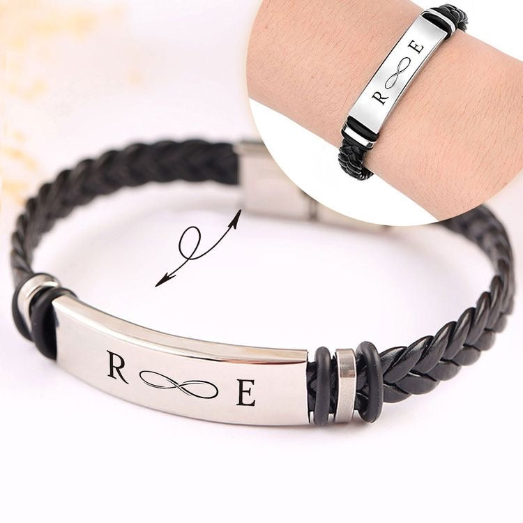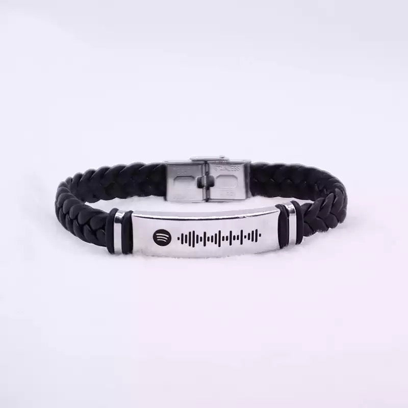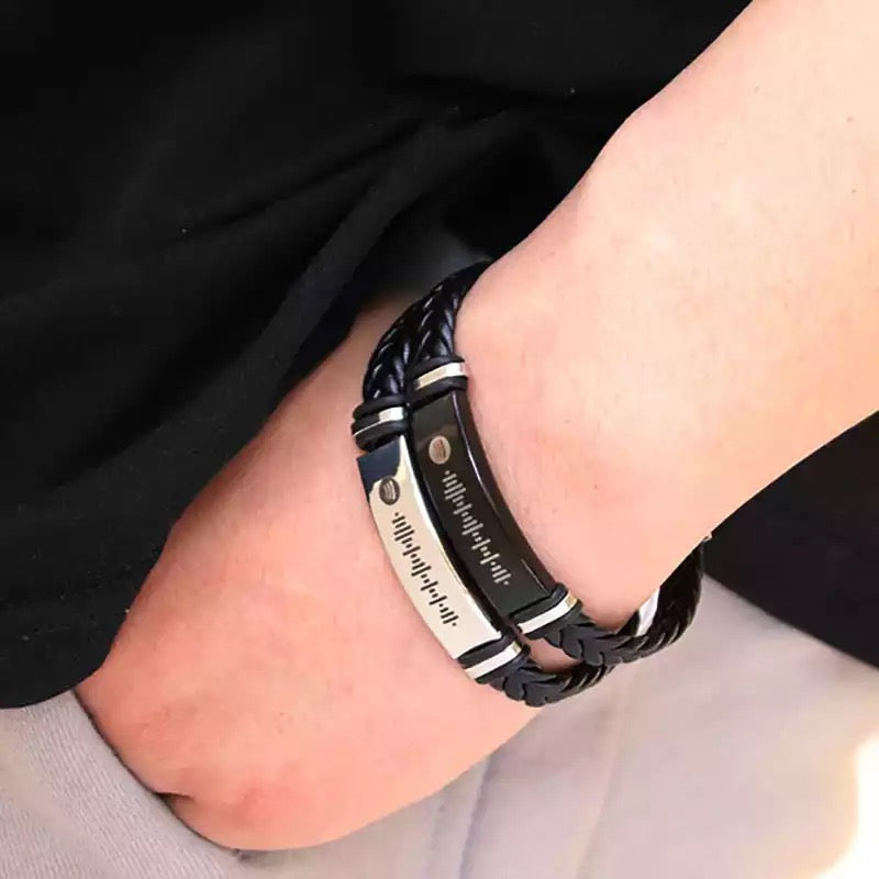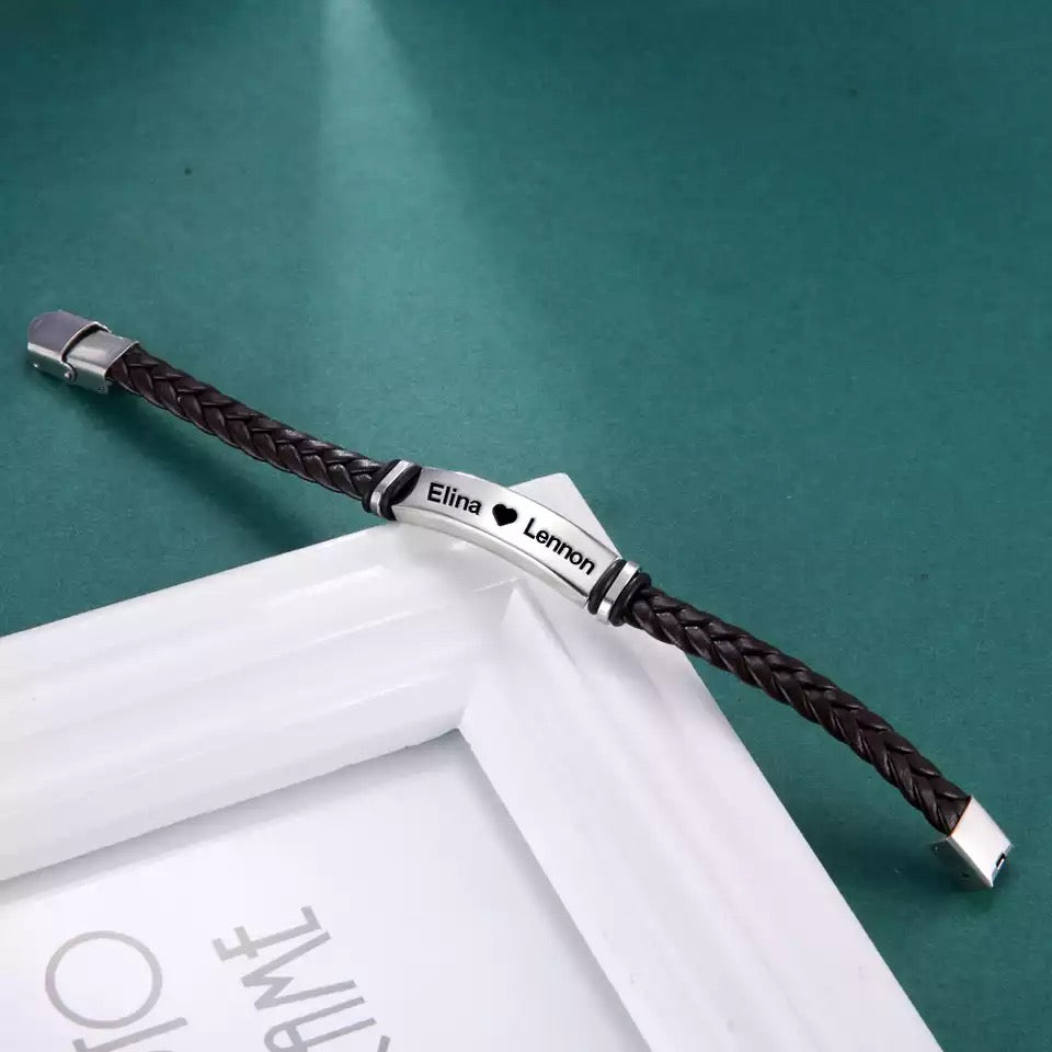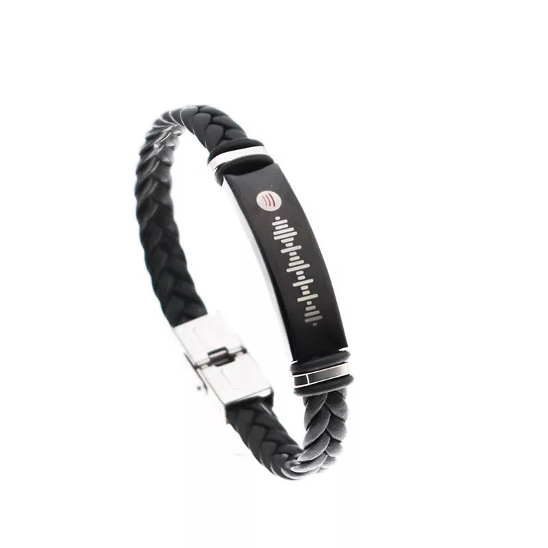 BRAZALETE LEATHER TRENZADO PLACA DE ACERO LAMINADO