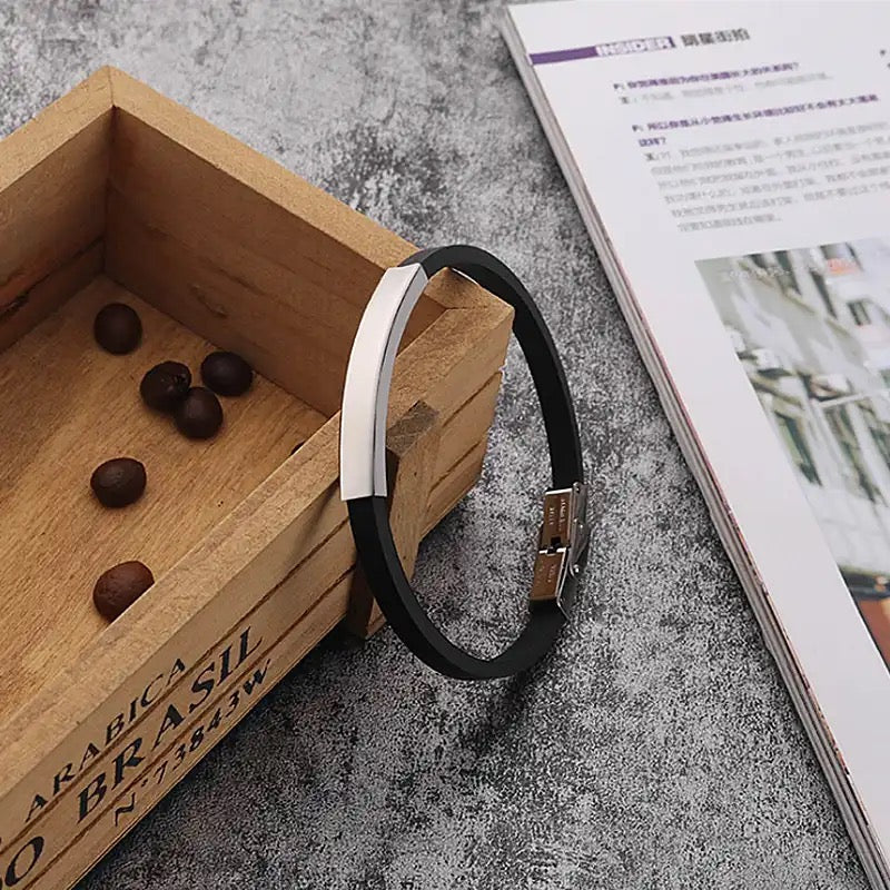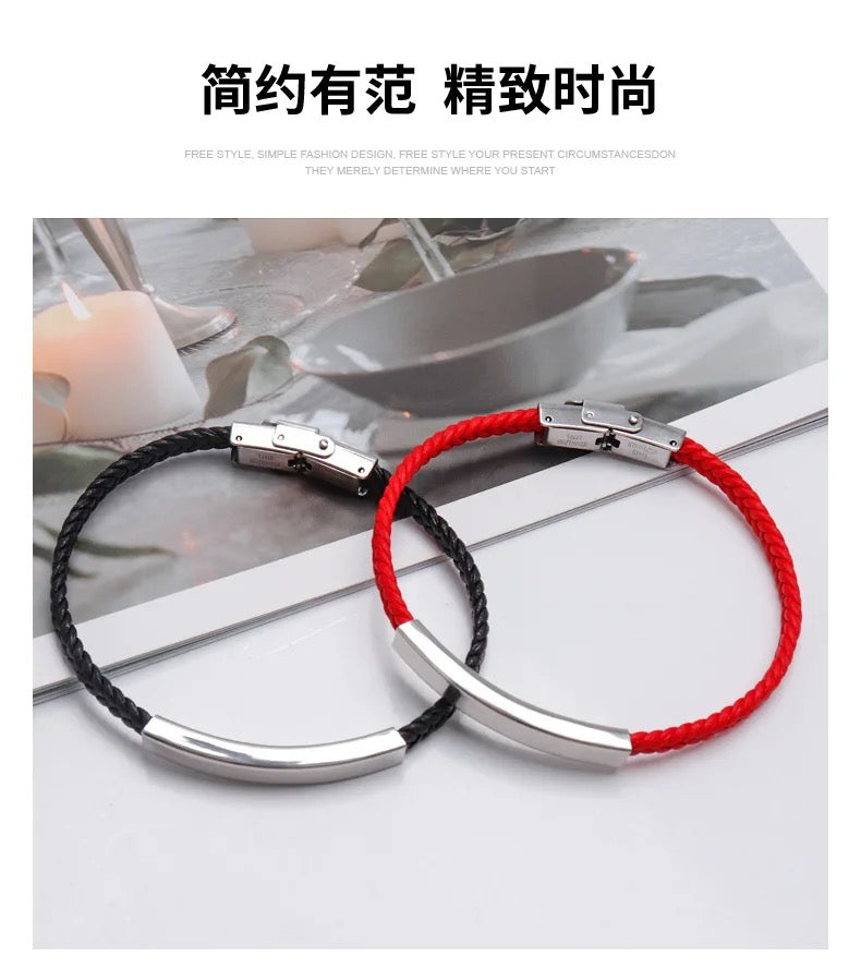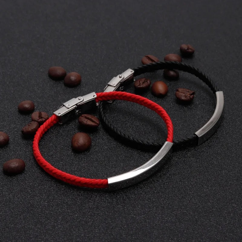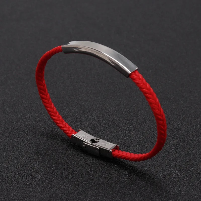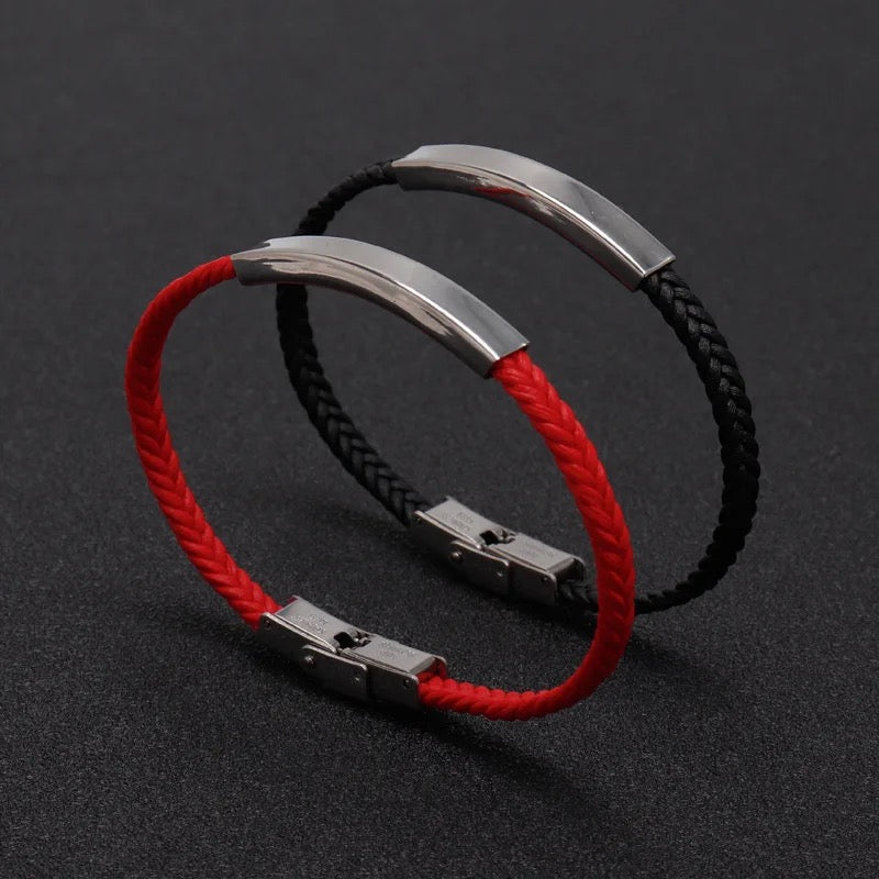 BRAZALETE FINO LEATHER TRENZADO PLACA MINIMALISTA DE ACERO LAMINADO PERSONALIZABLE