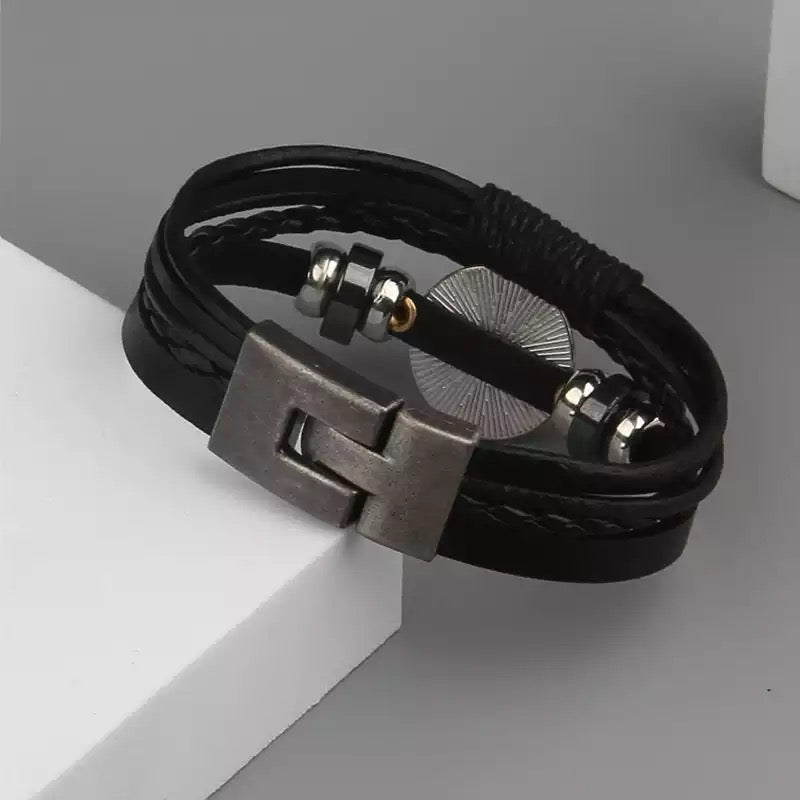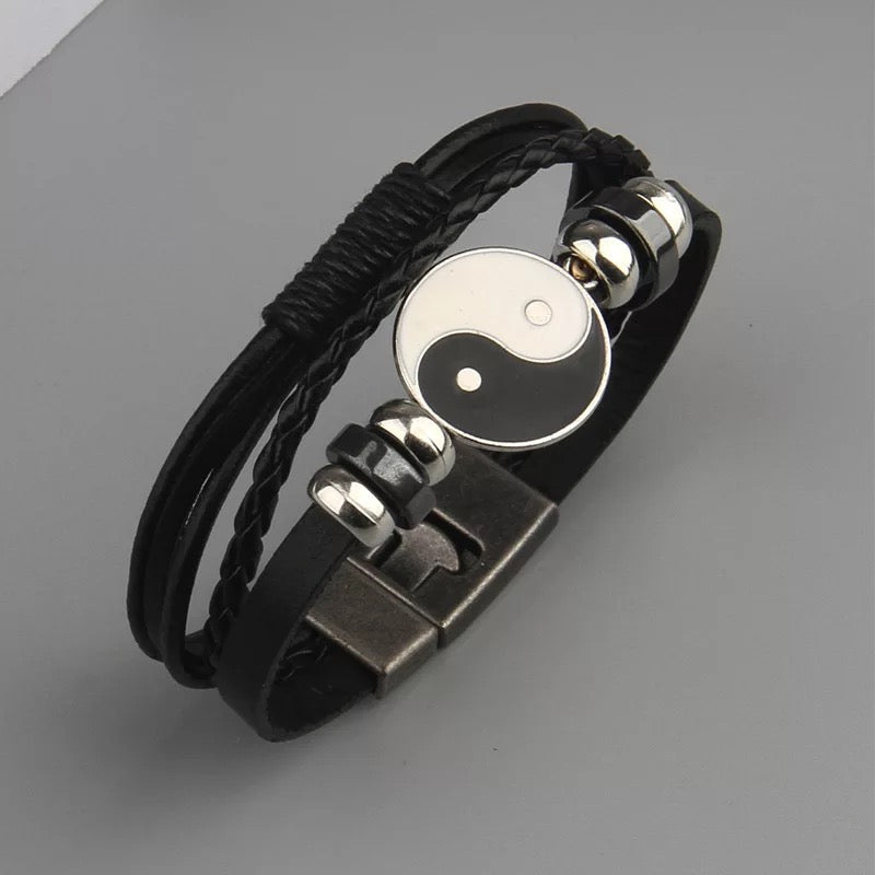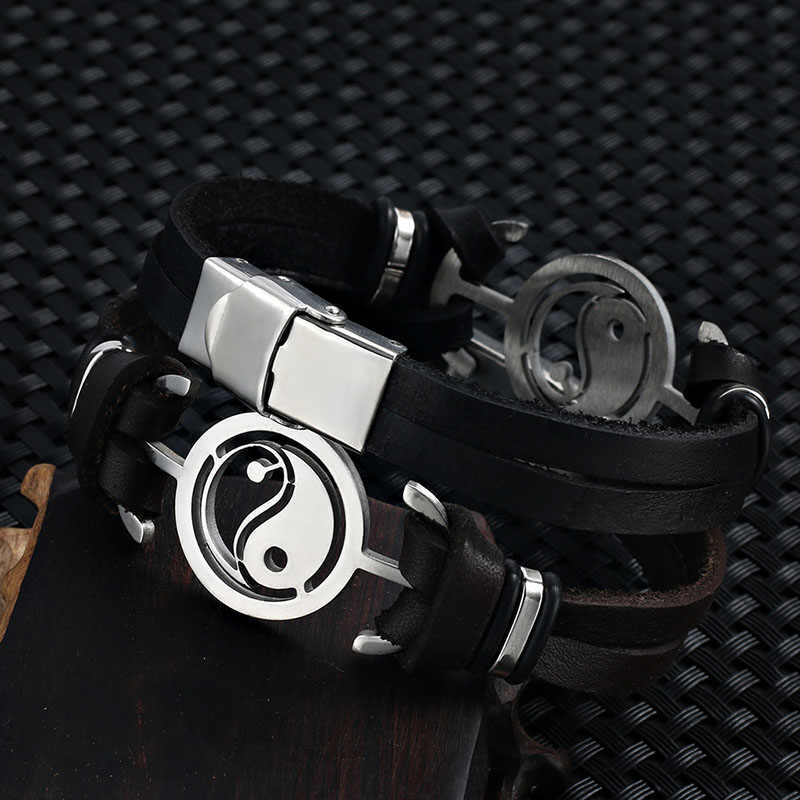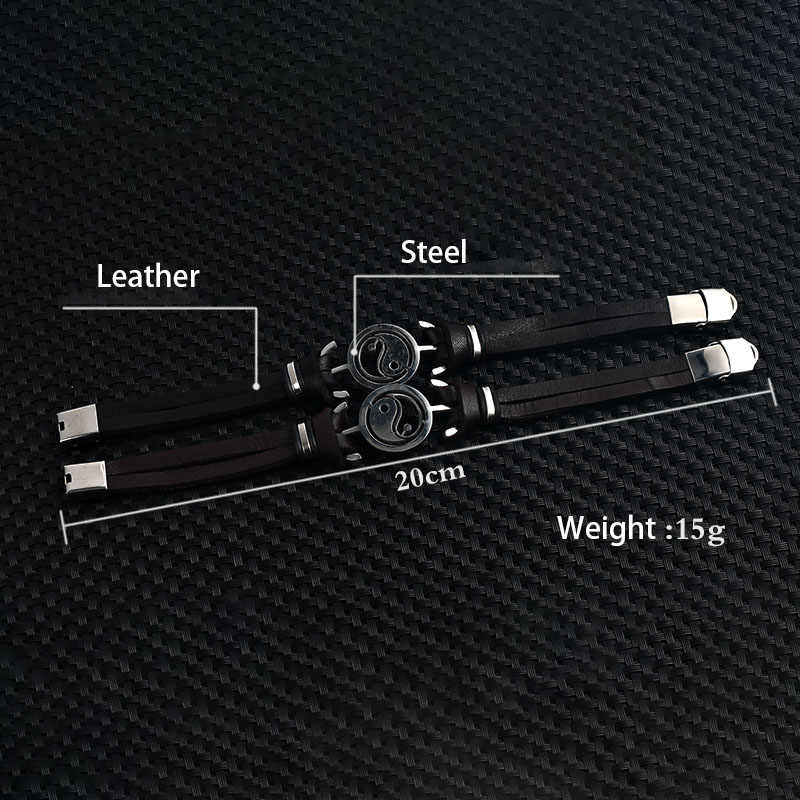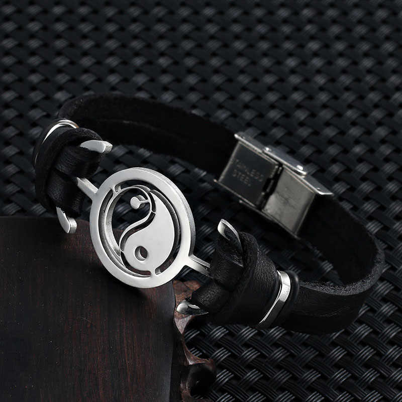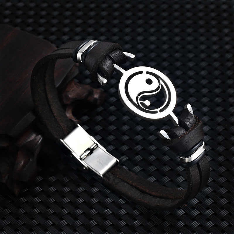 BRAZALETE YIN YANG ACERO INOXIDABLE Y CUERO