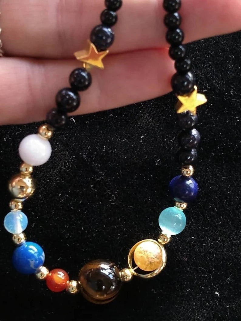 Descripción: Cada piedra representa los planetas de nuestro sistema solar que se alinean a tu alrededor como el sol, lo que resulta en energía vital positiva.