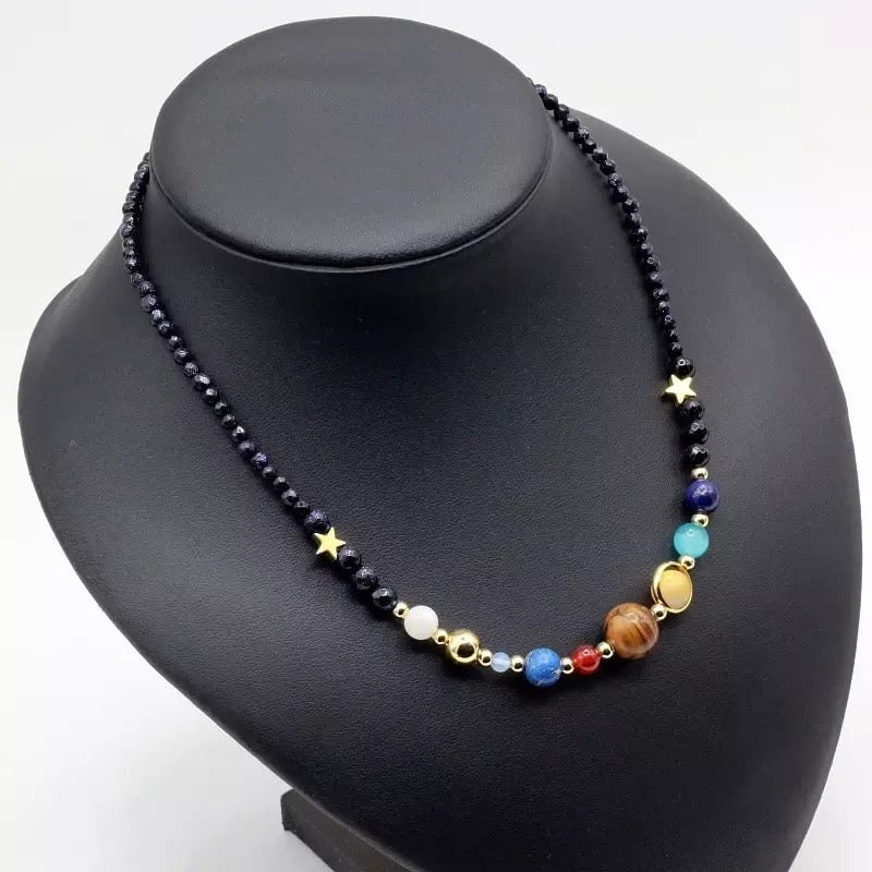 Color: Este Collar está hecha a mano de piedras naturales, que contiene ocho diferentes colores de las piedras, correspondientes a los ocho planetas en el sistema solar.