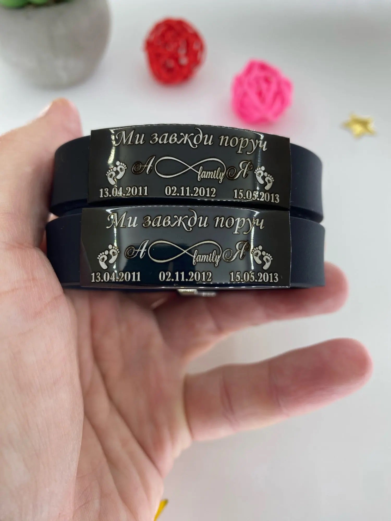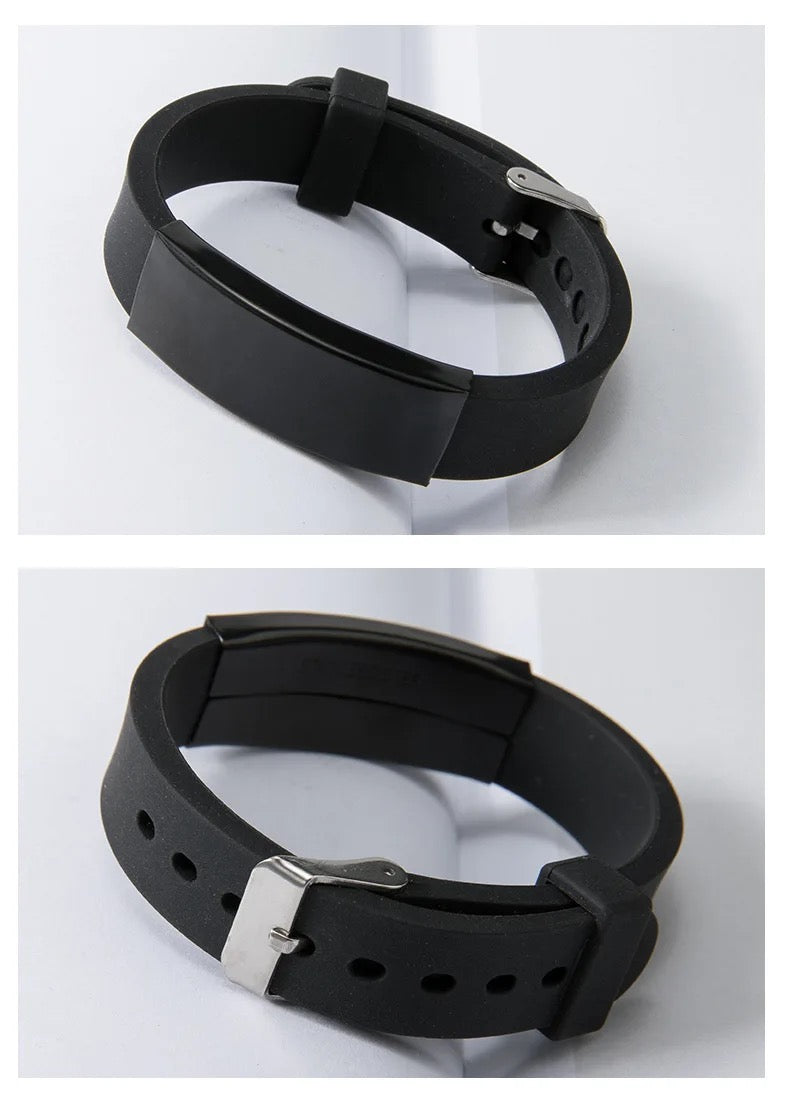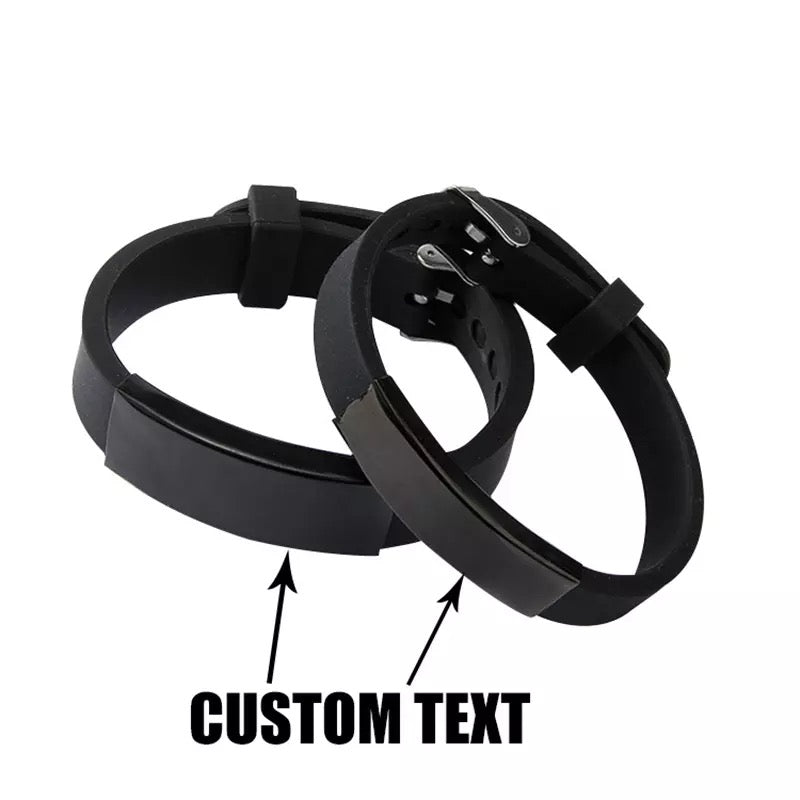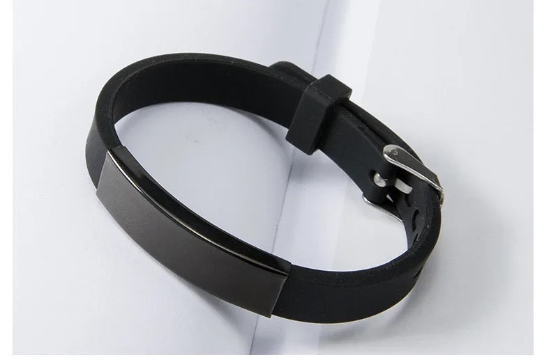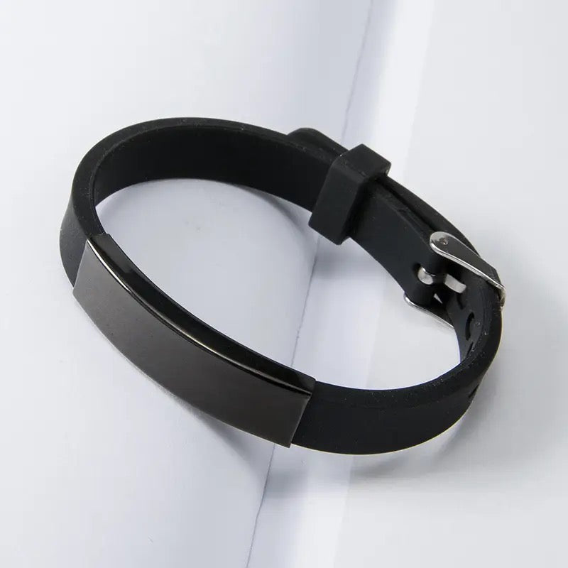 BRAZALETE SLICONA LISO PLACA DE ACERO LAMINADO NEGRO MATTE PERSONALIZADO