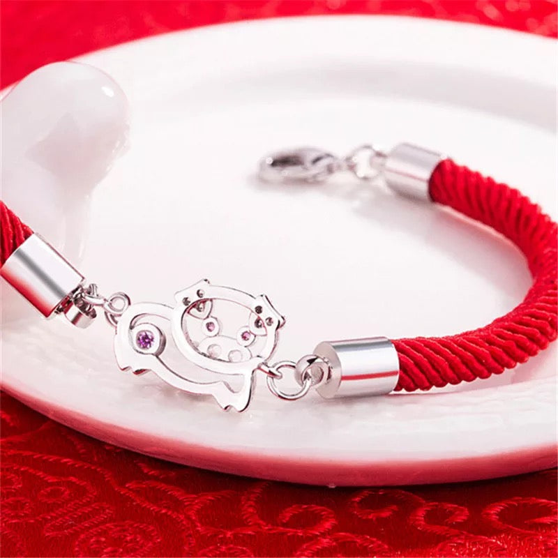 BRAZALETE CERDITO DE LA SUERTE TEJIDO