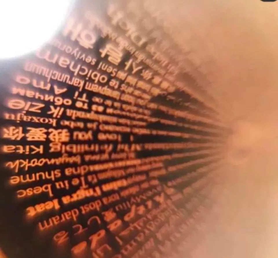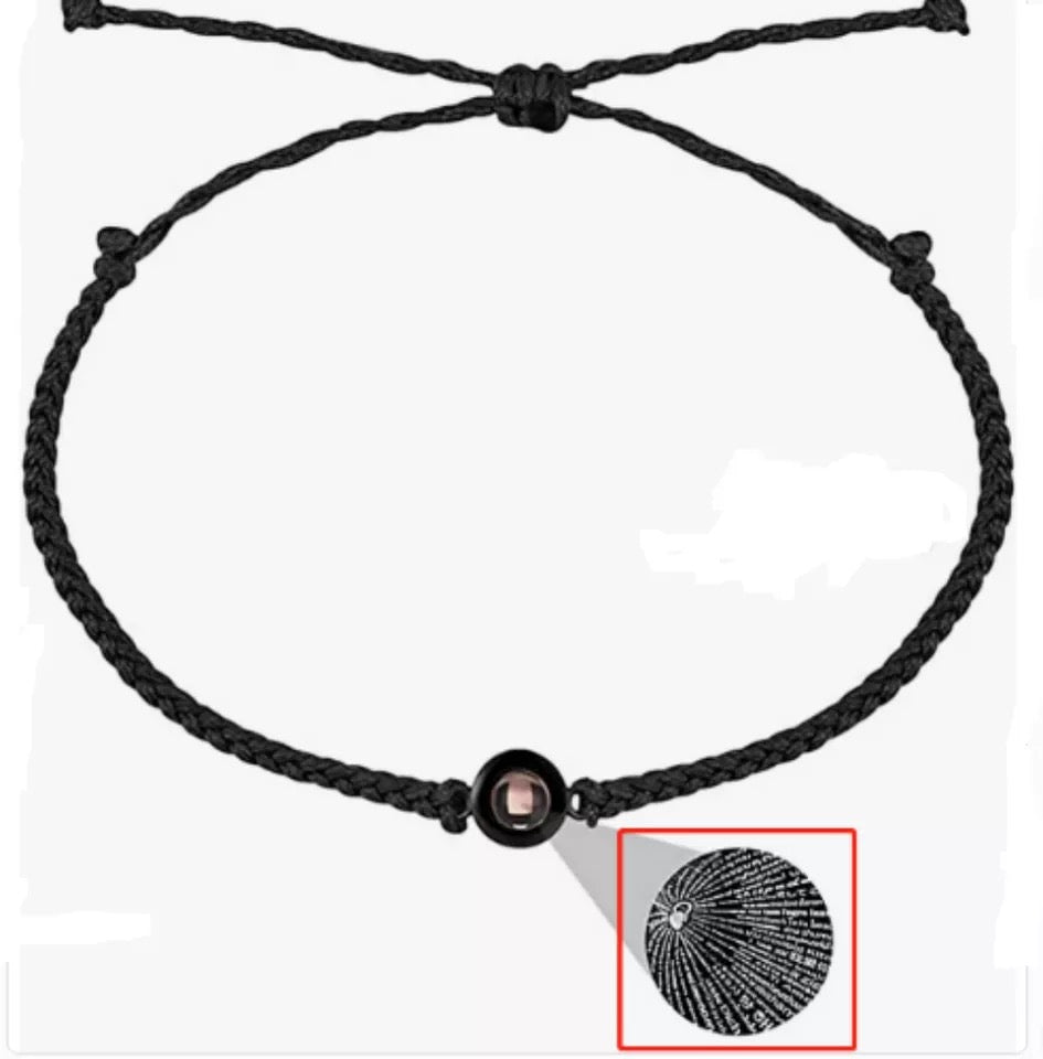 Descripción: Brazalete que proyecta la palabra «Te Amo» en 100 idiomas grabados a través de nano microcarving.