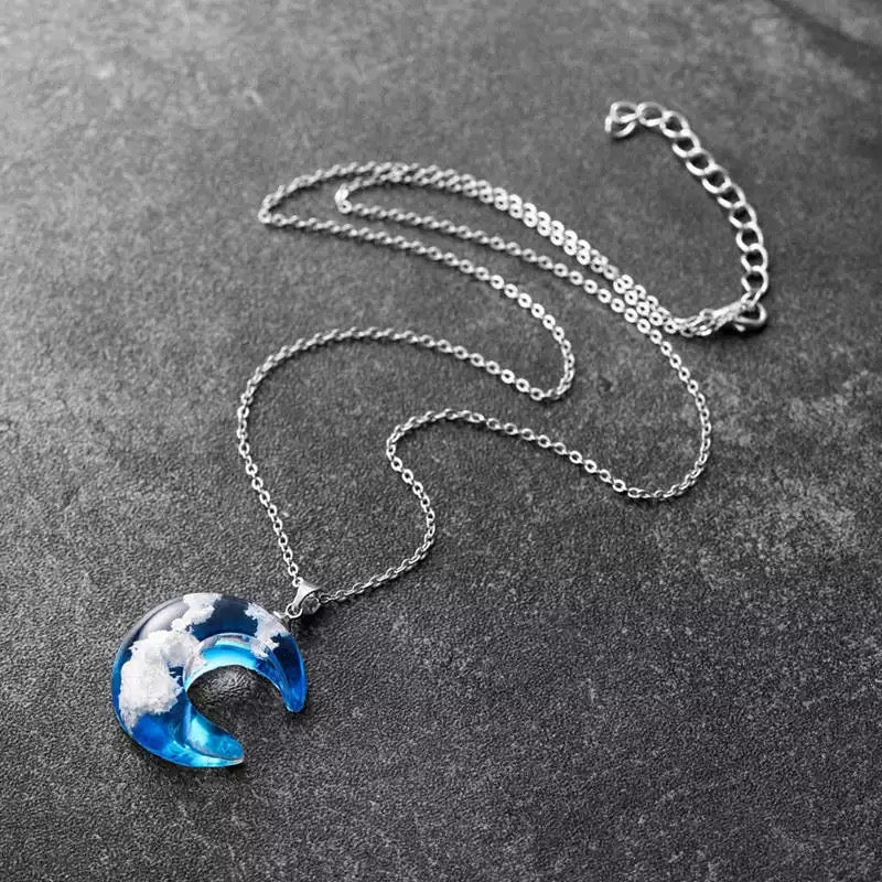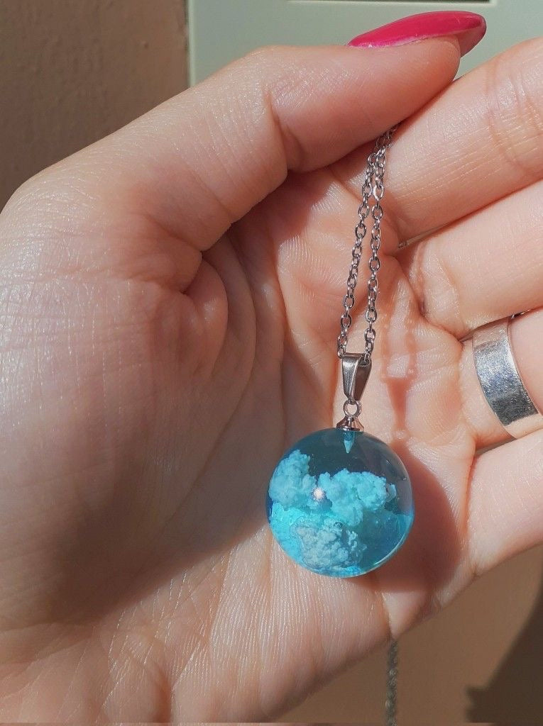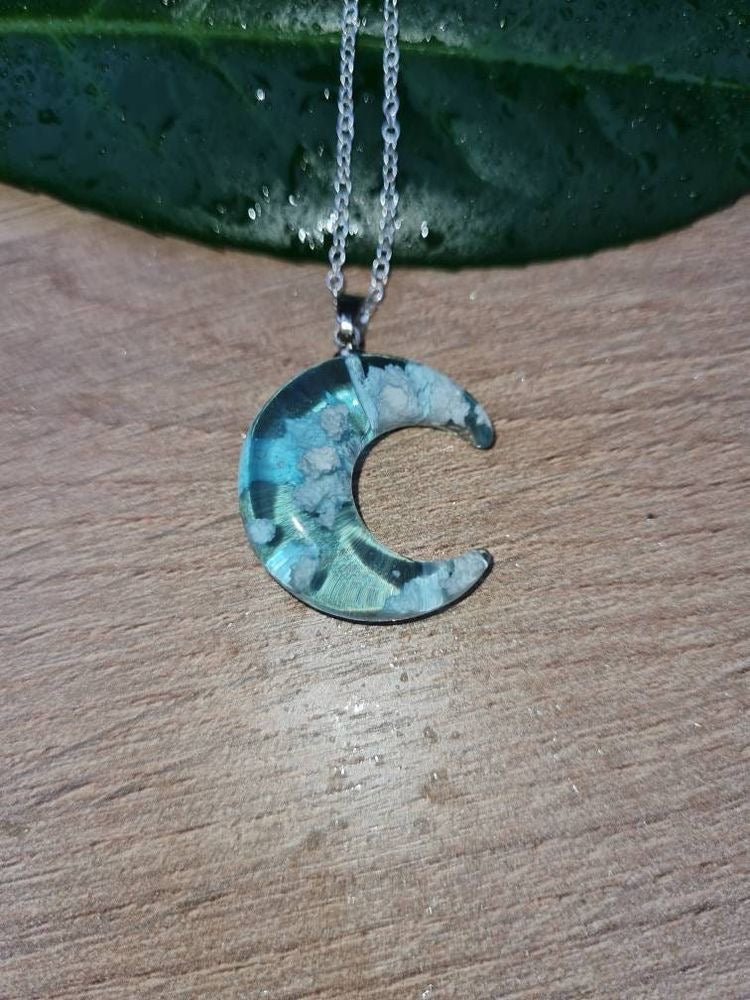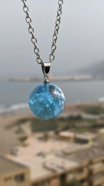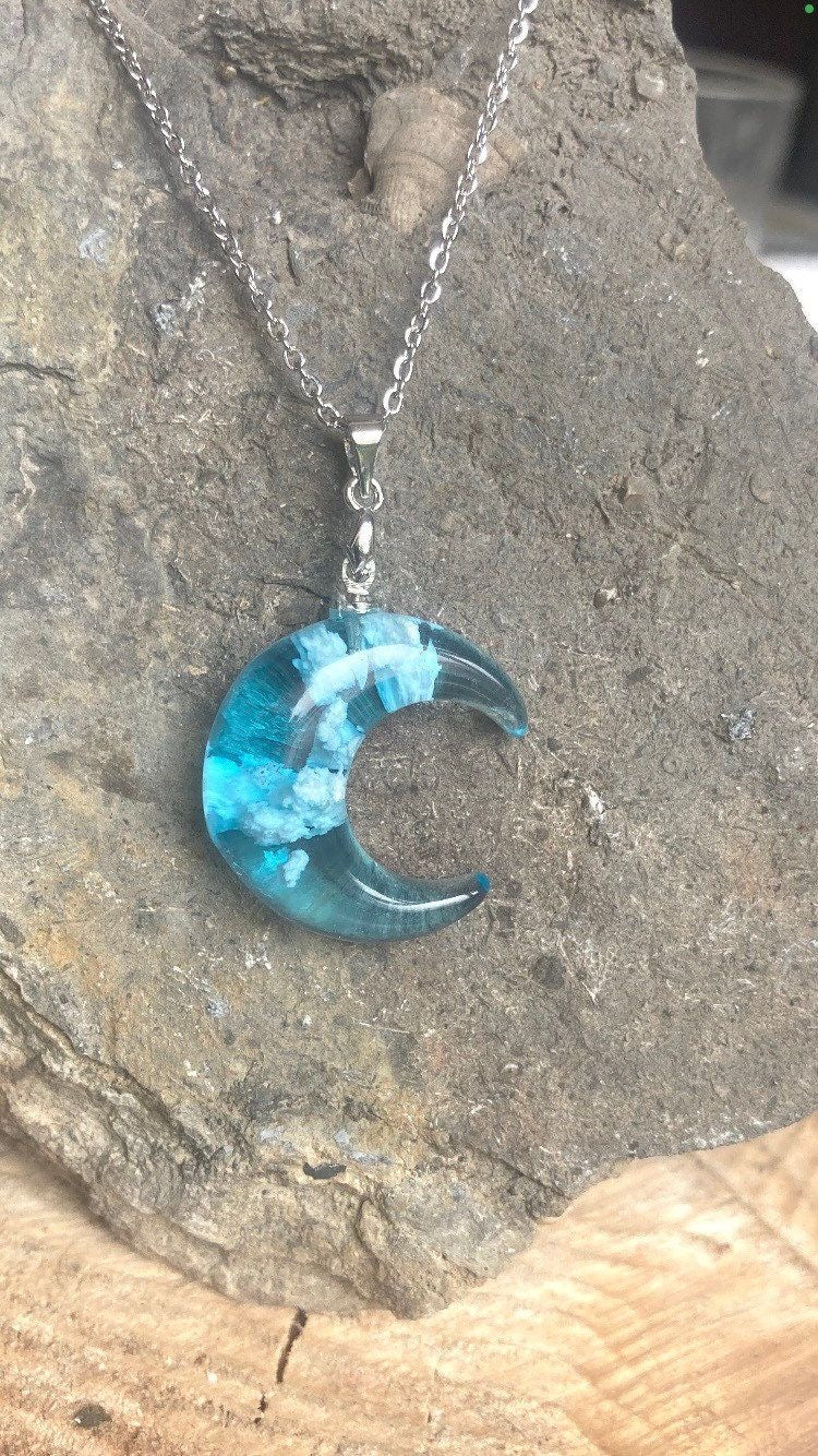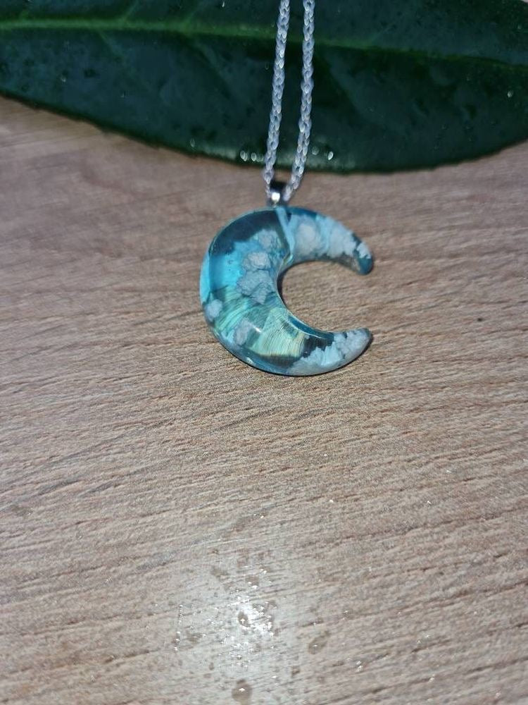 Descripción: Collar de luna con nubes en su interior (efecto 3D). Elaborado en resina de alta calidad