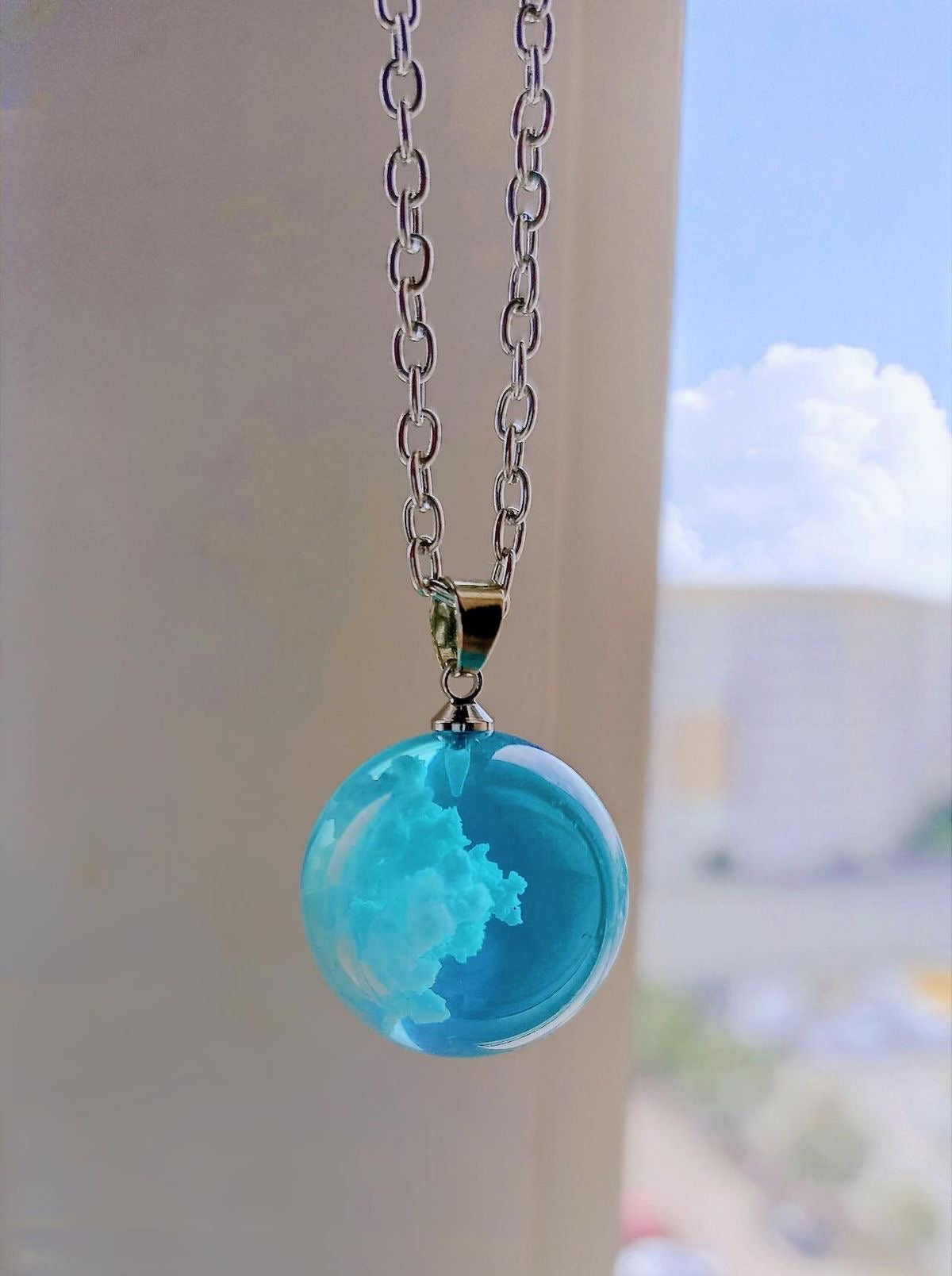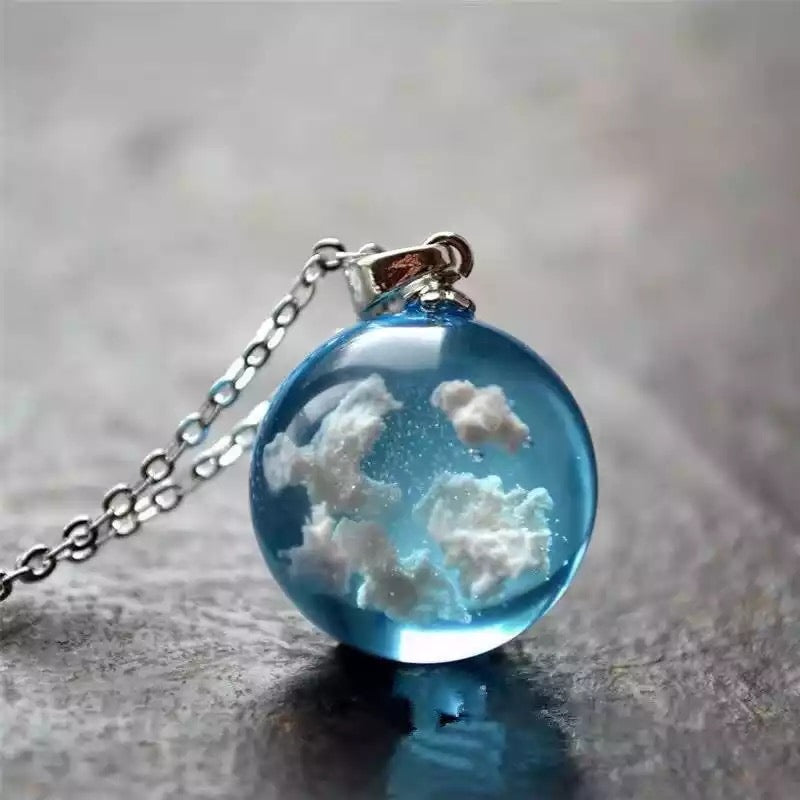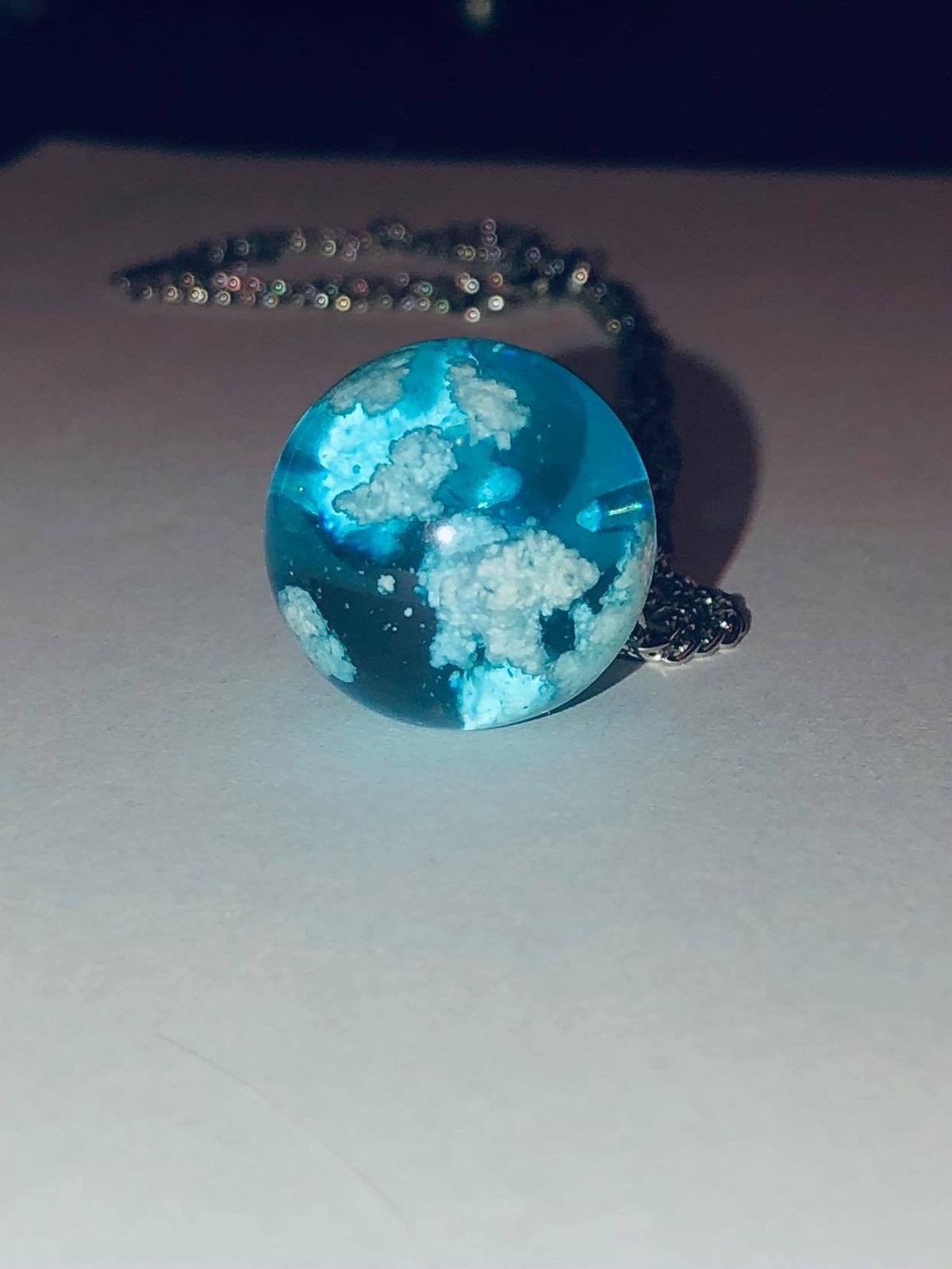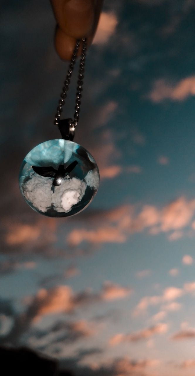 Descripción: Collar de luna con nubes en su interior (efecto 3D). Elaborado en resina de alta calidad