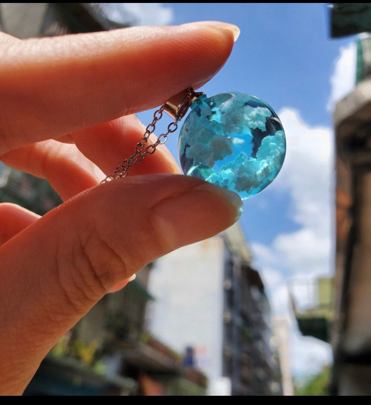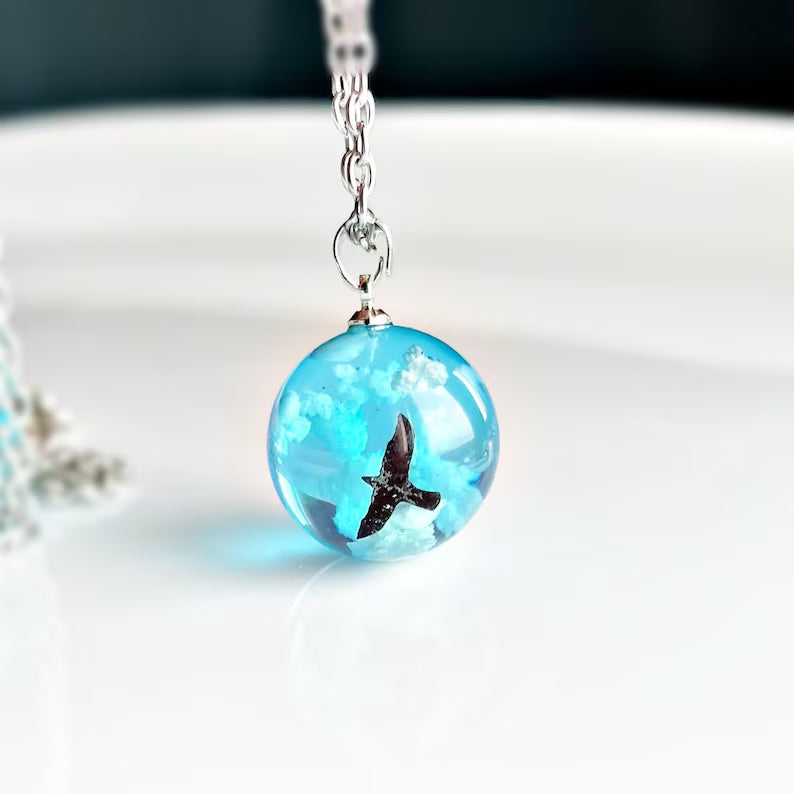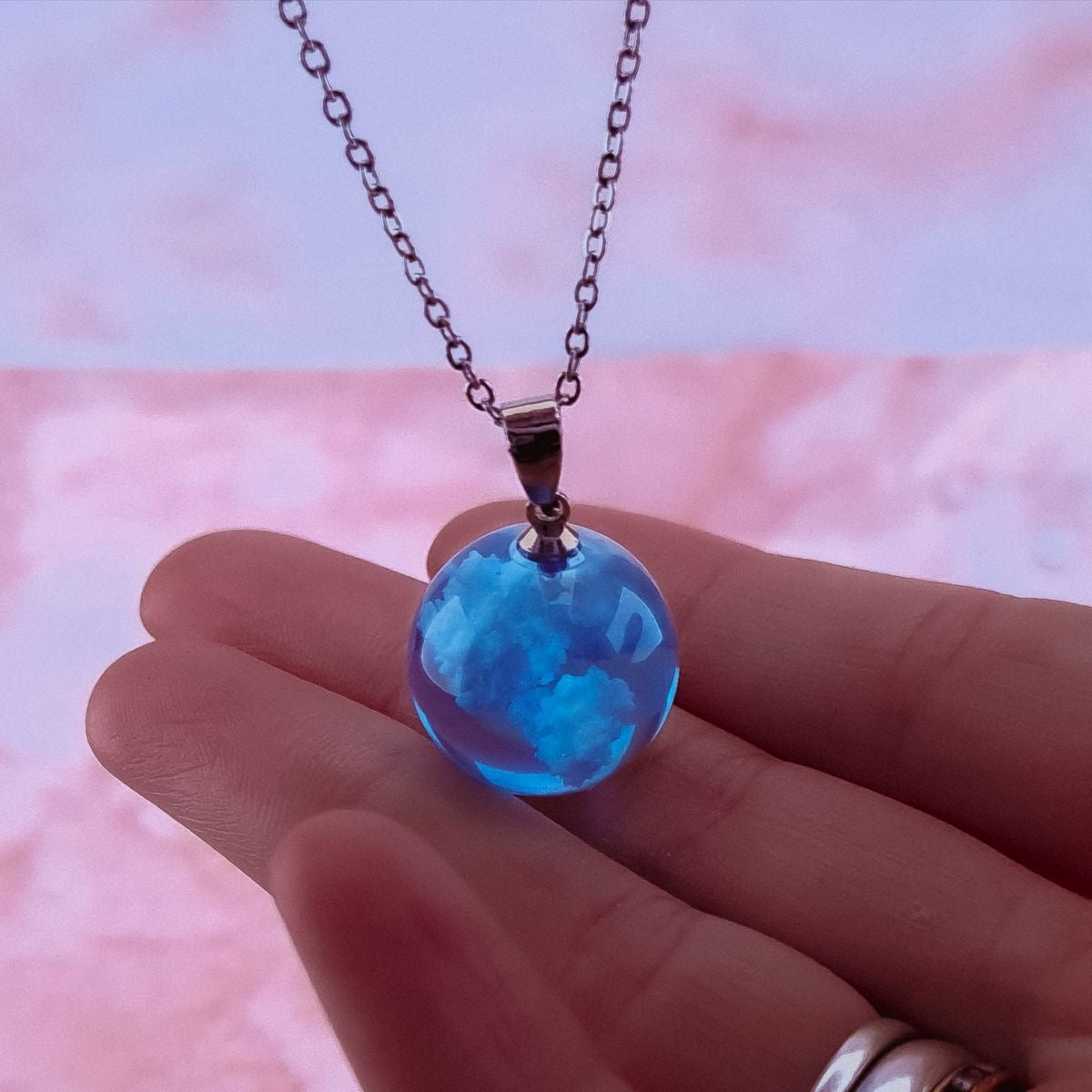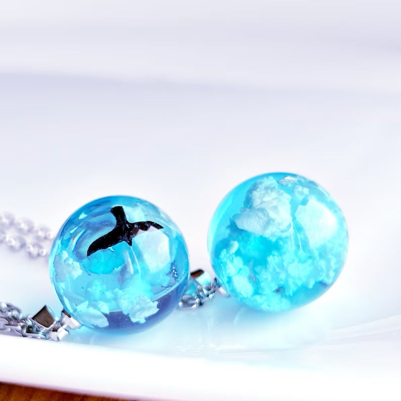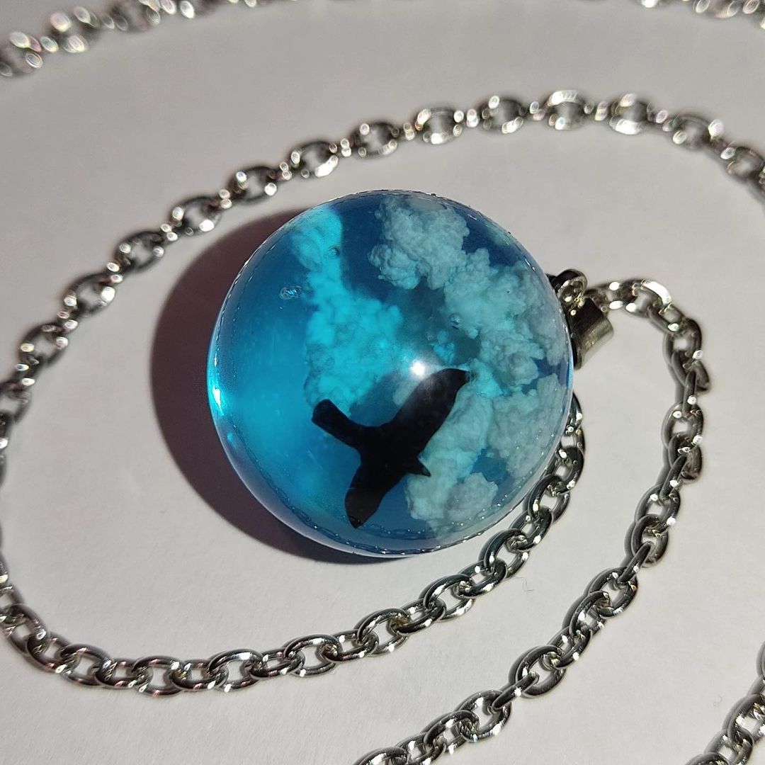 Descripción: Collar de luna con nubes en su interior (efecto 3D). Elaborado en resina de alta calidad