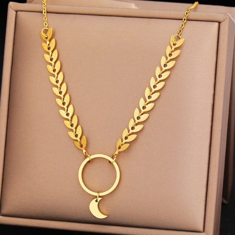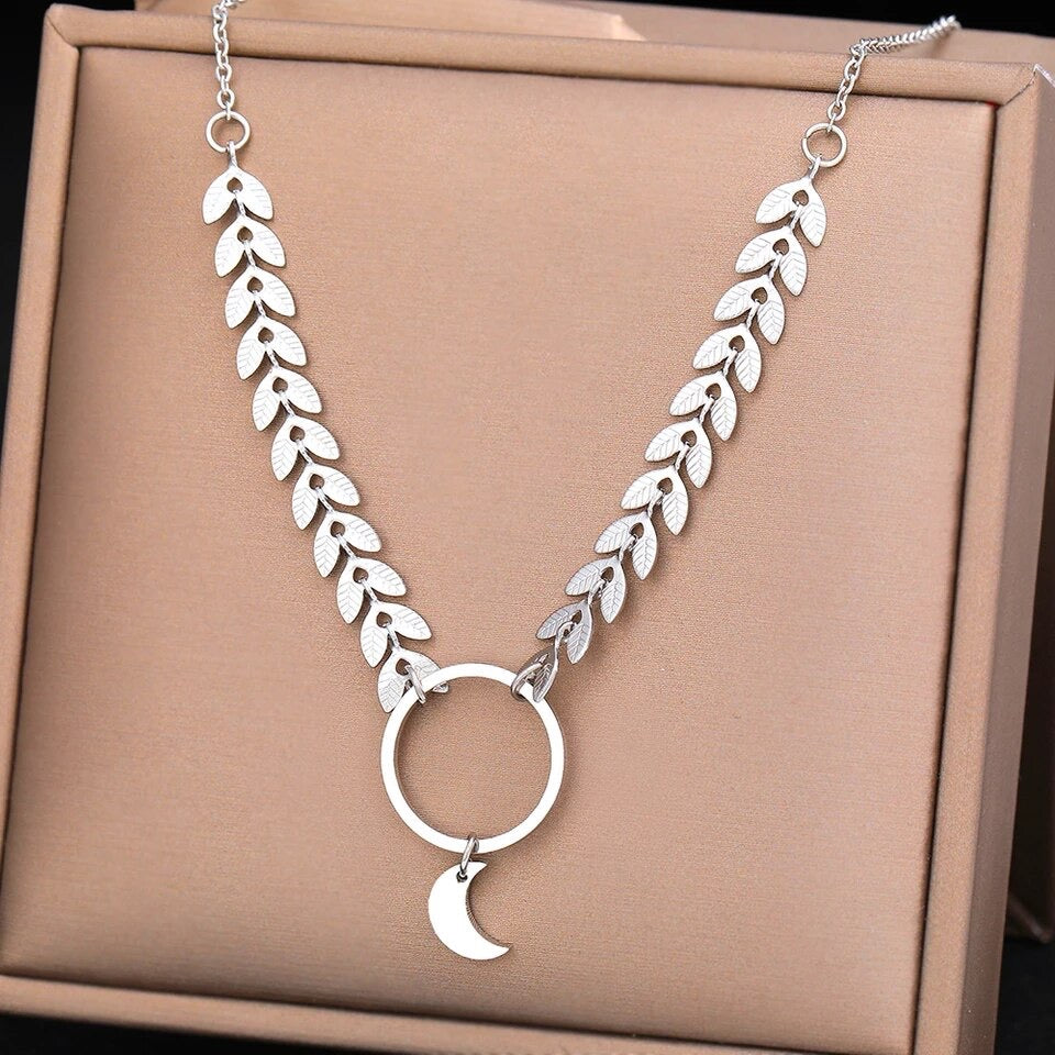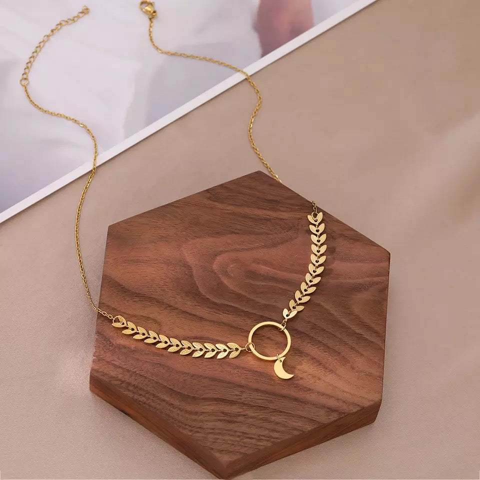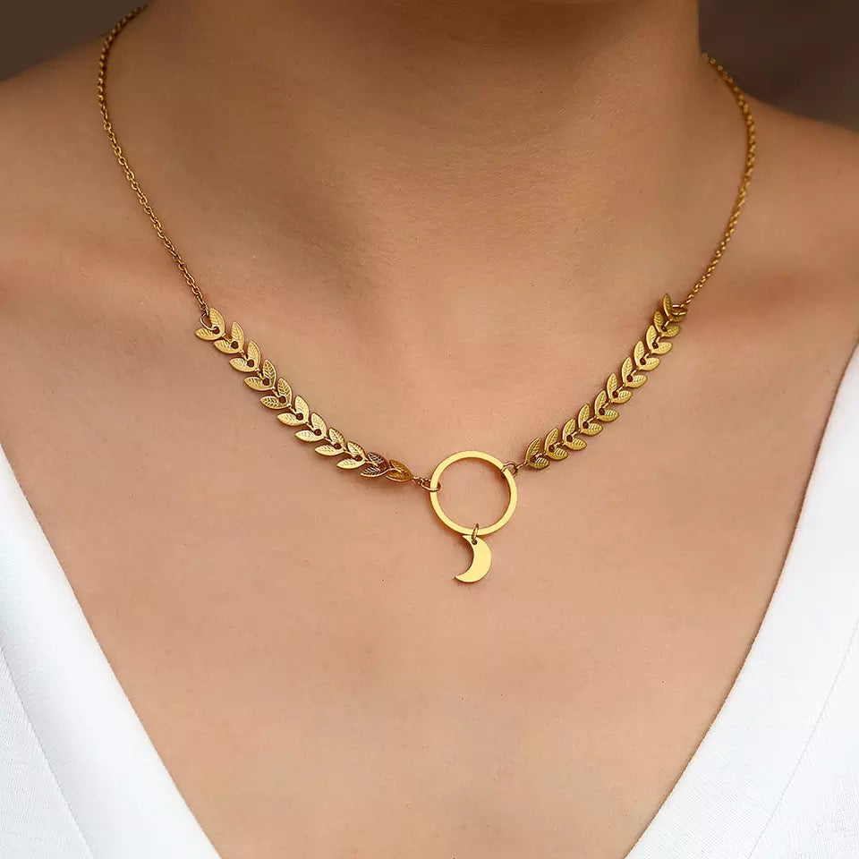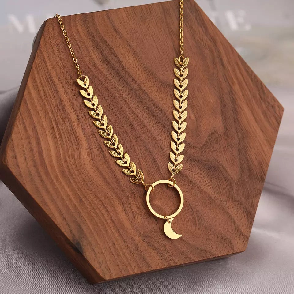 COLLAR HOJAS LUNAR MINIMALISTA DISEÑO ELEGANTE