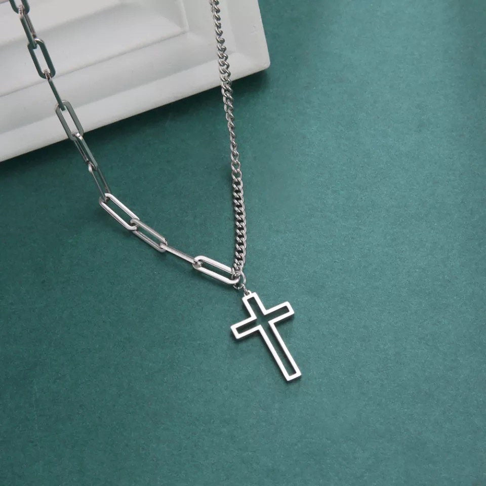 COLLAR PUNK CADENA DIJE DE CRUZ DOS ESTILOS