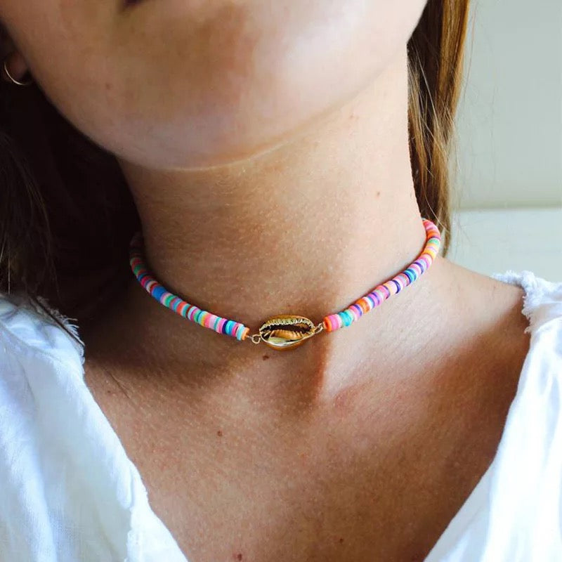 COLLAR CHOKER GARGANTILLA CONCHAS DE MAR COLORIDO