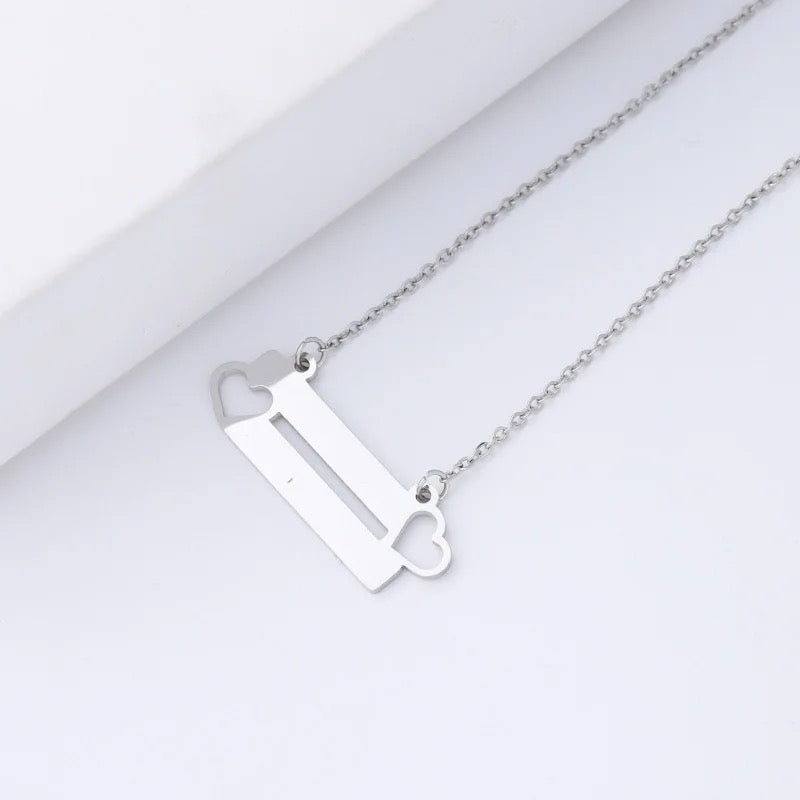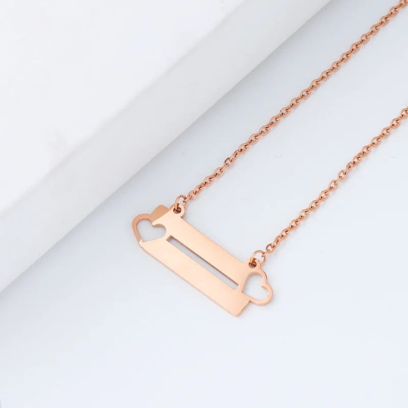 Presentamos la opción en collar personalizado en forma de Gilette , con corazones .