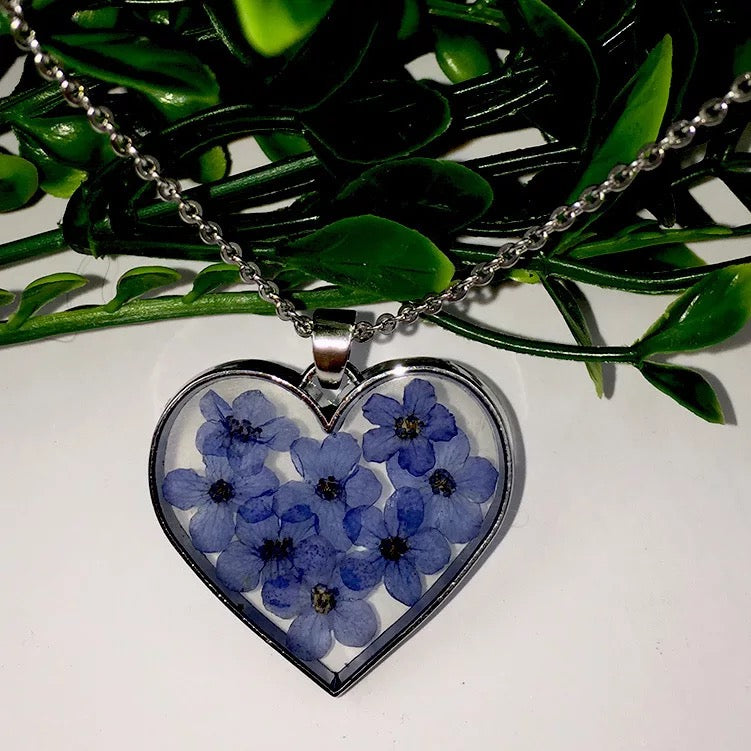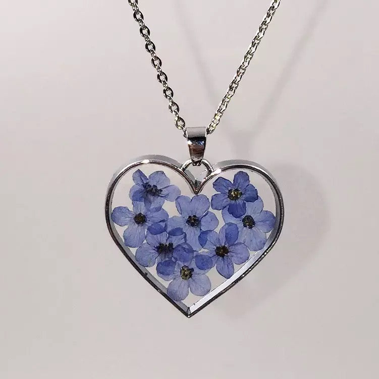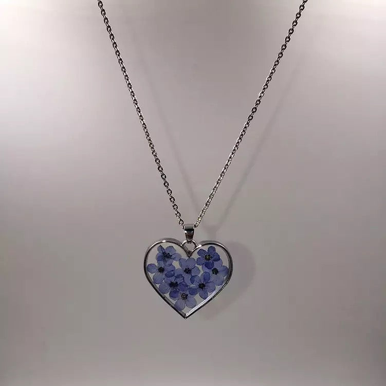 COLLAR CRISTAL CORAZÓN FLORES SECAS GRANDE