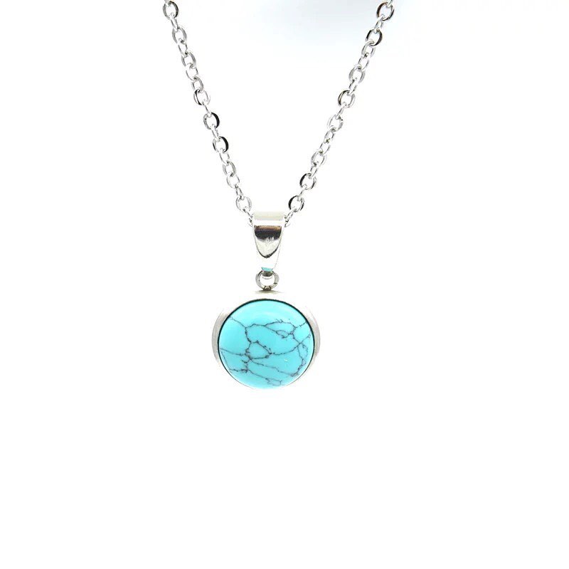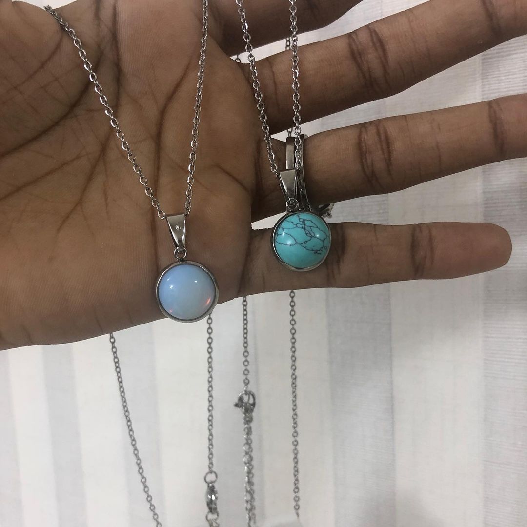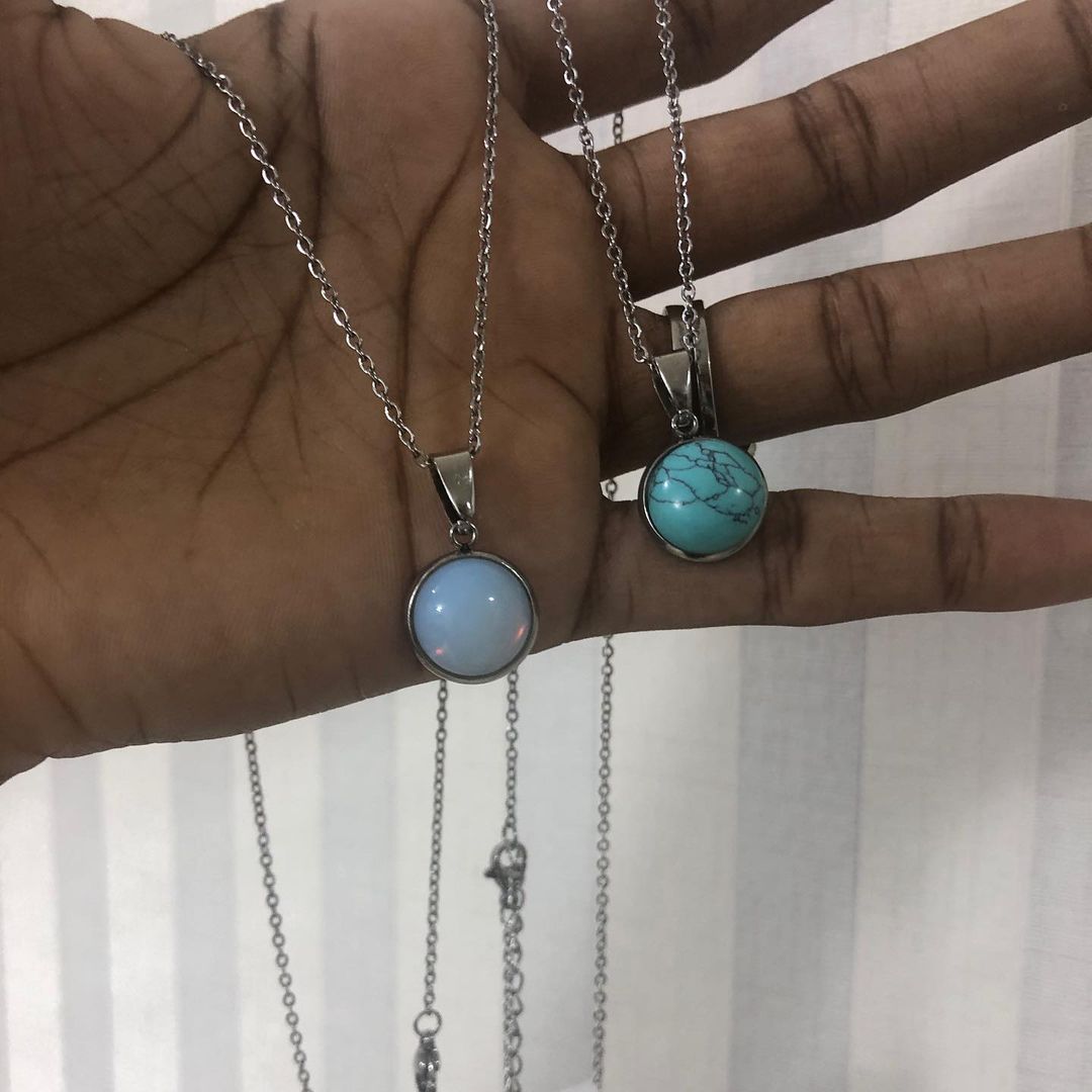 Hermoso dije de cuarzo en forma de Opal ideales para obsequiar a una persona especial. Una fascinante y exquisita piedra turquesa redonda rodeada, elaborada a base de cuarzo ópalo.