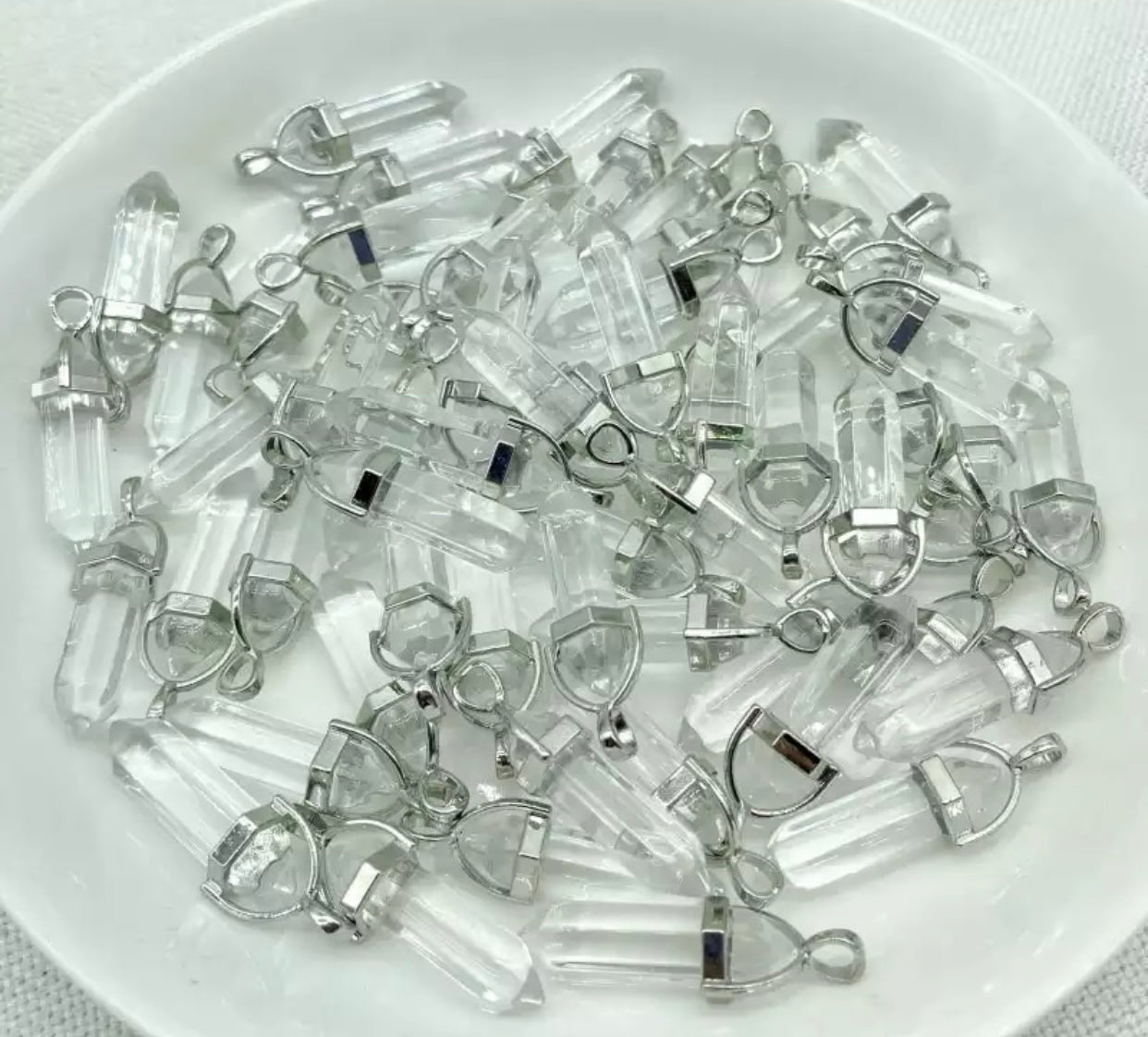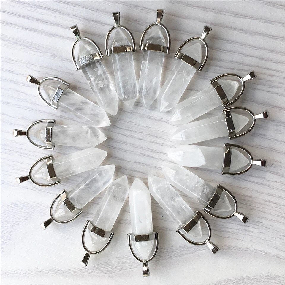 Hermoso dije de cuarzo en forma de hexagonal, ideales para obsequiar a una persona especial. El cuarzo es utilizado para alejar aspectos negativos de la vida , posee asombrosas propiedades curativas, de relajación y de limpieza profunda del organismo. Este cuarzo es ideal para la eliminación del mal augurio, pensamientos negativos, tensión o problemas generales.
