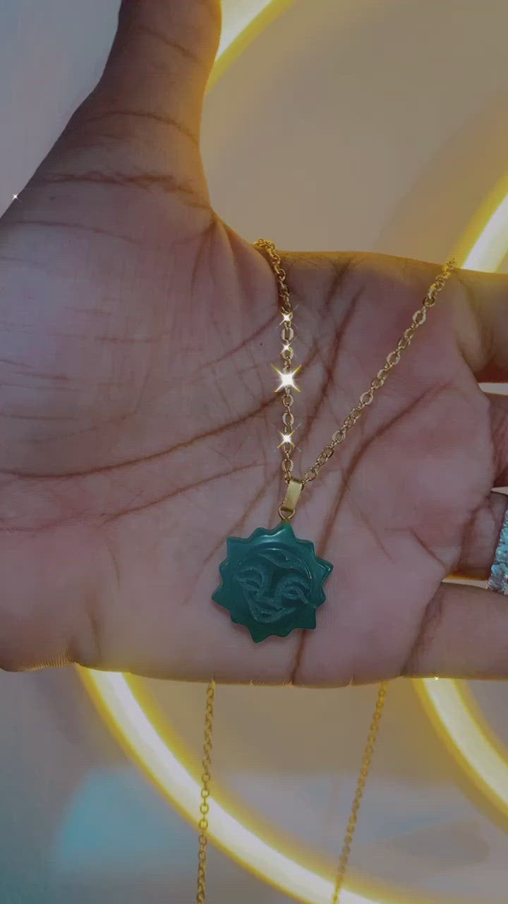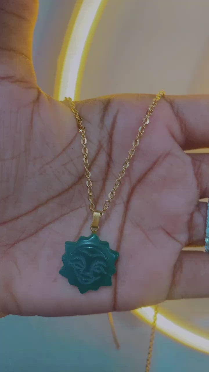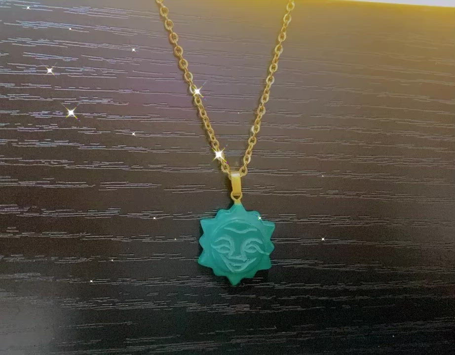 Hermoso dije de Opalo verde en forma de Sol ideales para obsequiar a una persona especial. Una fascinante y exquisita piedra, elaborada a base de cuarzo ópalo.