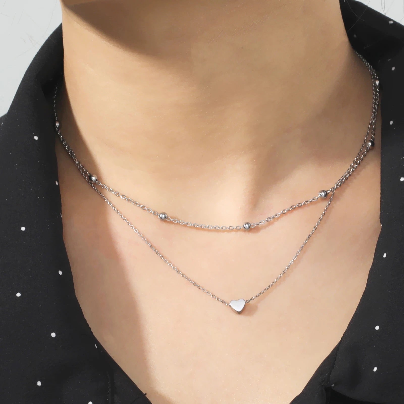 COLLAR CORAZÓN DOBLE CAPA MINIMALISTA