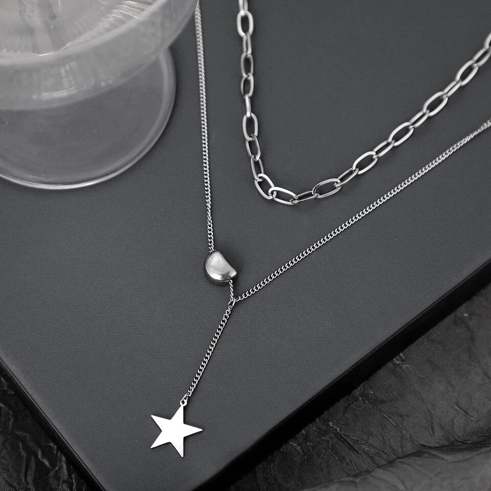 COLLAR DOBLE DOS ESTILOS ESTRELLA MINIMALISTA MULTICAPA