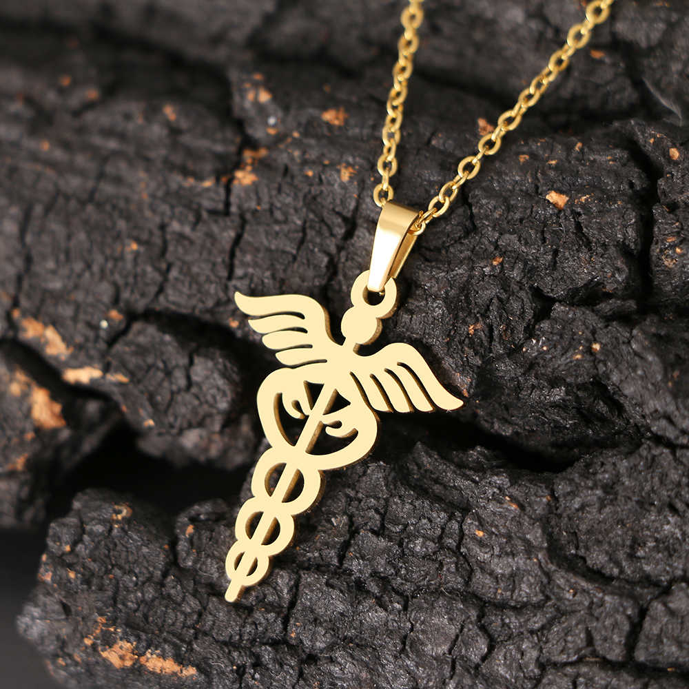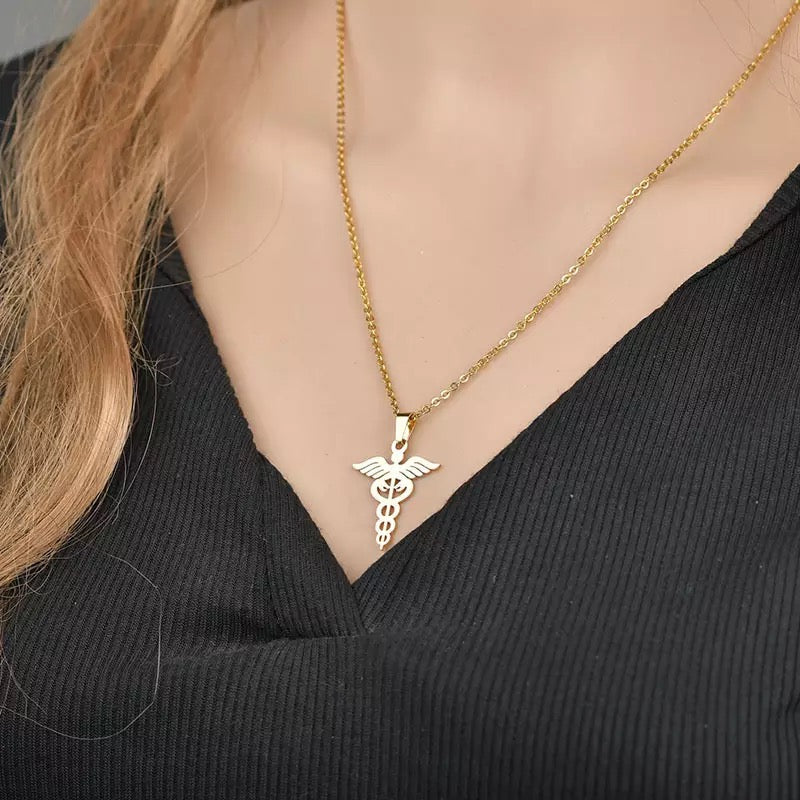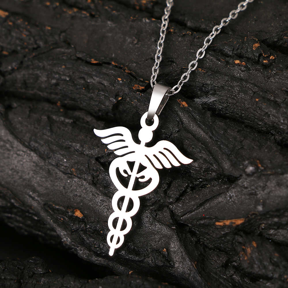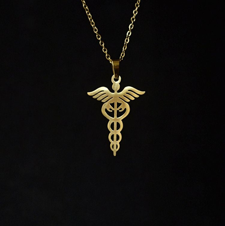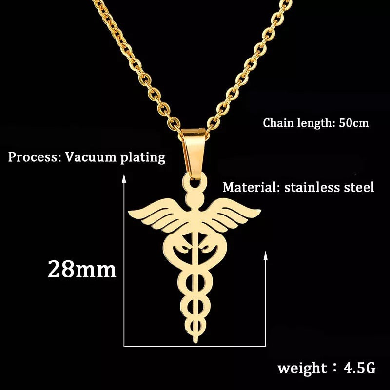 Descripción: Hermosa medalla colgante de acero inoxidable del Báculo de Asclepio o más conocido como «Símbolo Médico». Ideal para él y/o ella.