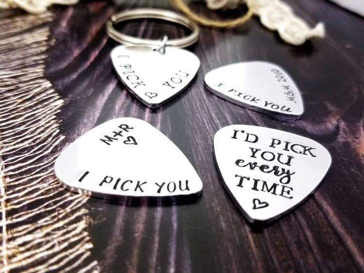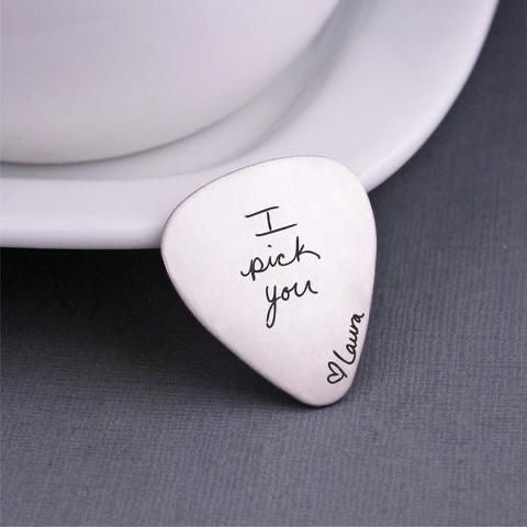 - Púas de guitarra personalizadas: puedes crear tus propias púas de guitarra personalizadas. Elige el texto que deseas que grabemos .