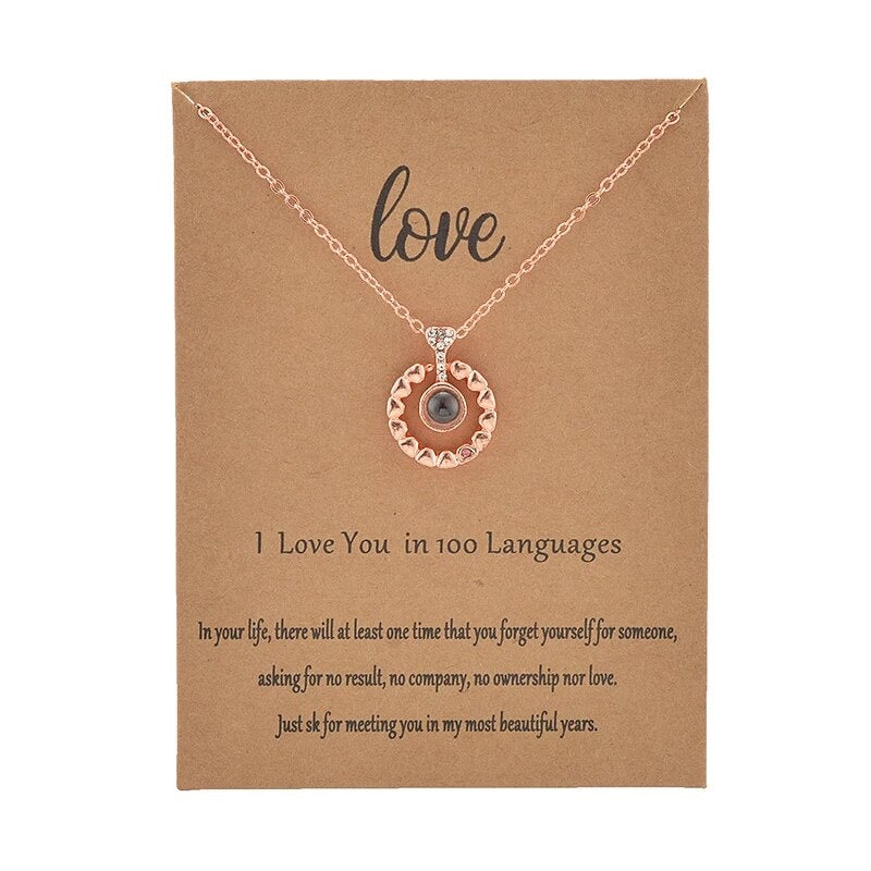 Si quieres demostrar cuanto la amas, con este regalo puedes expresarlo en muchos idiomas. ¡Usa la cámara de tu teléfono o la luz del flash y mira cómo el collar cobra vida!