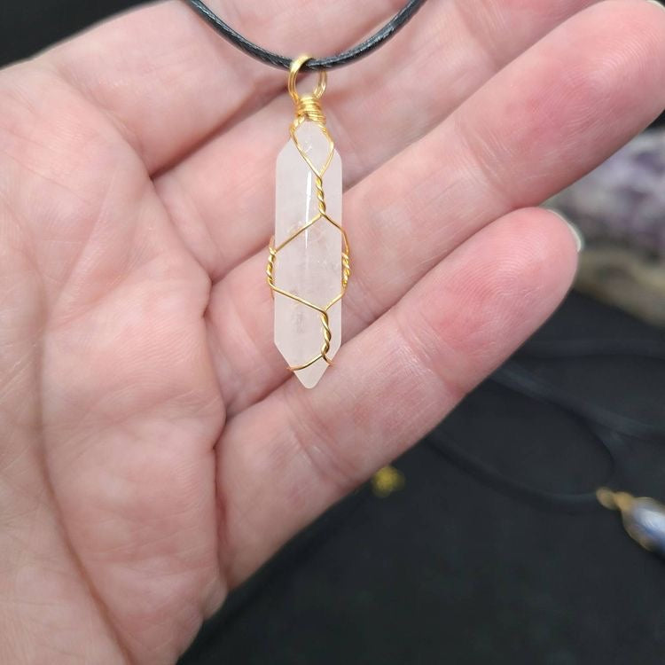 COLLARES CUARZO TRENZADO EN ALAMBRE RESINA