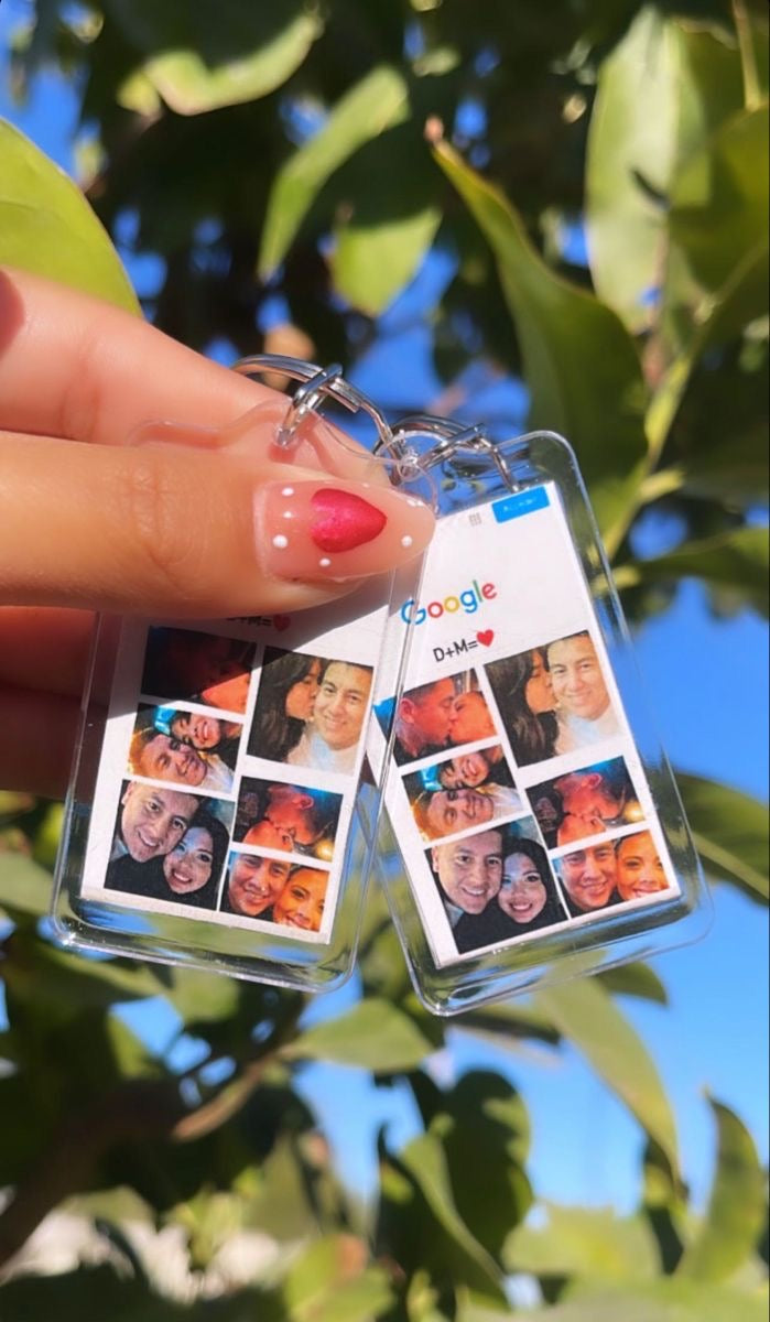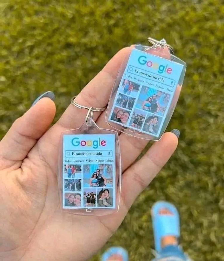 En este llavero puedes colocar una fotografía ,sola , con diseño Google o con diseño Spotify .