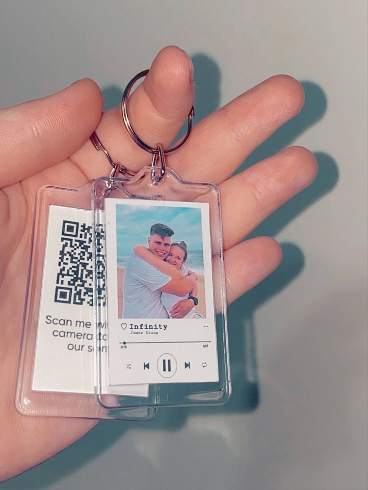 LLAVEROS CON FOTOS EN ACRÍLICO CANCIÓN DE SPOTIFY O BUSCADOR GOOGLE