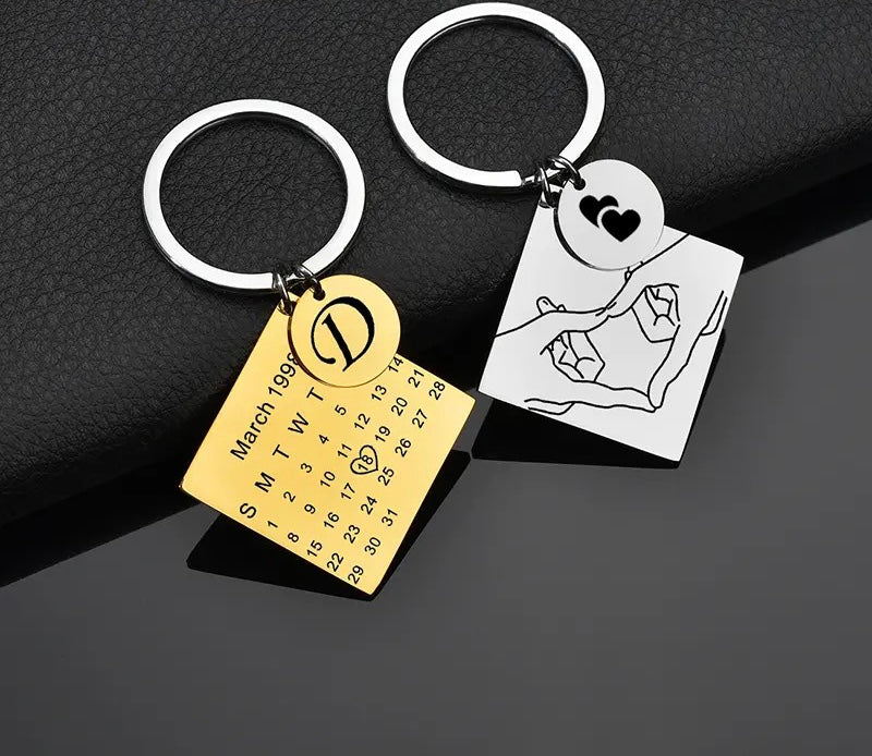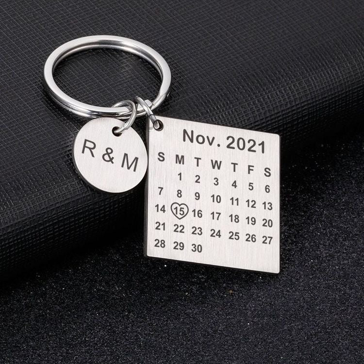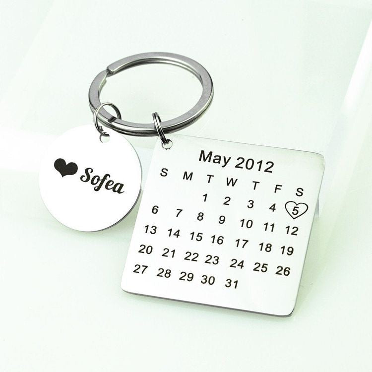 Hermoso llavero Con grabado calendario personalizado de mes especial.