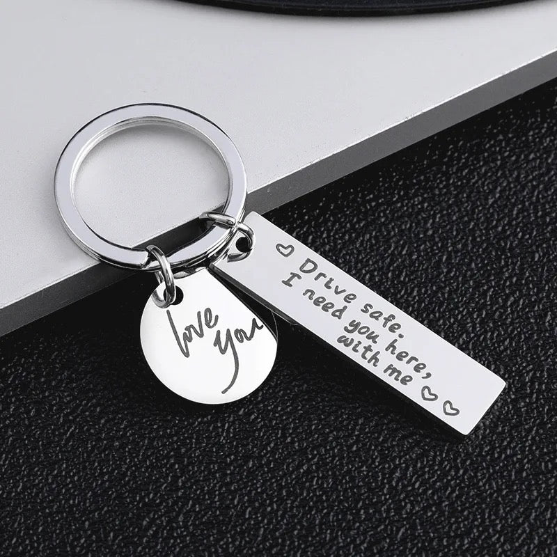 Descripción: Llaveros románticos, maneja con cuidado hermoso, te amo. & Maneja con cuidado, te necesito aquí conmigo., Te amo mas que las millas que nos separan.