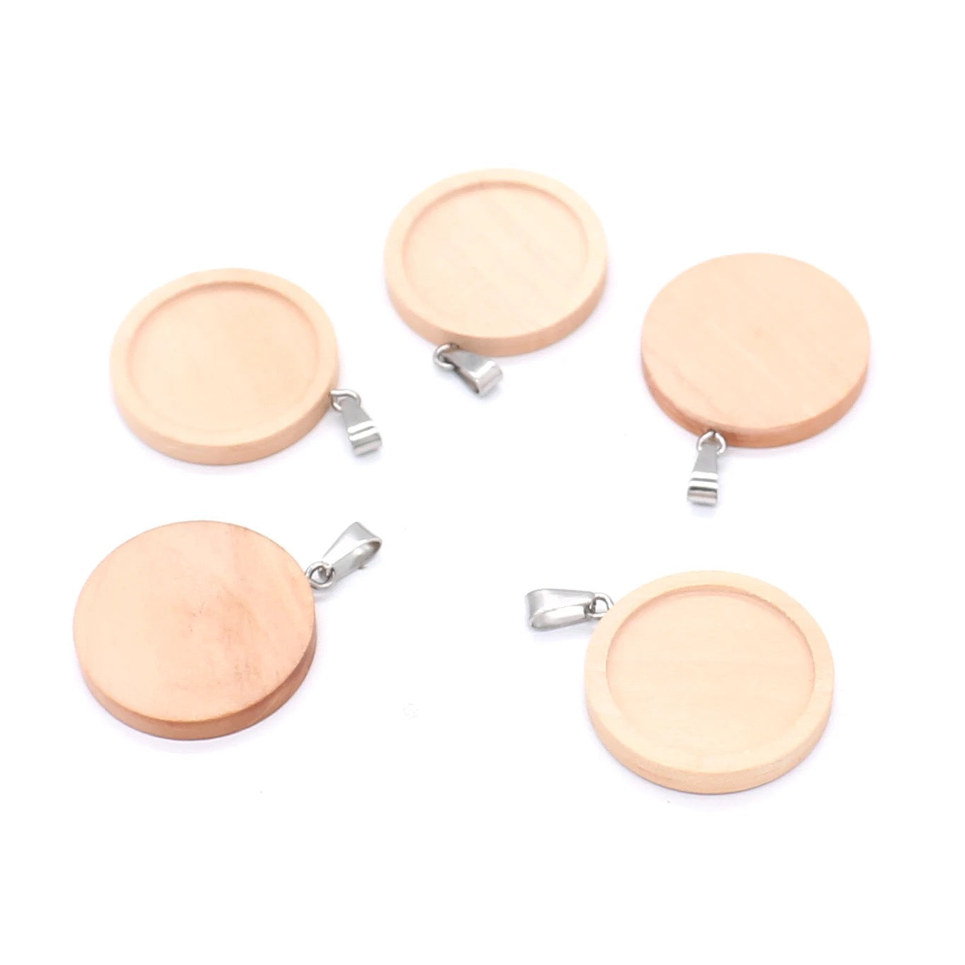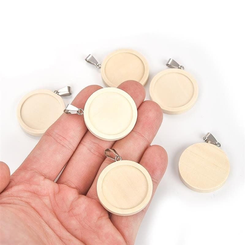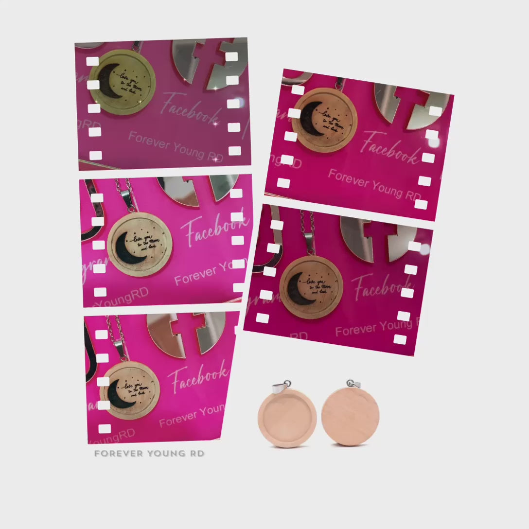 Nuestro collar se presenta en madera grabada a láser de medida 1.5 pulgadas.