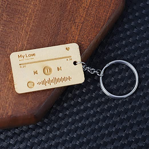 Presentamos la opción en llavero personalizado con diseño de pantalla de reproducción de Spotify para llevar siempre nuestra canción junto a nosotros.