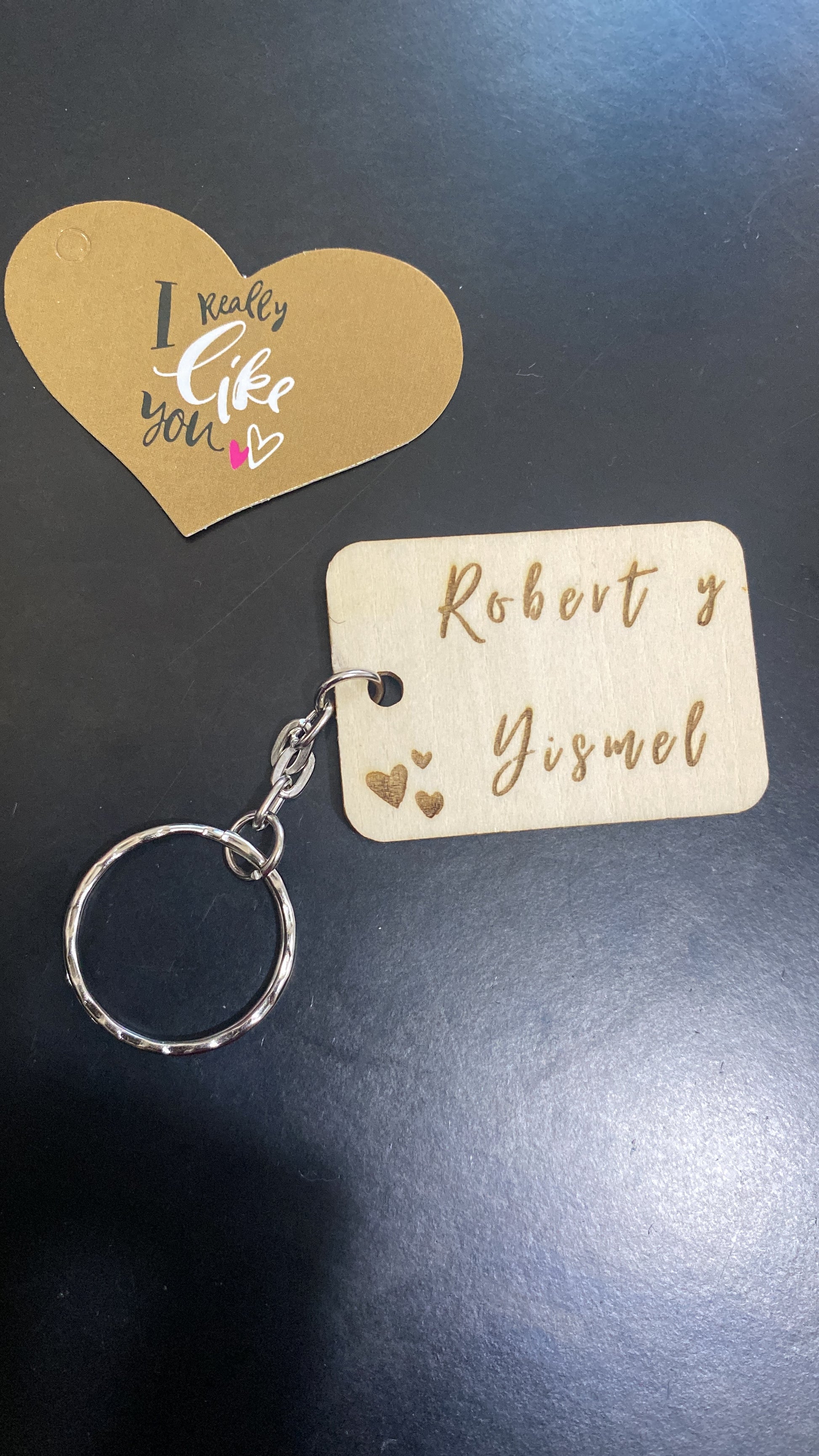 Nuestro llavero se presenta en madera grabada a láser de medida 45x35mm , doble cara con anilla metálica incluida.