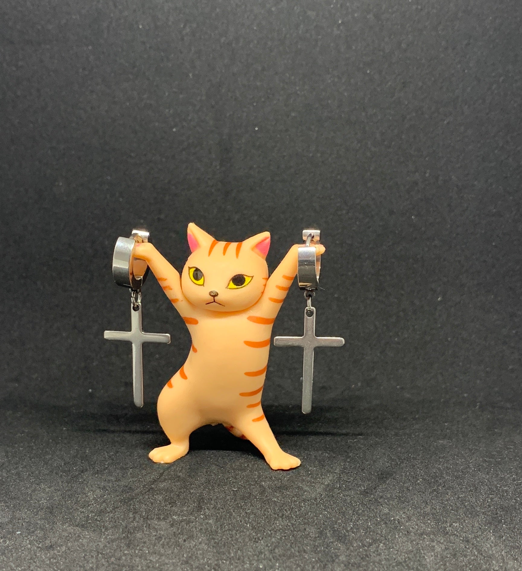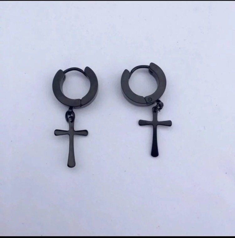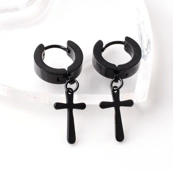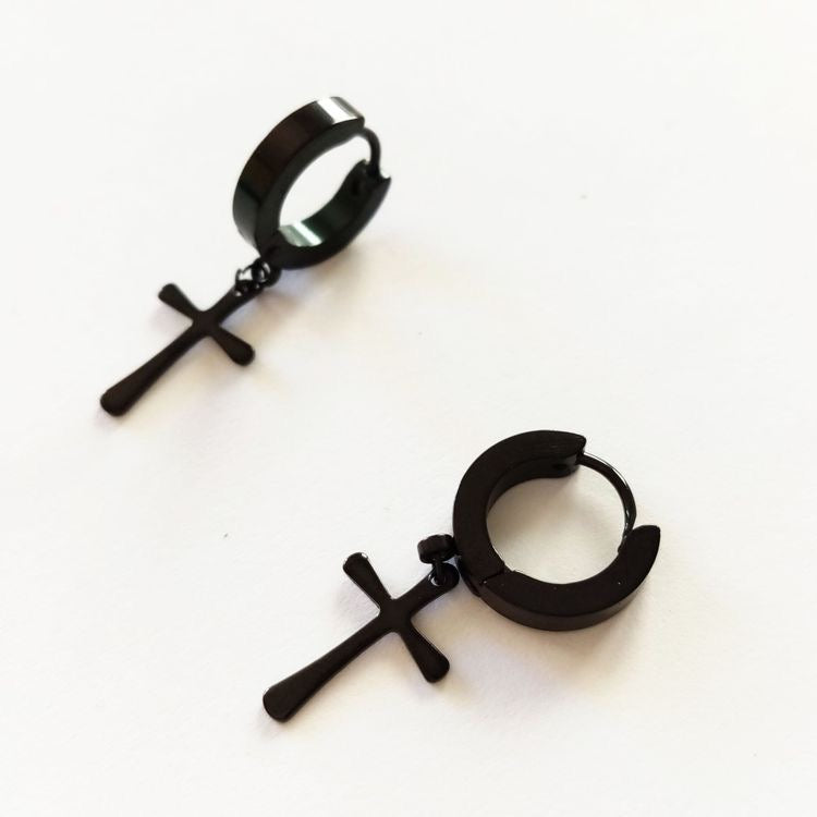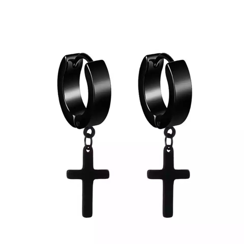 • Aretes de Cruz • Plateado • Unisex • Joyería Punky • Acero inoxidable •